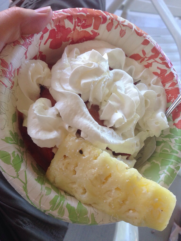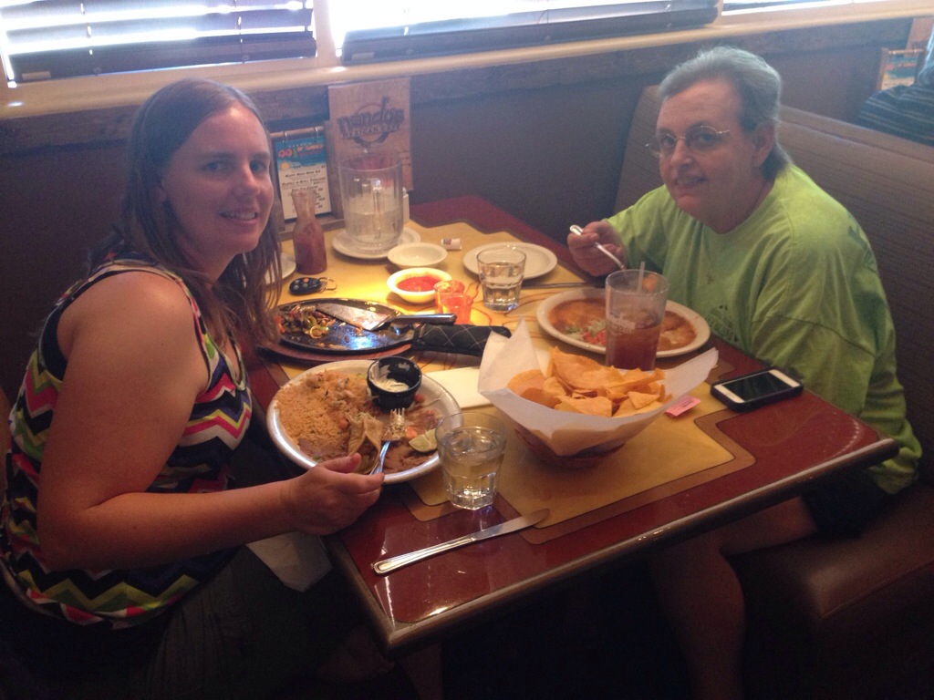 Sliced strawberries and pineapple with whip cream on top (it has to have dairy to be a well balance meal right?). We stayed out on the front porch and enjoyed the warmth and slight breeze, as we talked for several hours about life and all that entails. About 11:30 we decided that Mexican food sounded really good, and so we got all put together and headed for lunch on the town.