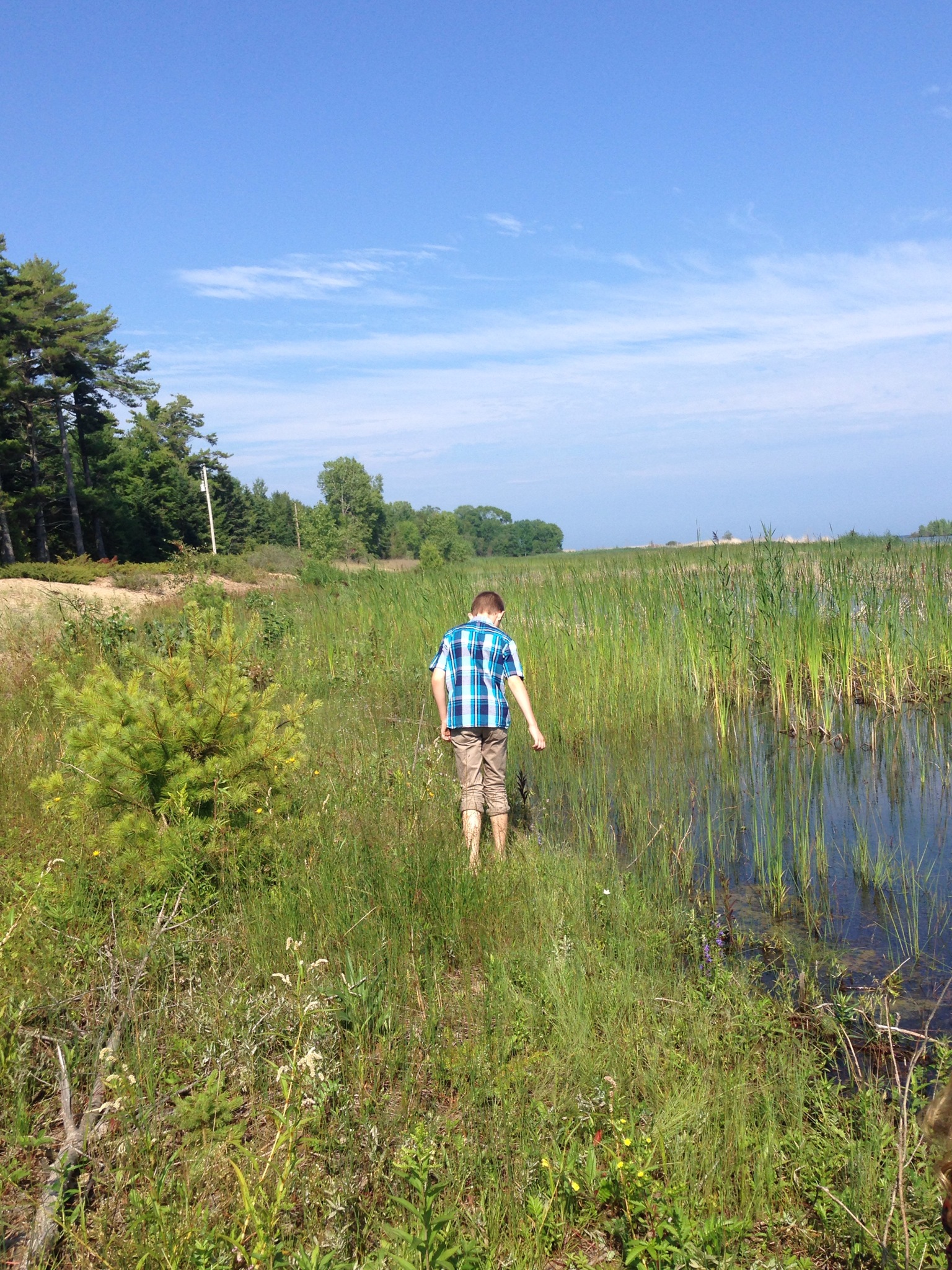 Point Beach state park was an hour drive northeast from Neenah. The drive was gorgeous, but instead of taking pictures I just soaked it in as we drove past. Cute little towns, small farms and dairies, crops and old barns, lots of them reminded me of places I’ve been in Oregon and Idaho. We weren’t sure if the hike we had selected would have views of Lake Michigan or not, so we were pleasantly surprised when we could see the lake from where we parked the car. We had to check out the beach before we headed on out on our hike.
