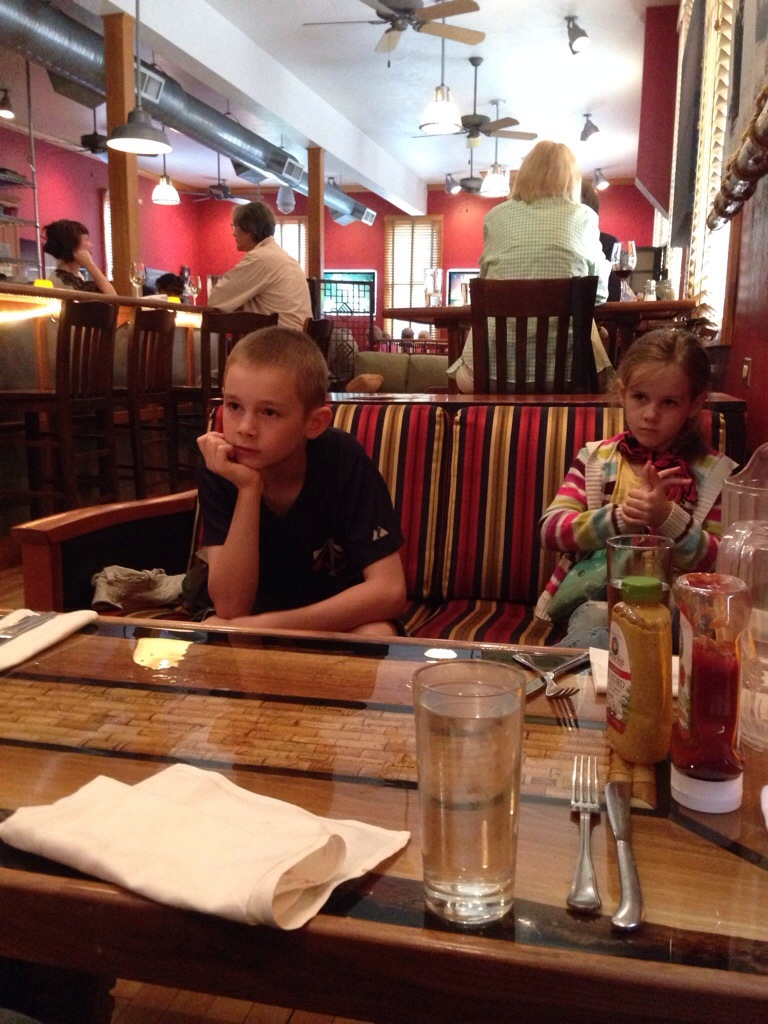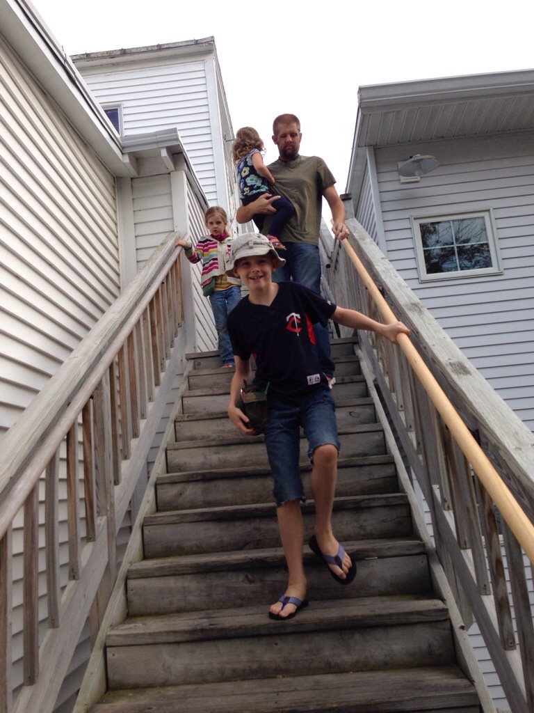 Chad got a handful of lake water and splashed us. It was just a turnaround not really a good place for the kids to get out. We did all get out at Sister Bay city park. The kids had a ball playing on the play ground and in the sand. Eve decided to go swimming which made me quite glad I had grabbed some extra clothes on the way out the door for her.