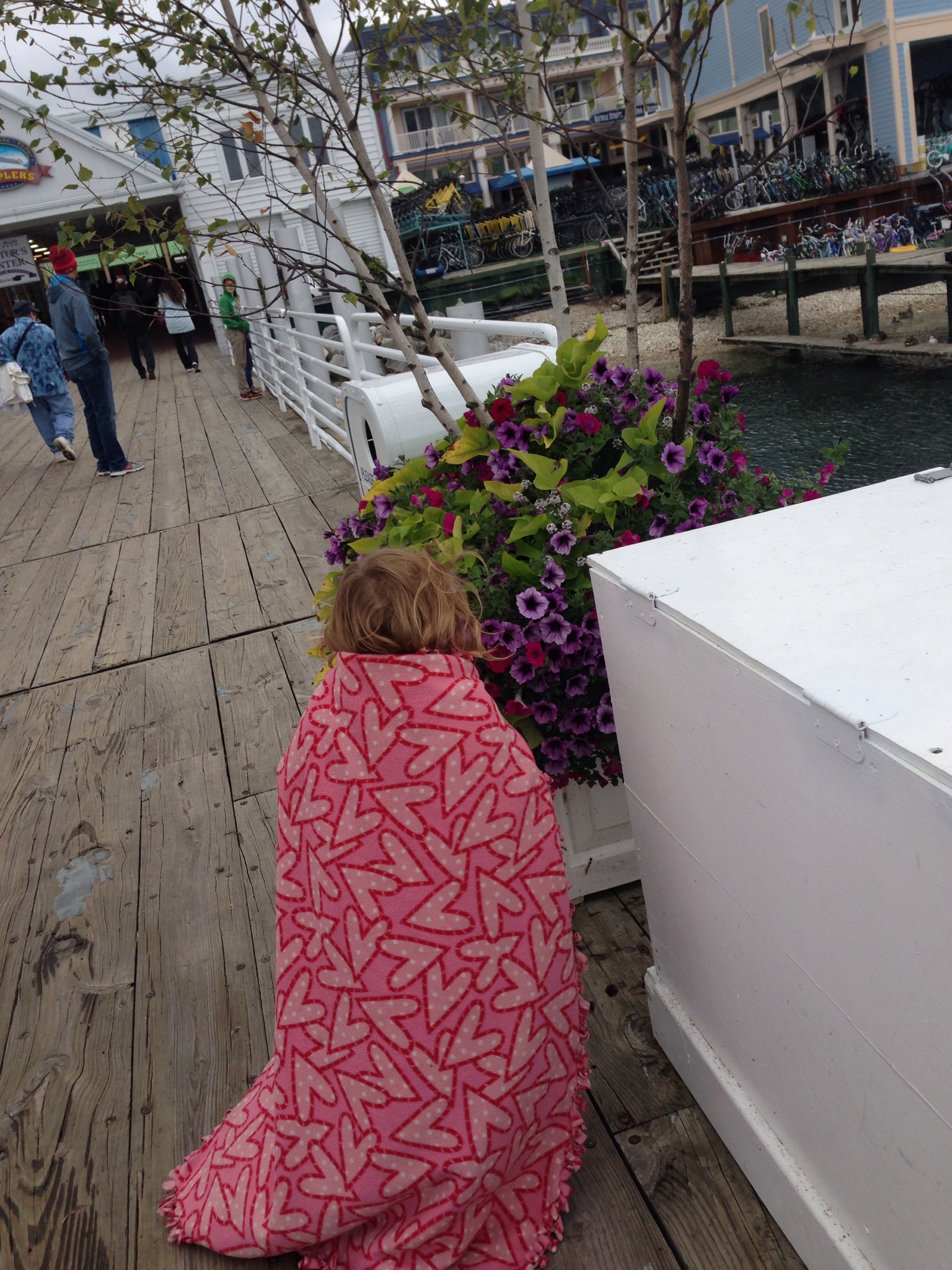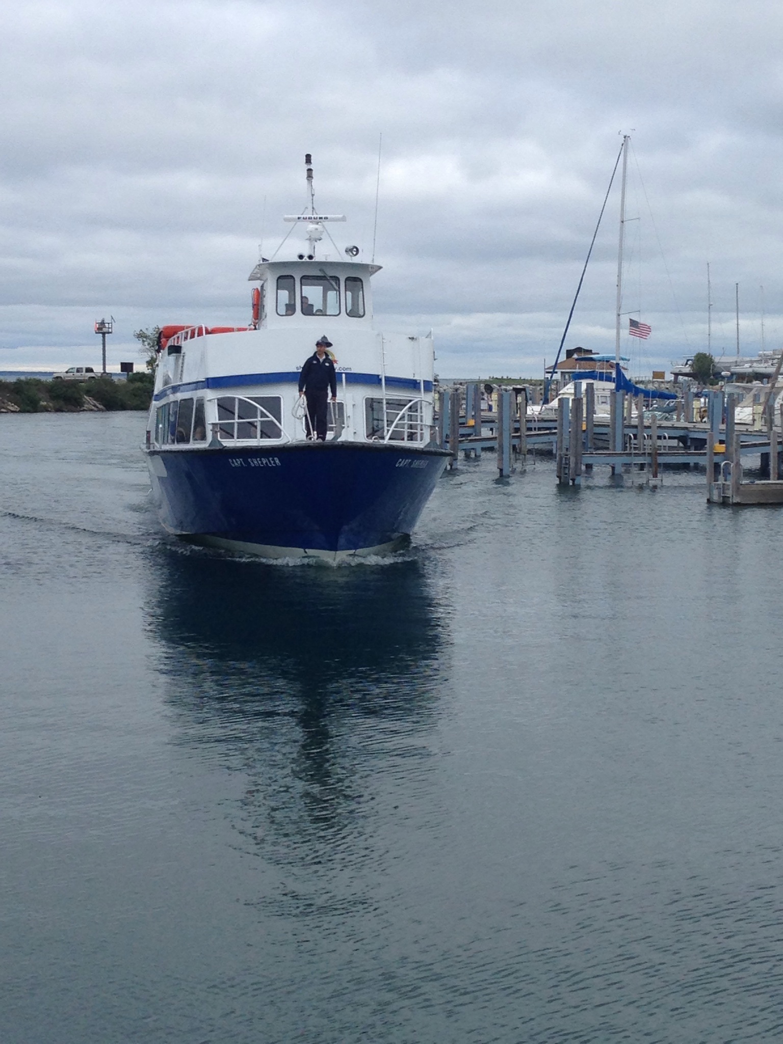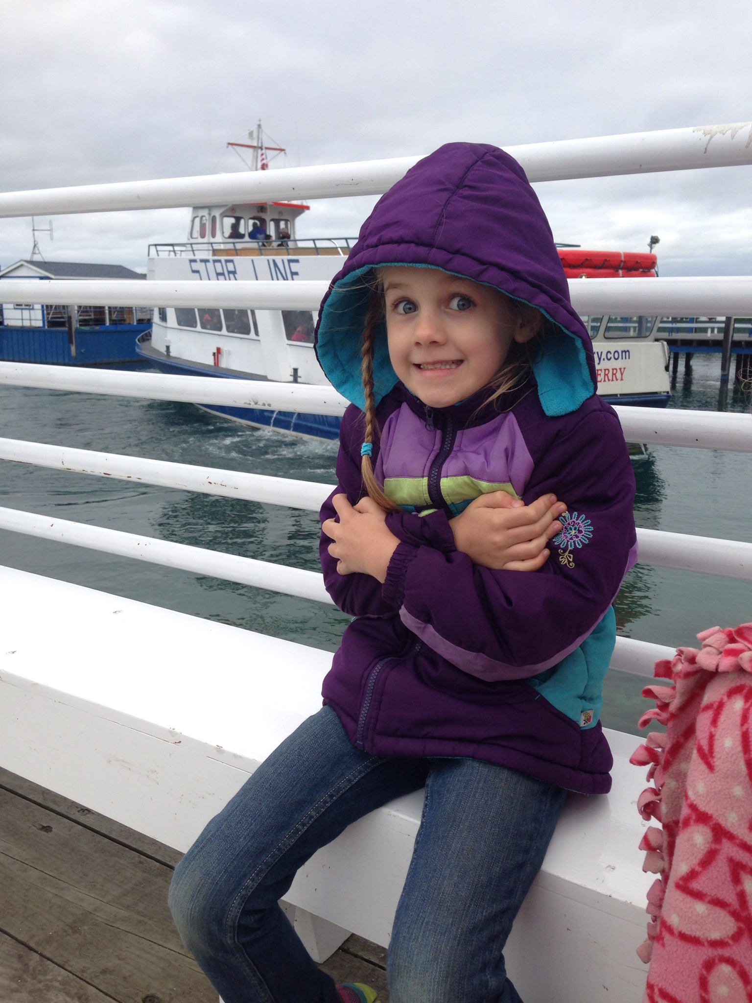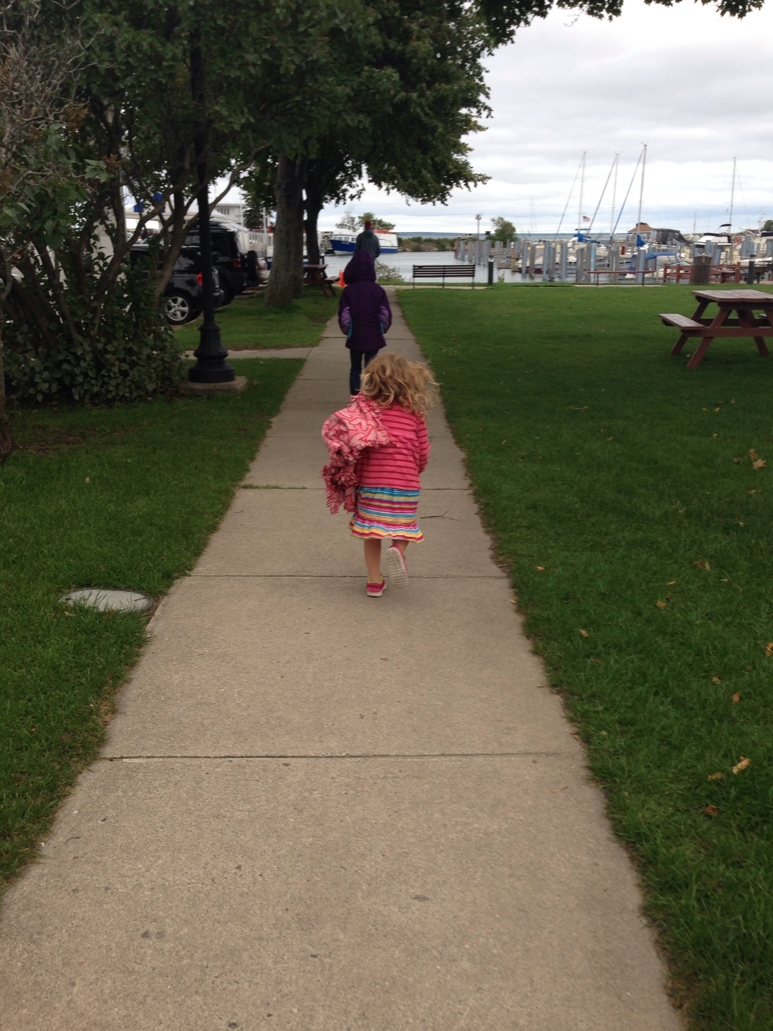 Mackinaw City is home to Historic Mill Creek Discovery Park and Colonial Michilackinac (set up like an old fort and who identifies it’s self with the motto “My, how times haven’t changed.” As well as a number of unique attractive lighthouses. We don’t exactly have the time or money to stop at all the historically significant locations and seeing all of these sights it makes me want to find a UP or Northern Michigan assignment sometime. We only could pick one for the day so we chose Mackinac Island. It was afternoon when we got to Mackinaw City leaving us less time on the island than we had planned. We purchased the ferry tickets not remembering we had moved into another time zone and we had even less time than we had thought, but honestly us Oregonians were freezing the weather had all the suddenly dropped from the seventies to the forties over night. The day time temperature was hovering at 48 degrees with a breeze that felt like it was coming strait off of a glacier so we weren’t dressed to walk around in it too long anyway.