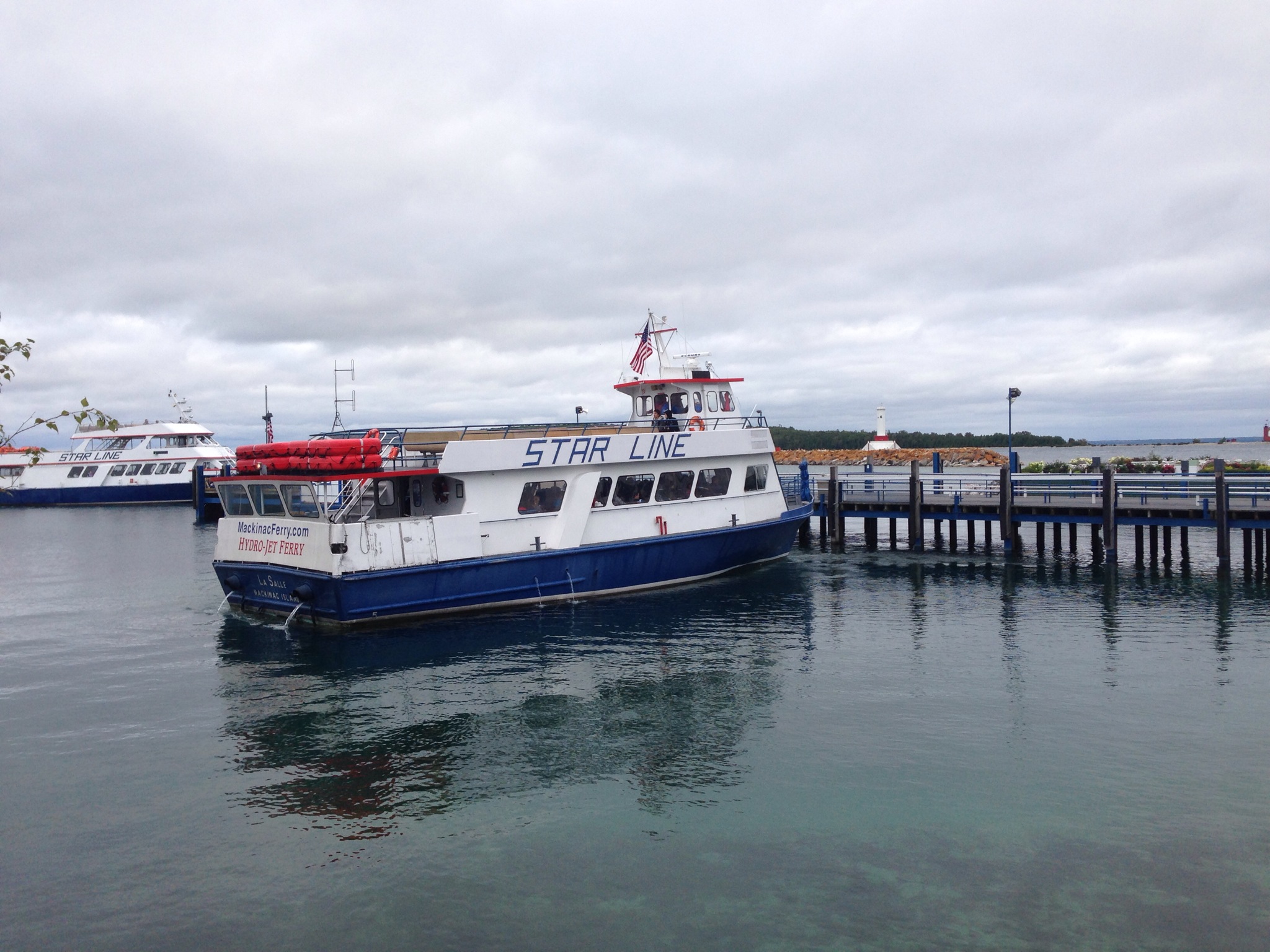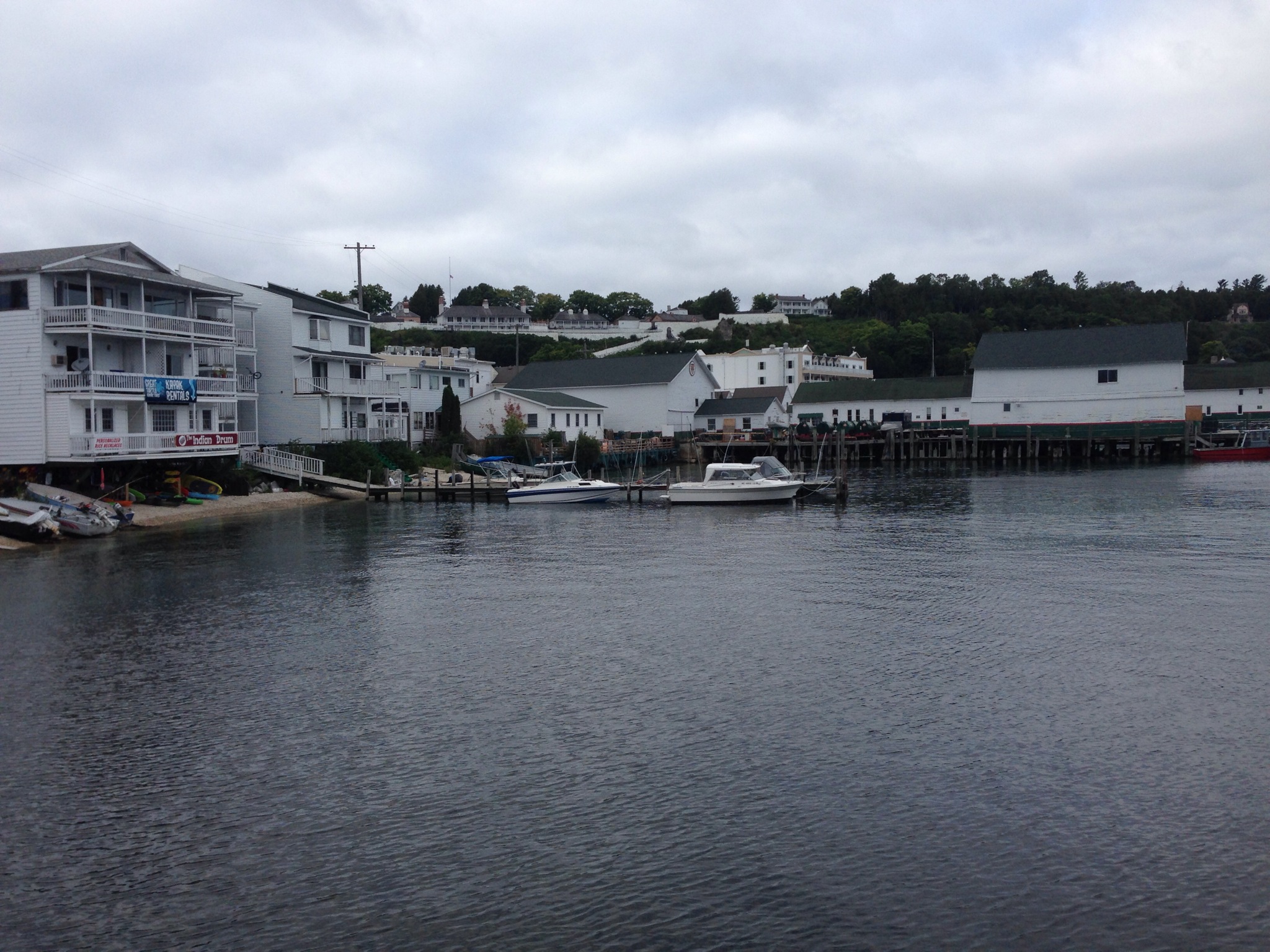 Mackinac Island is located in the Michigan straits (the water ways that connect Lake Superior, Lake Michigan, and Lake Huron. It technically is in Lake Huron albeit the very tip. It was our first view of this lake. We came across the Mackinaw bridge that connects the UP to Mackinaw City on the mainland.