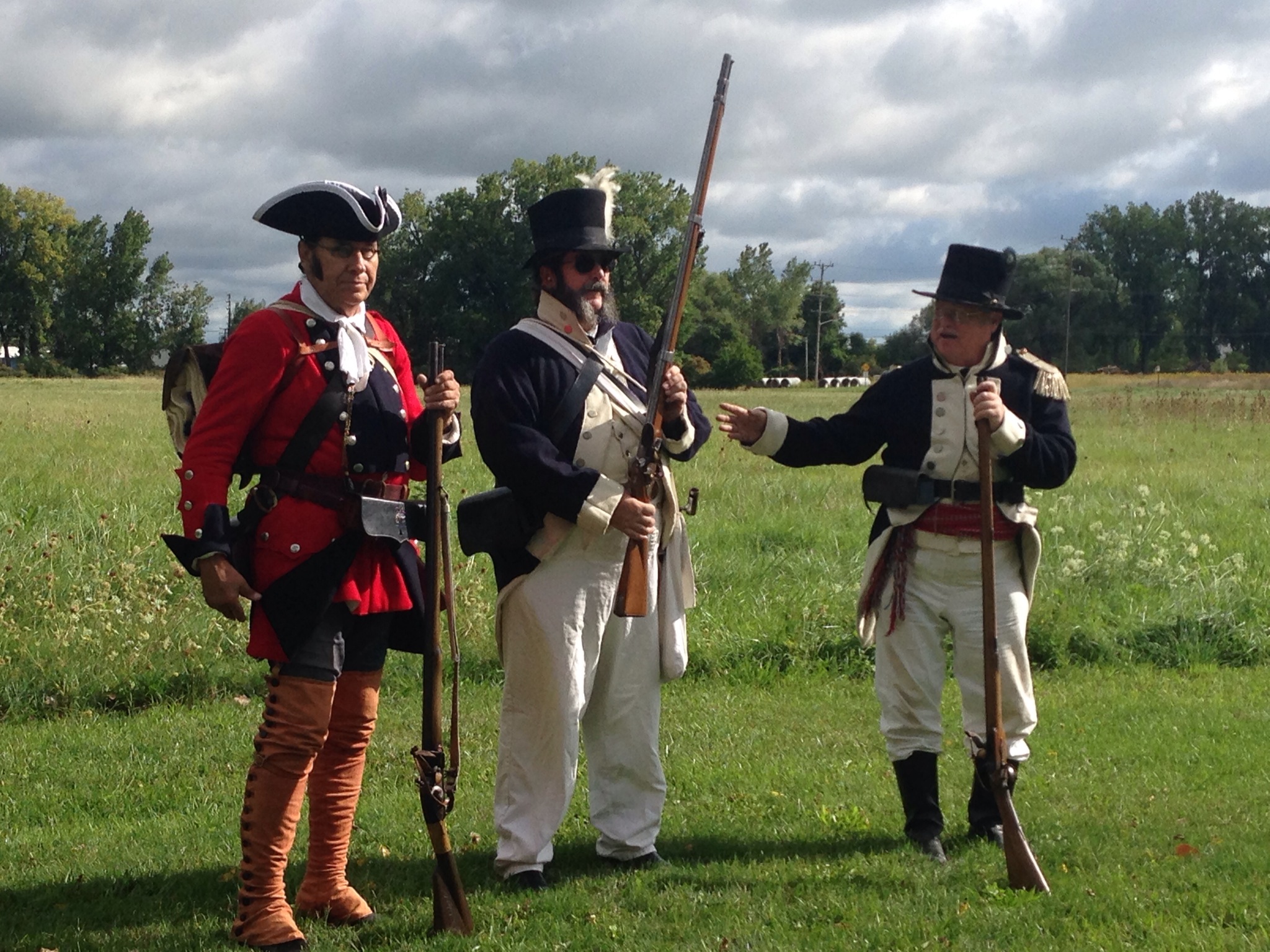 The gentleman in the red and blue coat is from the French and Indian war the other two are from the Revolutionary war.