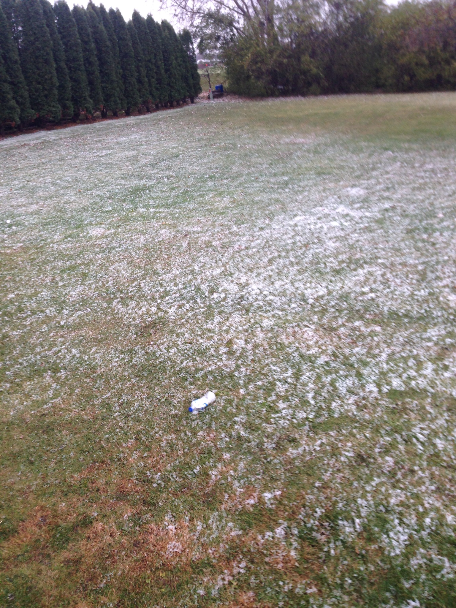 I woke up to snow yesterday morning 11/9/14 I wish I knew the depth exactly but if I had to guess I would say a half inch. Enough to be overwhelming to the windshield wipers and I had to scrape the windows. But then again I kind of liked that part. It was slightly wet and perfect for packing. It would have made for a good snowball fight if the kids had been awake. The roads were clear except for the bridge which was slushy, so I arrived safely to work where I promptly forgot about the snow until I came out again 13 hours later. Of course all traces of the beautiful white fluffy stuff was gone. The kids built a snowman so I hear. There were no pictures, but it was clear from our dinner discussion that they enjoyed their day of snow.