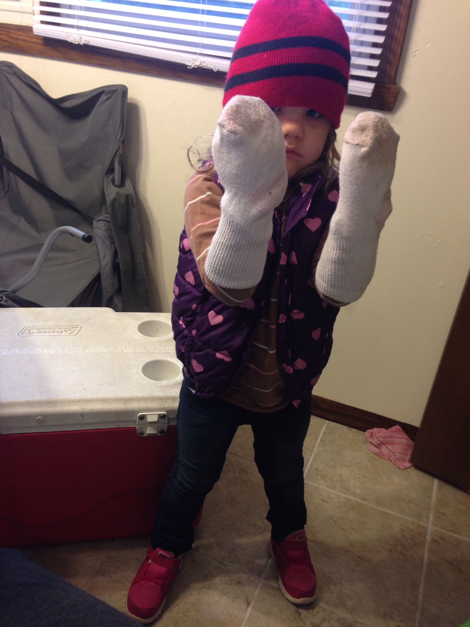Eve finally got dressed and ready to head out as the big kids were coming in. So I filled a bottle with hot water to help them keep their hands warm and they all headed back out.