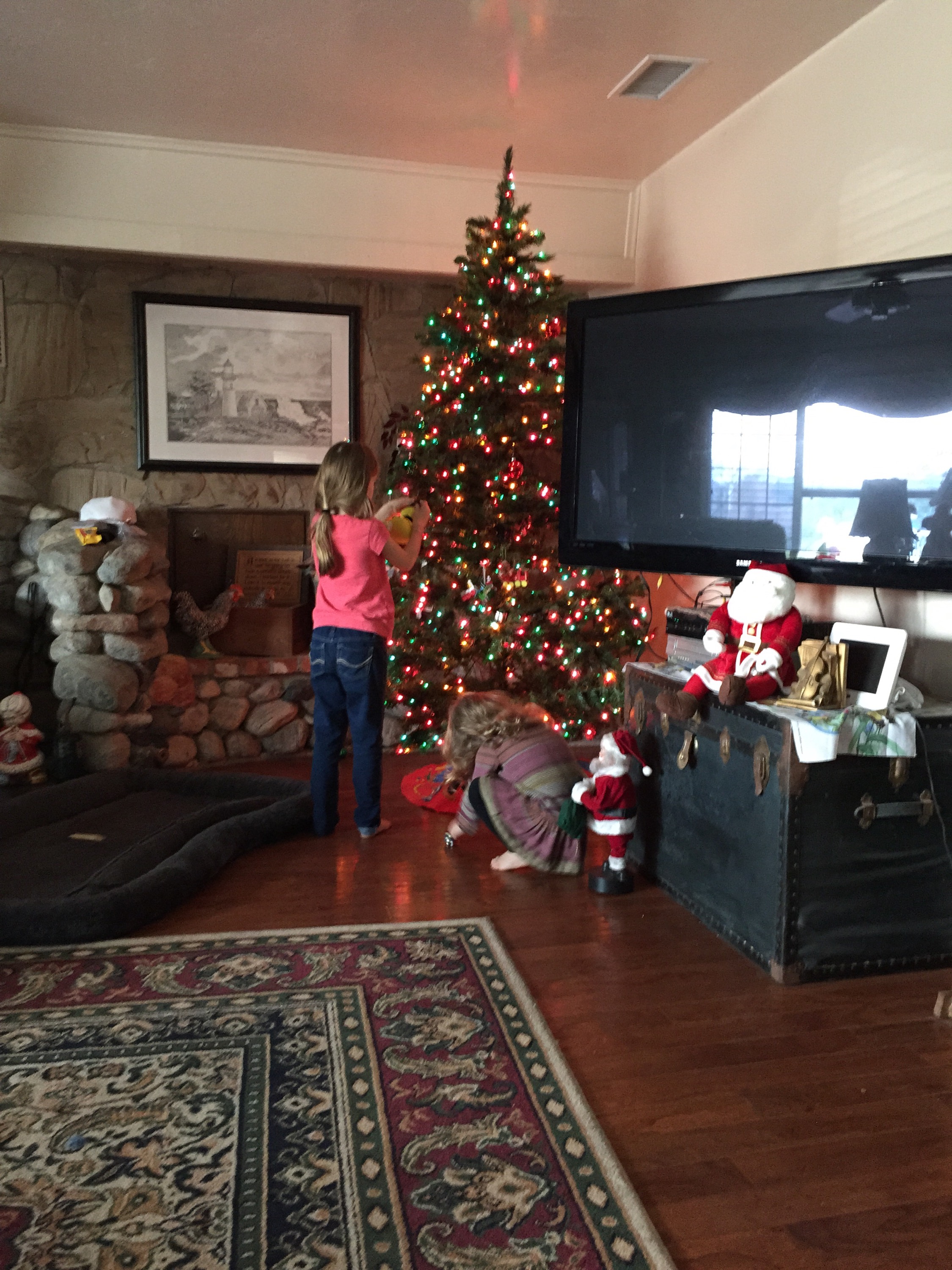 Yesterday 12/20 the kids decorated Grandma and Grandpa’s Christmas tree pretty much all by themselves.