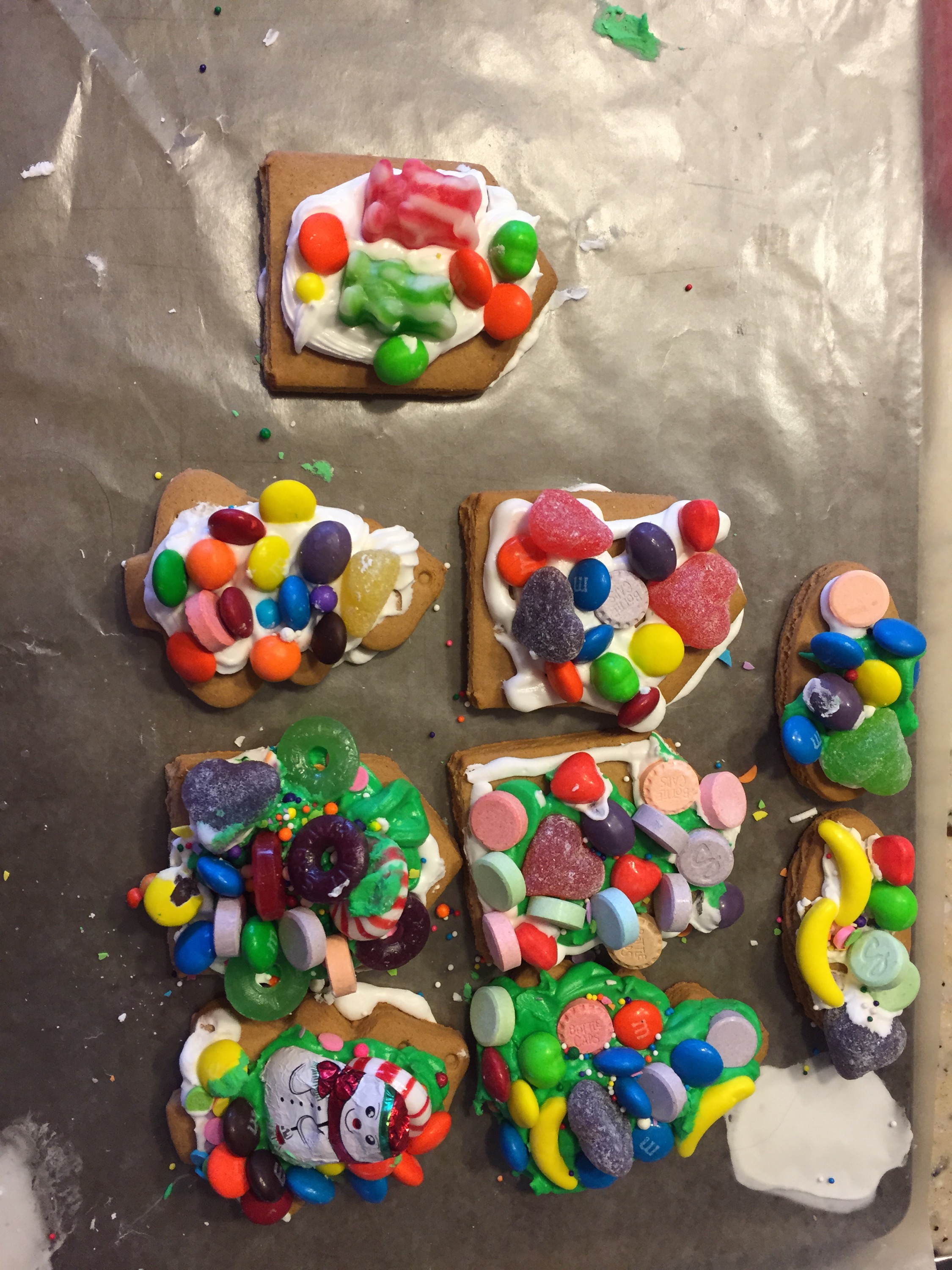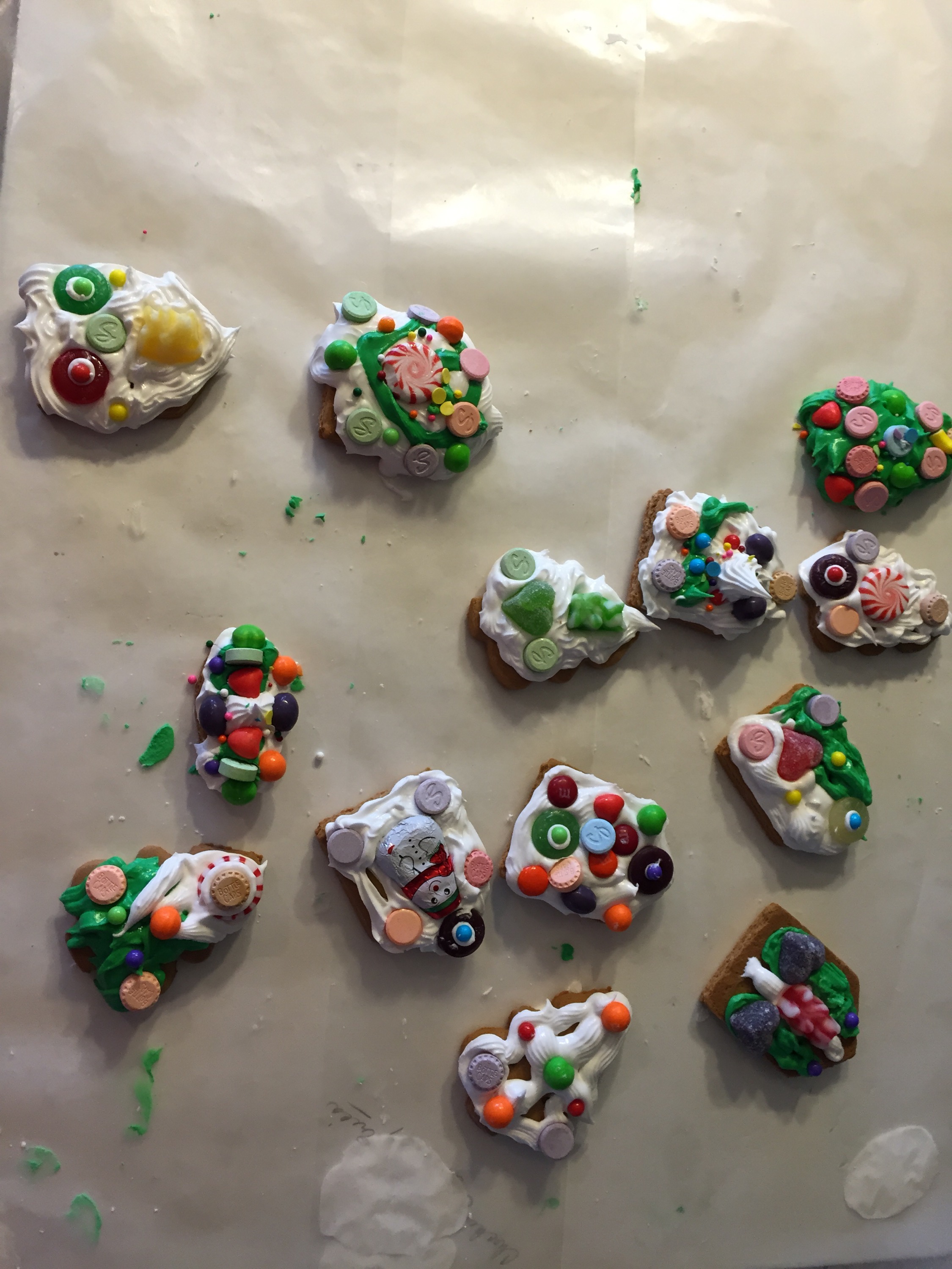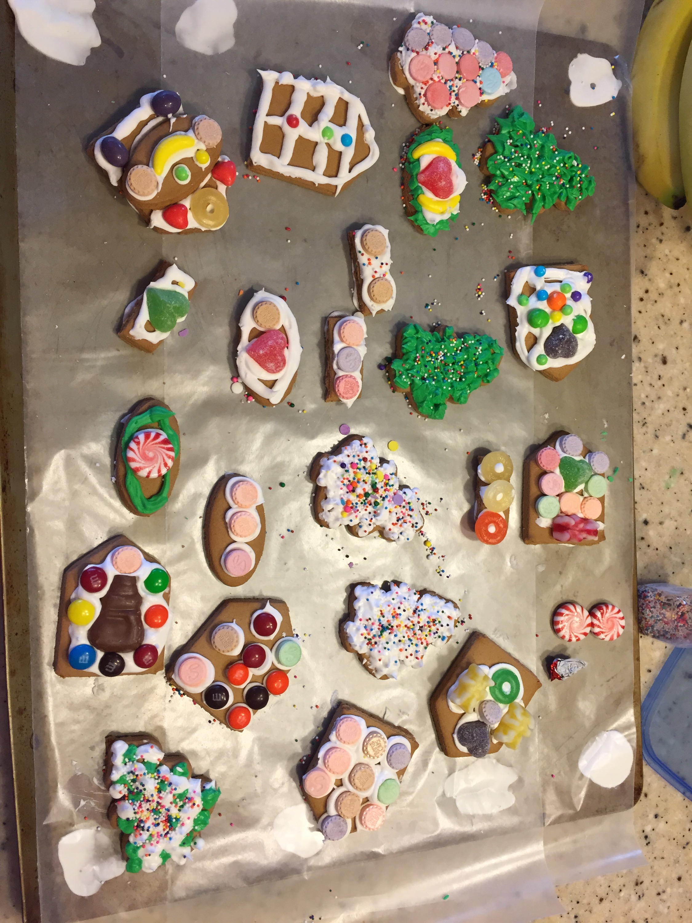 I snuck in a nap recovering a little still from Legoland and gearing up for a work all nighter, so the the kids decorated a few cookies with Grandma to use up the candy she had left from making gingerbread houses.