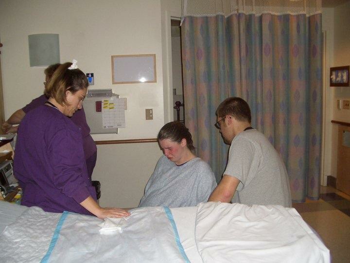 It was a Thursday night 1/27/2005. I had already called the midwife on call once. A thin mucous discharge that starts or gets worse as the case may be near delivery made me wonder if I wasn’t leaking a little bit of fluid. I didn’t really think it was, but it made all the worriers in the family happy. Calling it a night I took a hot shower to ward off the soreness you feel at 9 months pregnant. I wasn’t due for another week and I knew enough to not expect to early with my first baby most likely I would be late. 10:30-11:00pm I woke up with a start and ran to the bathroom to empty my bladder, then back to bed. There it was again, no worries I will just lay here and rest. Oop, maybe not. It might feel better to be up moving around I thought. I know, a shower had always worked before. I’ll try that again. Before I knew it I was singing Amazing Grace and The Lord’s Prayer in the shower as I swayed through more contractions. Finally convinced that we we’re dealing with the real thing I stepped out of the shower and called for my still sleeping husband to wake up. It was time! Bracing myself through each contraction in the car, I remember going over the railroad tracks into Silverton as being the worse, the whole time calmly telling Chad to drive safely and slow down this was going to take hours.