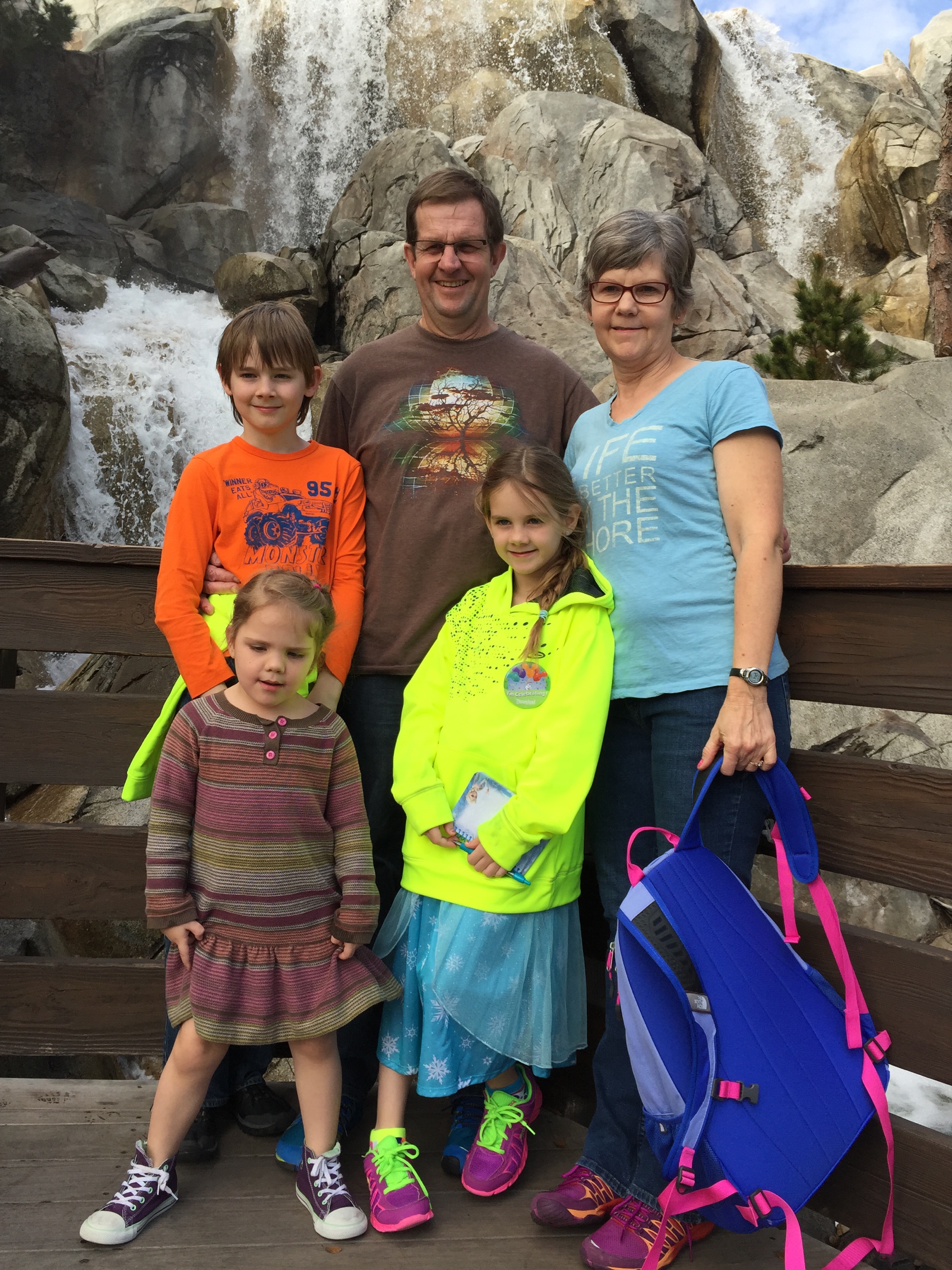 It was a fun fabulous day, I’m sure we would have enjoyed being all together no matter where we were but Disney does such a good job at all the details that make you truly feel like you are in another land, never never land maybe. When I was young and growing up I prayed that I would not ever marry someone that I knew at that time. I loved Cambridge and the childhood it gave me, I wondered about where I would be, what kind of family I would marry into. I could have never imagined how blessed I would be. God answered my prayers in a husband who valued my craziness one that I did not know in my youth. I listen quietly when other women I’m around voice their in-law struggles and know that I too have been blessed in that area. In-laws that not only warmly welcome me but count me as their own, boundaries have never been an issue and I know that has been a conscious decision on their part. Now here we are saying bye again to a piece of our heart. In a way it was good that it was not all drawn out. Chuck and Donna we feel your absence daily in our hearts thank you for the fun family memories made this week in Disneyland. And know that we recognize the gift we have been given in having you guys as parents, grandparents, in-laws and mentors. We love you!