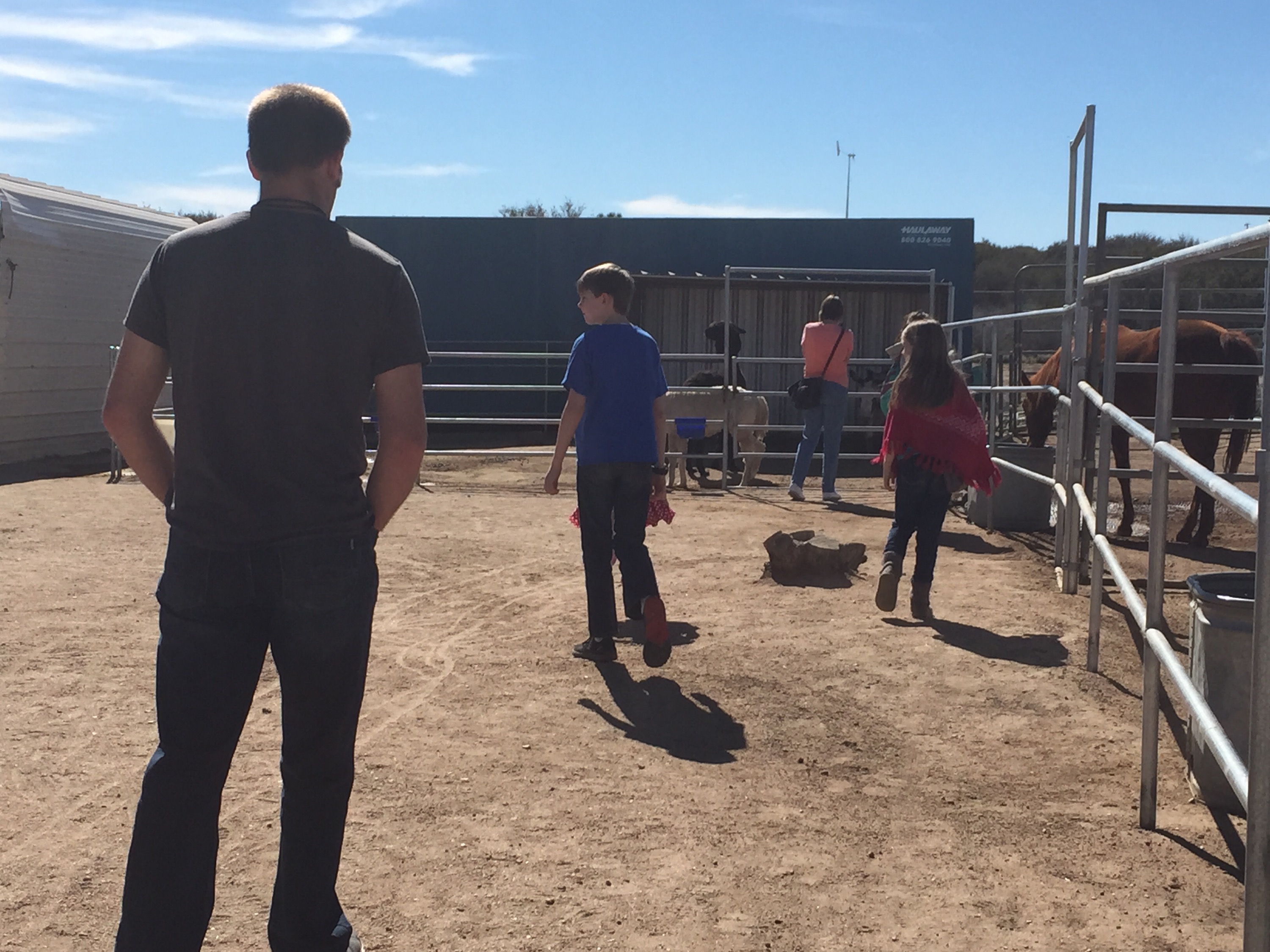 From the police station we made our way to Moreno Valley which was incredibly green and Beautiful. The sun coming in the window was hot even with the window down. Tank top and shorts would have been more appropriate clothes for the weather but my long sleeves and jeans would have to do. In Moreno Valley we visited a new friend we met at this assignment named Hiedi. She has four little dogs and a kitty that the kids took turns petting and kissing. The poor cat wasn’t sure what to do with all these little kids and so she/he tried her/his best to hide. We got back into town (San Bernardino) in time to have dinner with Uncle Richard before heading back up the hill. The kids have been talking about how much they liked learning what a police officer does and the police station. Hannah thinks she might consider it as a career some day. Caleb would be sold on it if he could drive the SWAT rig as his patrol car. Thank you Uncle Richard for the tour and fun educational day and thank you Hiedi for letting us come out and meet your doggies.