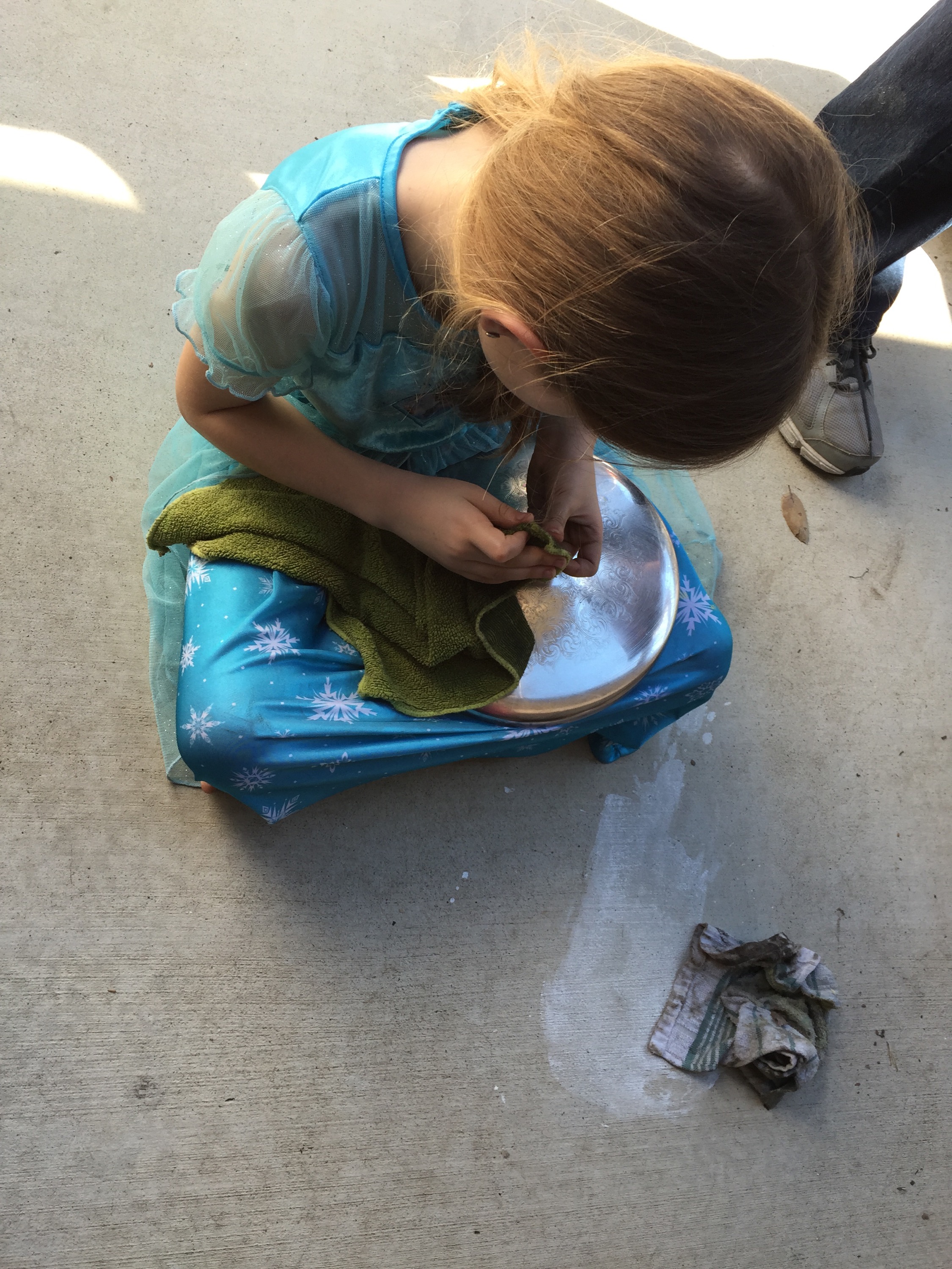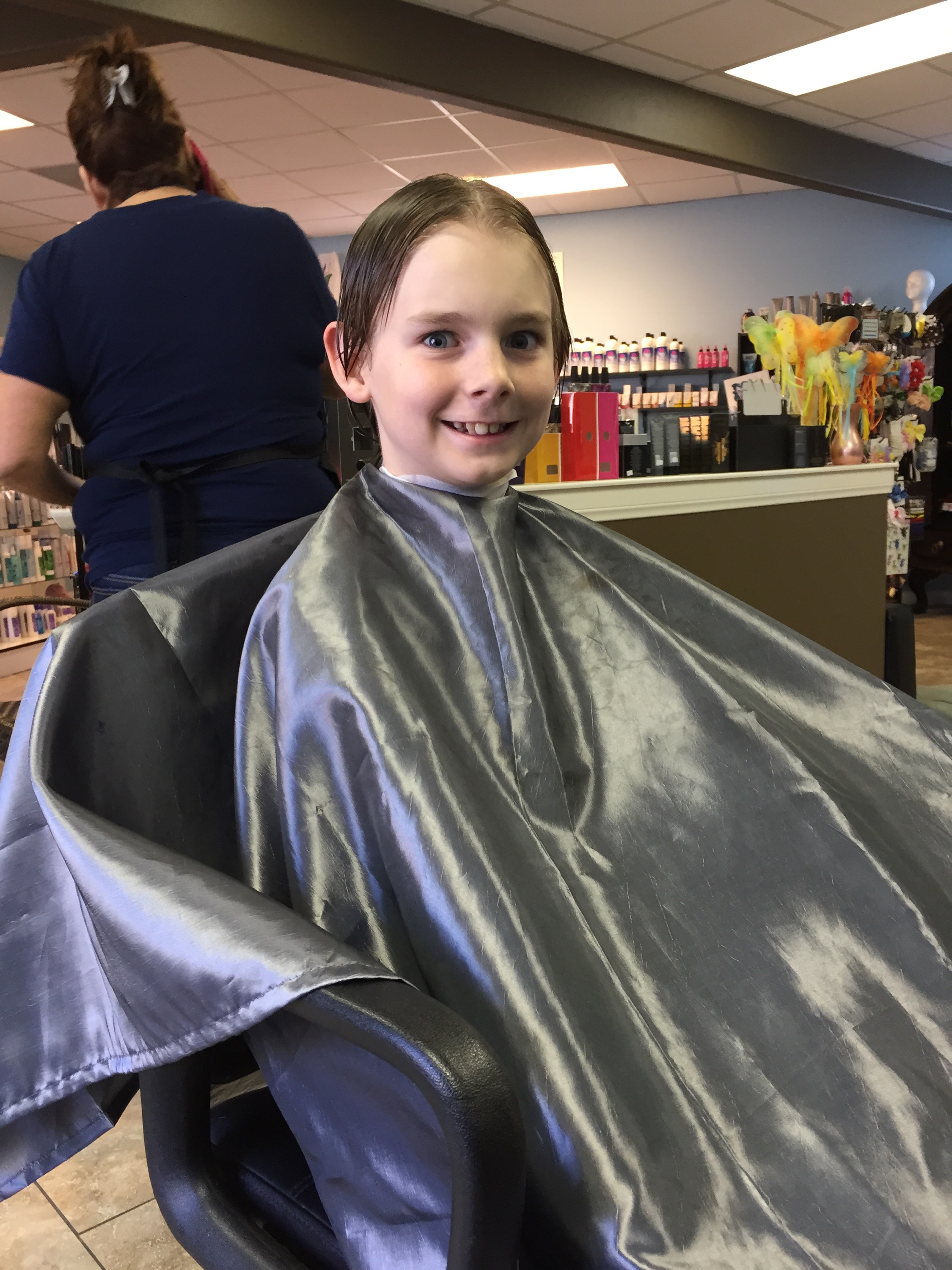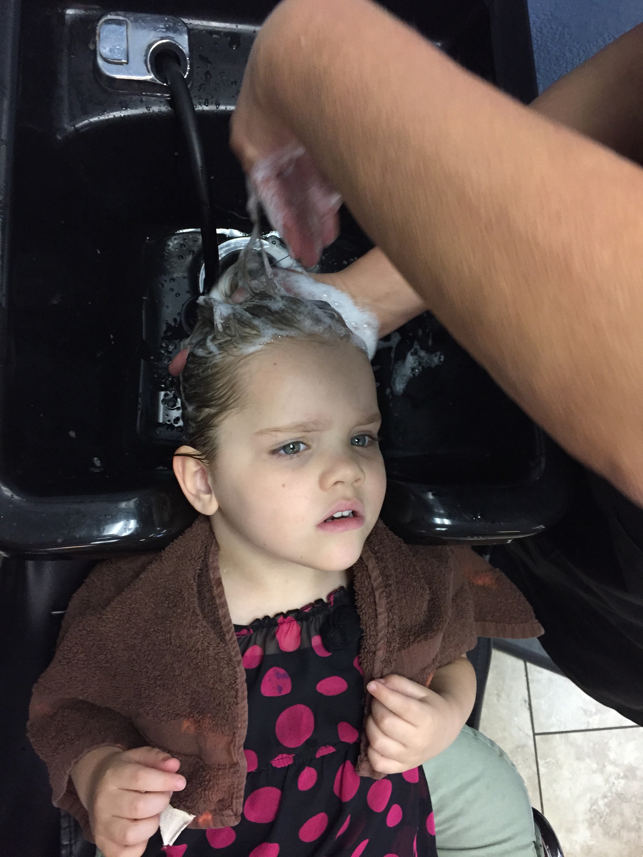 The kids worked polishing silver and eagerly did any other jobs they were assigned. Grandma had wanted to do something for the girls too like she had done for Caleb so we took them in to get their hair cut as well. Eve was first since Hannah was a little hesitant.