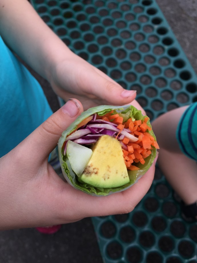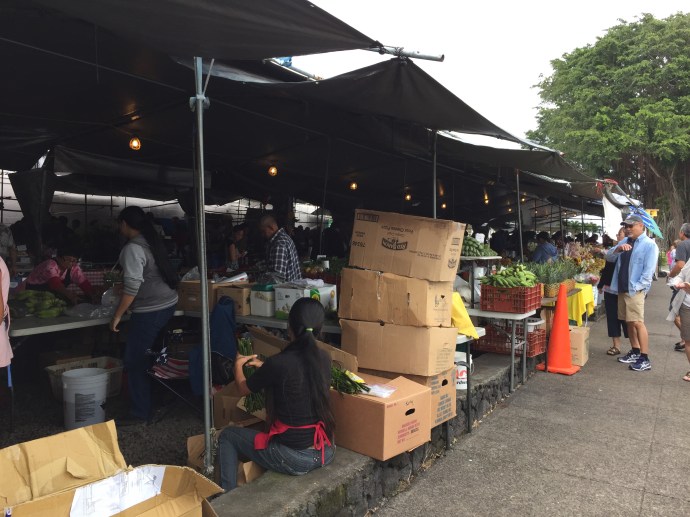 We had been told by the many sites we had searched that Hilo was the best place to buy produce, cheapest and freshest. It is open on Saturdays and Wednesdays. We still haven’t figured out the food situation so we decided we better check that out. Besides we had to go into Hilo to change cars. I felt awkward taking pictures at the market so I didn’t. Only a few when we were outside eating a little snack Caleb bought and shared with us.