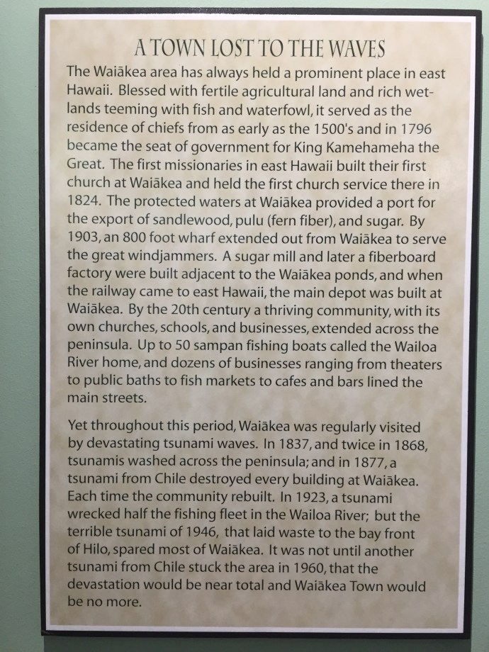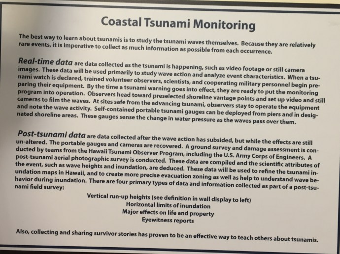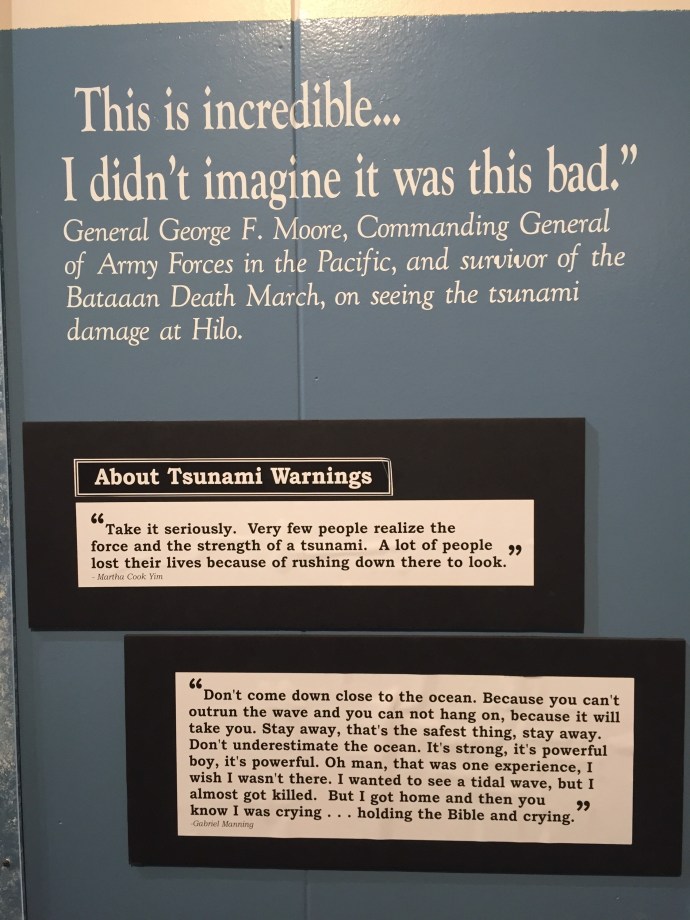 The main purpose of the tsunami museum is to raise awareness and to save lives by educating the public. It wasn’t quite what I expected but I still think it was good to know the evacuation plan and what to watch for in the ocean’s behavior that would indicate a warning sign.