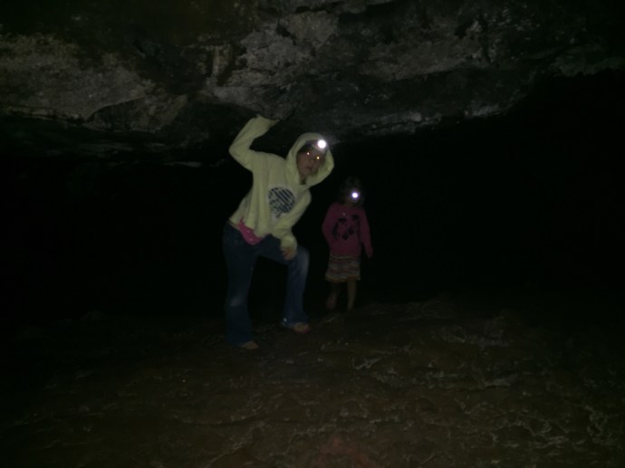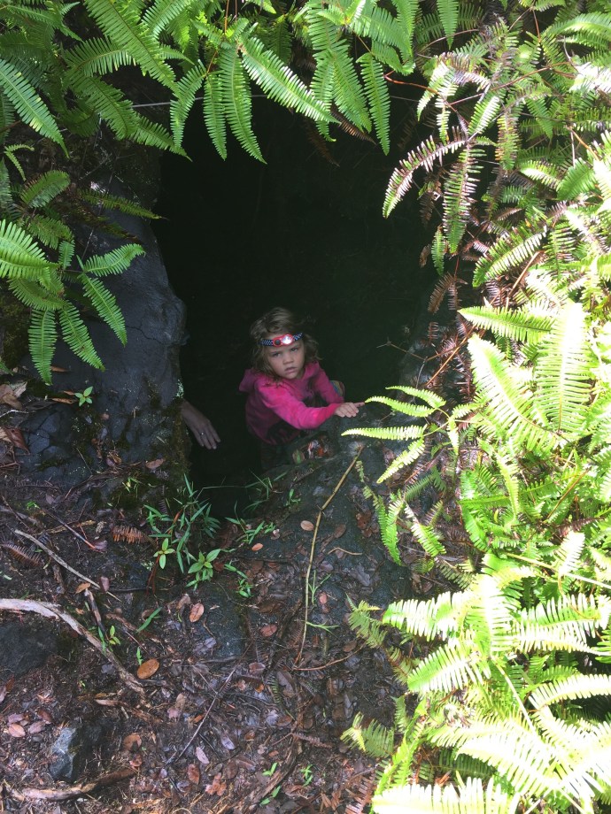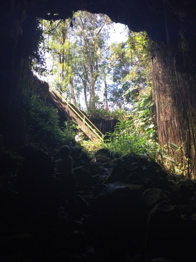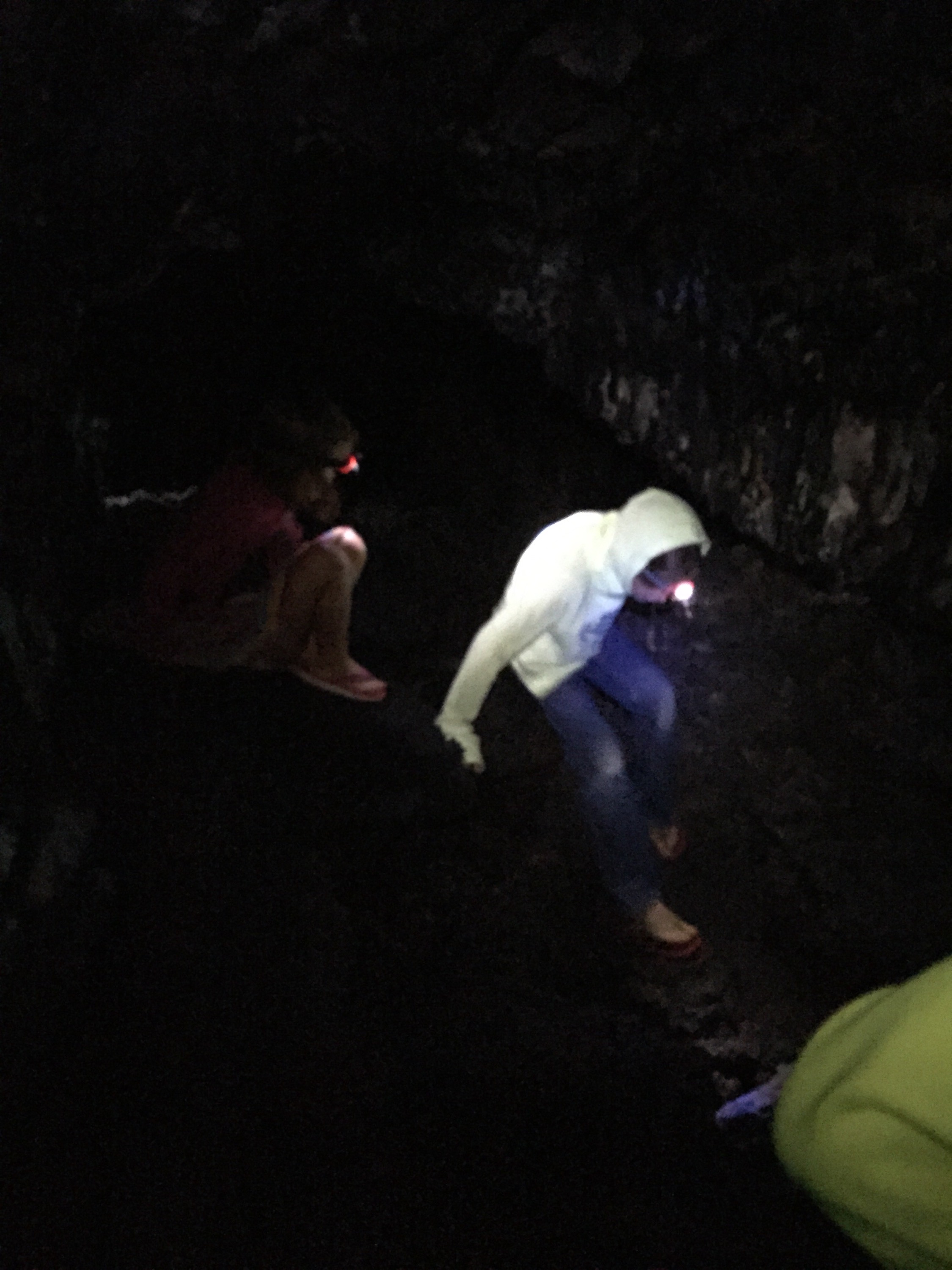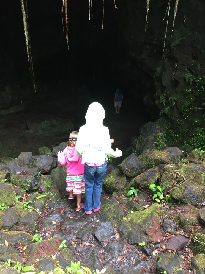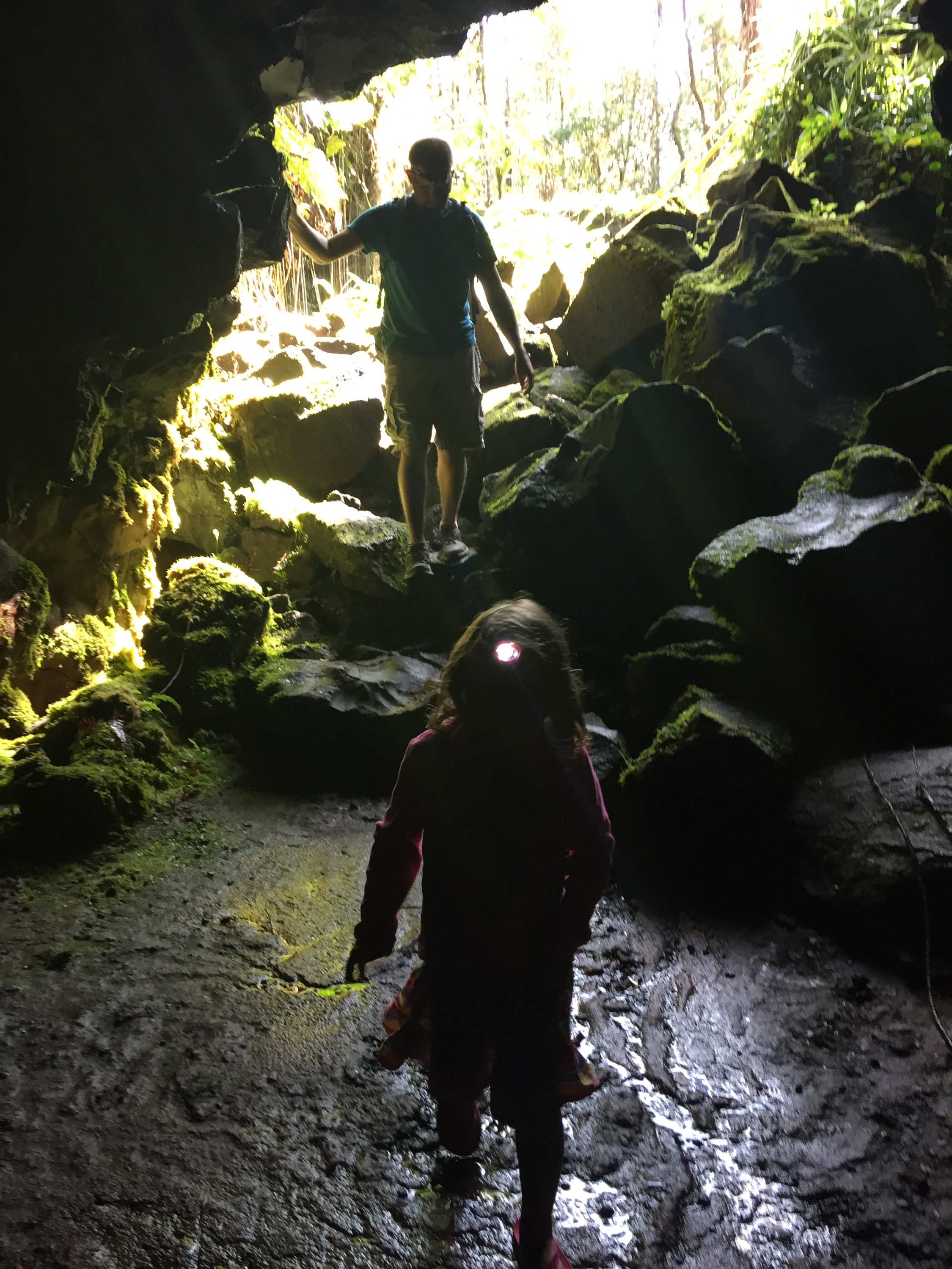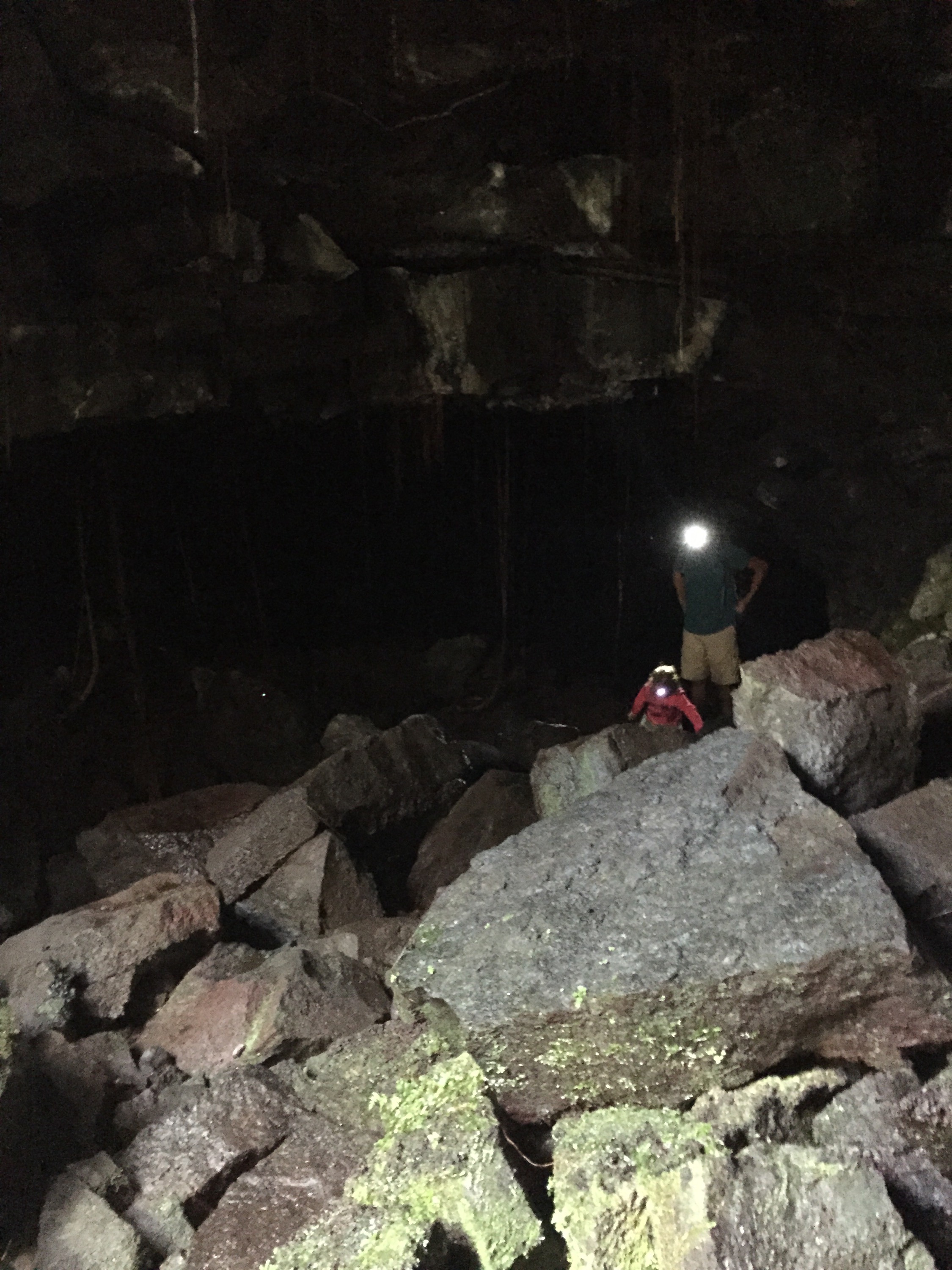 Finally we made it to Kaumana Caves!!! One of our favorite family memories is exploring Ape Caves with Aunt Stephanie, Cyrus, Aunt Suzanne, Uncle Jeremy, and Hadassah (Elijah in utero). We were eager to see some other lava tubes and use our headlamps. We had been told by several people it was a short walk even though the Internet research we had done told us that the Kaumana Lava Tube was 25 miles long, and was created in a 1881 eruption of Mauna Loa. We didn’t know how far we would actually be able to go. And now that we have done it I have no idea how far we went. We explored the section of the tube going down hill first and although the entrance was larger it was deceiving and we spent a good potion of our explorations in this tube quite hunched over. It was still very fun.