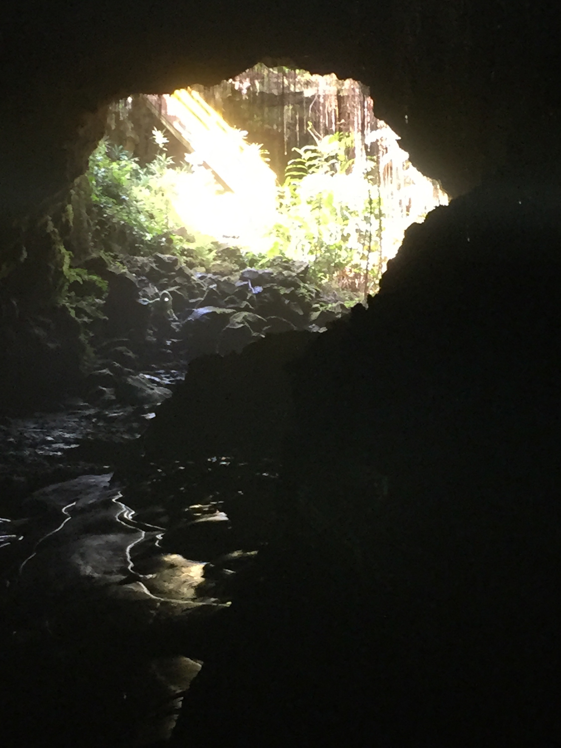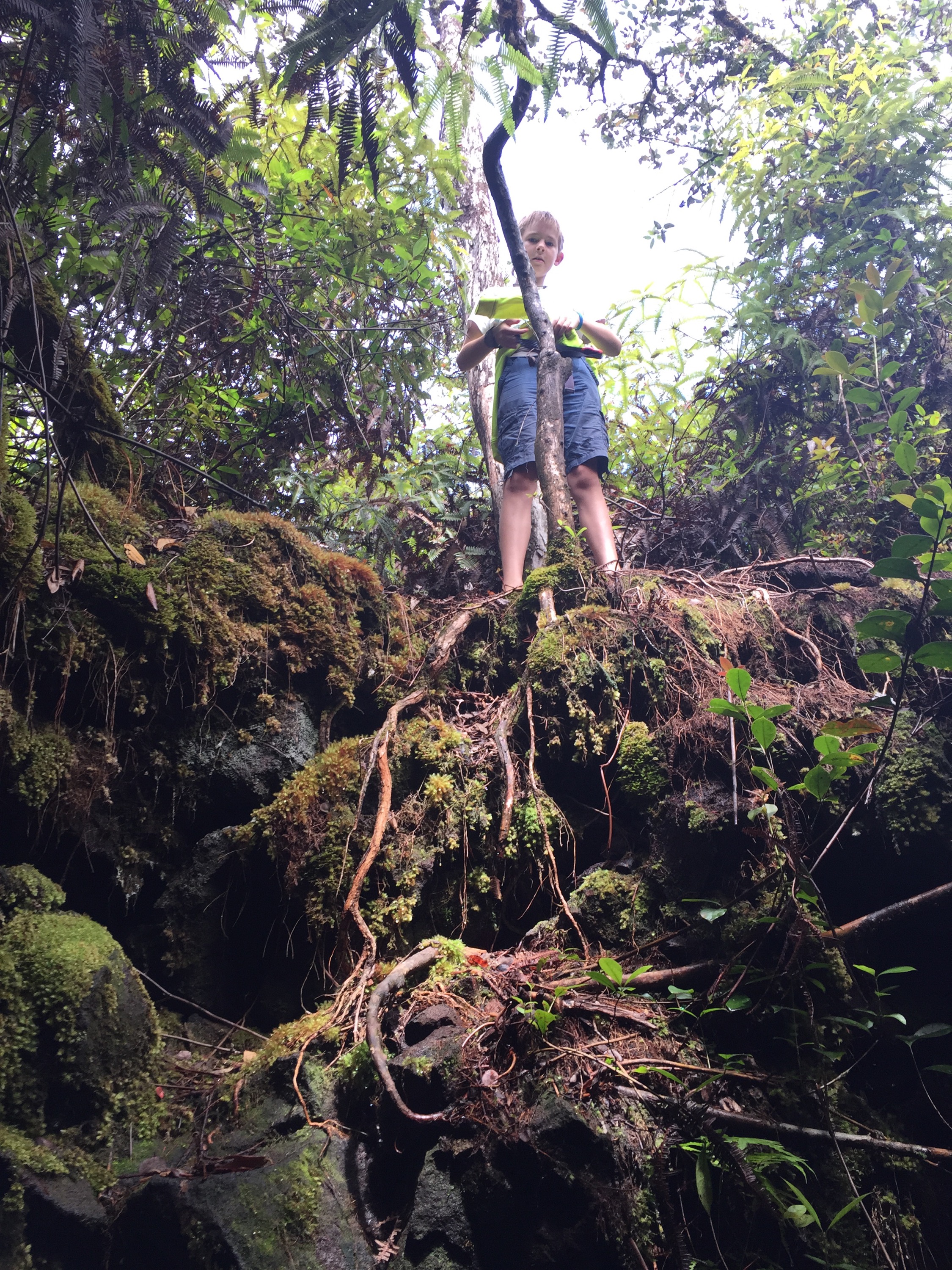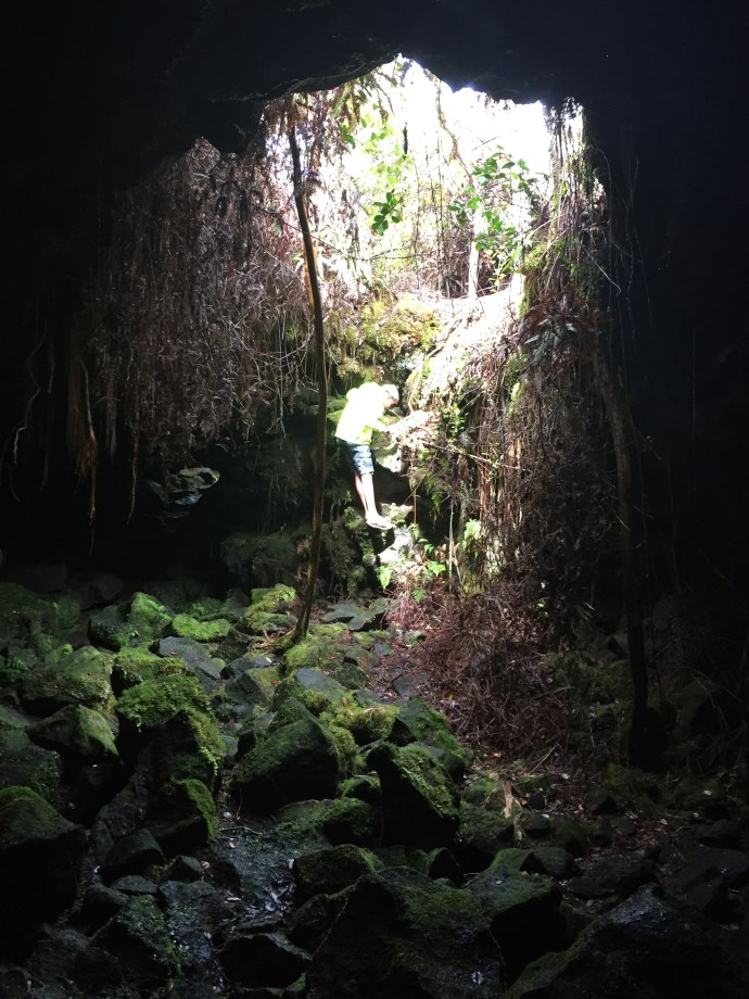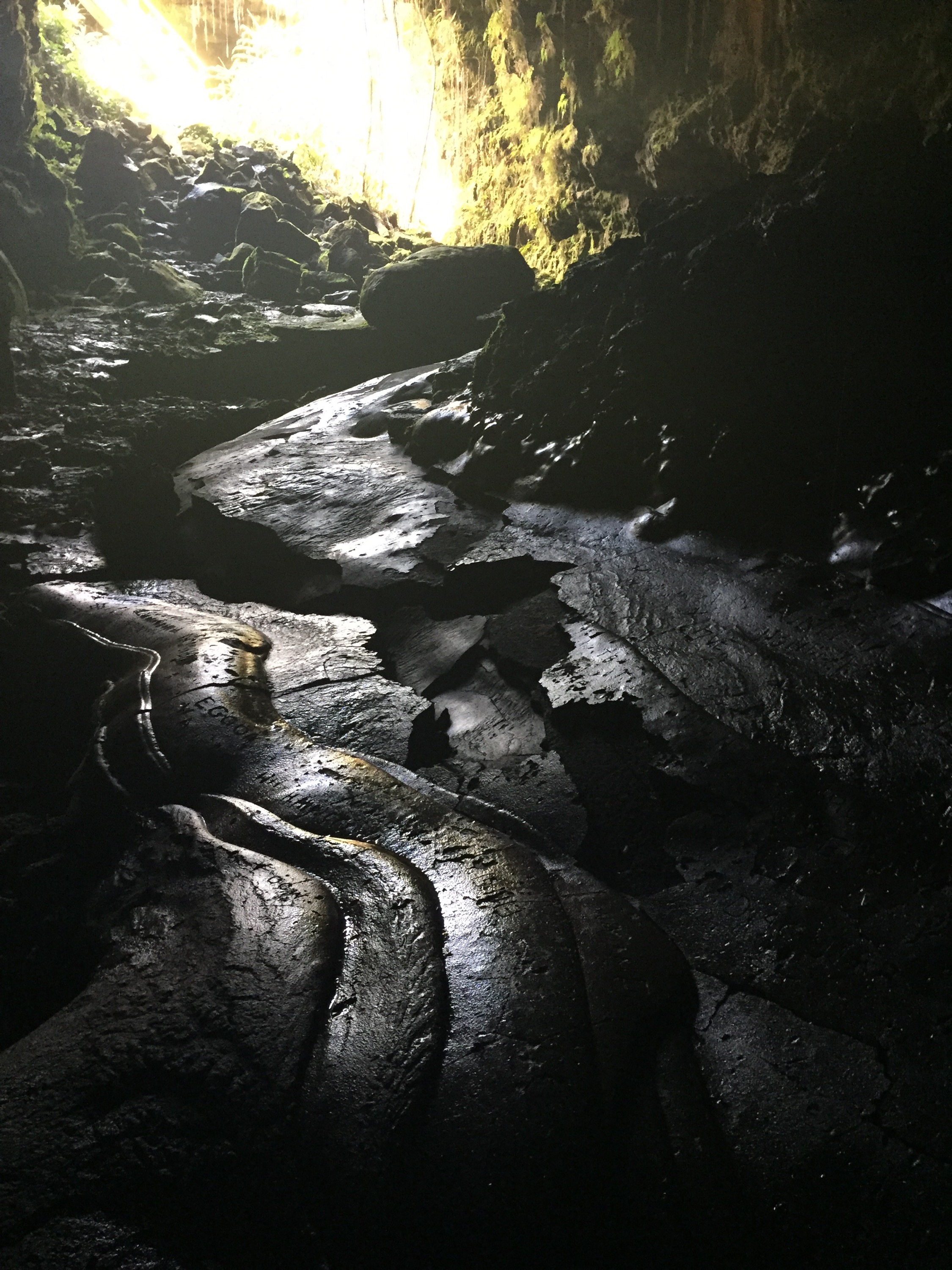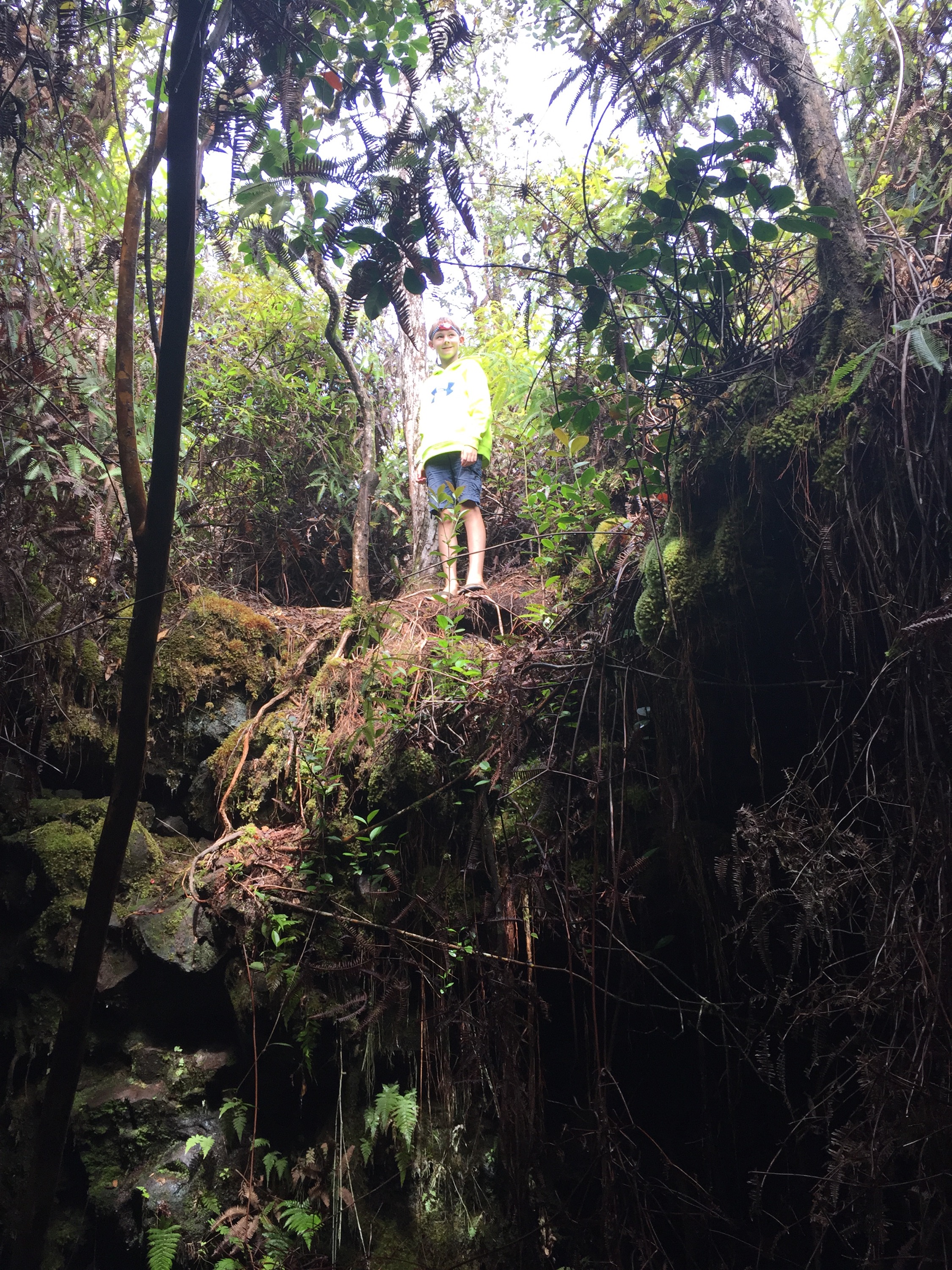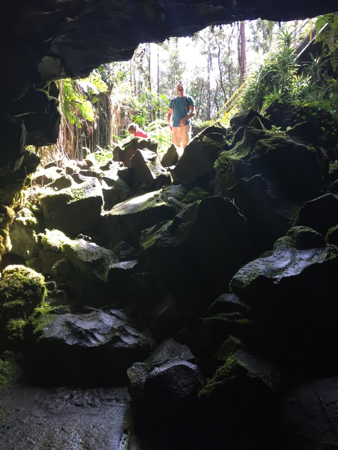 Finally we made it to Kaumana Caves!!! One of our favorite family memories is exploring Ape Caves with Aunt Stephanie, Cyrus, Aunt Suzanne, Uncle Jeremy, and Hadassah (Elijah in utero). We were eager to see some other lava tubes and use our headlamps. We had been told by several people it was a short walk even though the Internet research we had done told us that the Kaumana Lava Tube was 25 miles long, and was created in a 1881 eruption of Mauna Loa. We didn’t know how far we would actually be able to go. And now that we have done it I have no idea how far we went. We explored the section of the tube going down hill first and although the entrance was larger it was deceiving and we spent a good potion of our explorations in this tube quite hunched over. It was still very fun.