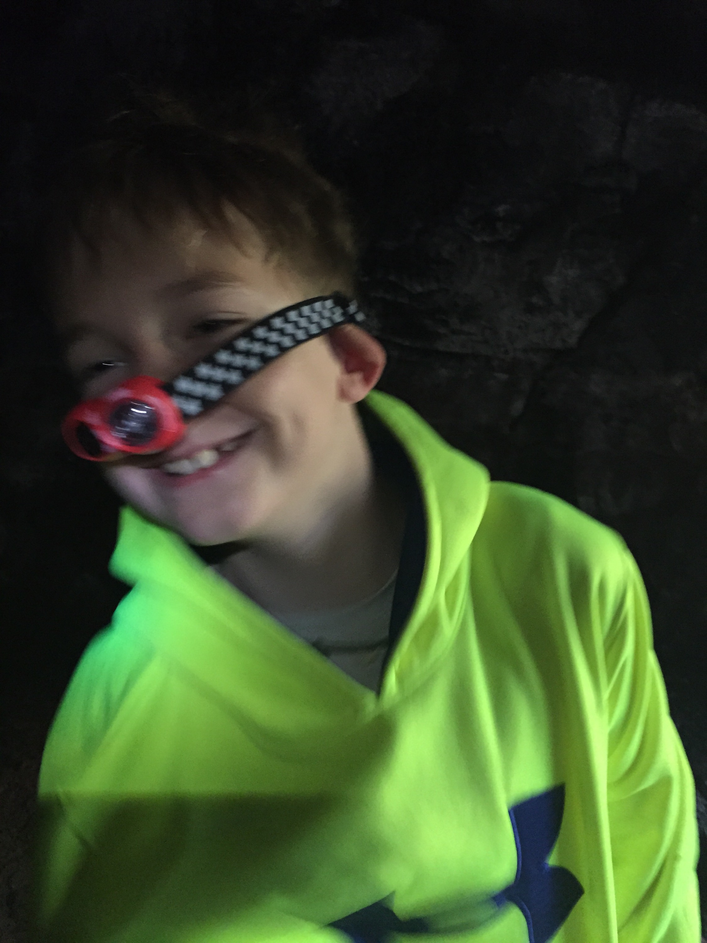 This boy kind of lost his head lamp when he put on his sweatshirt. He makes me smile.