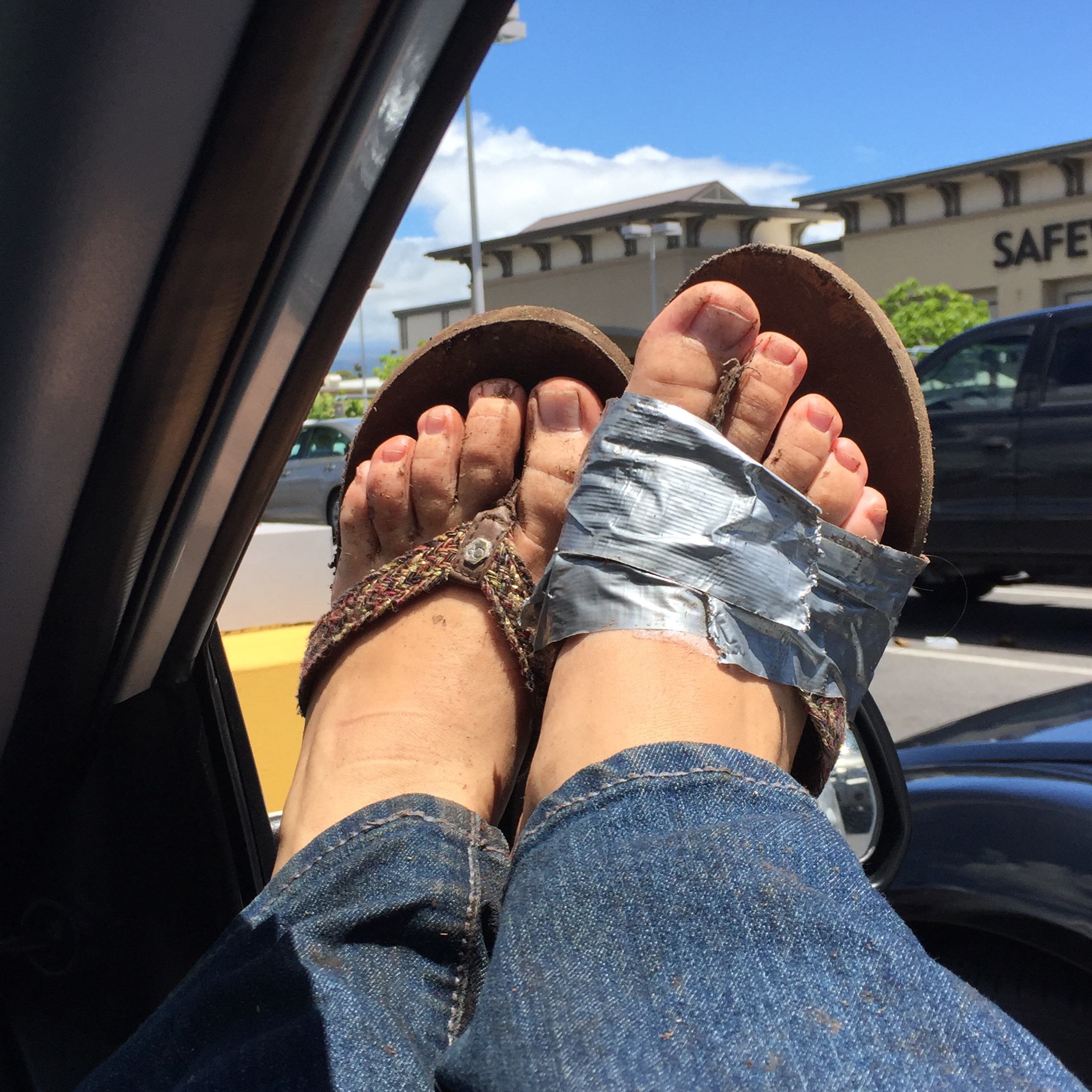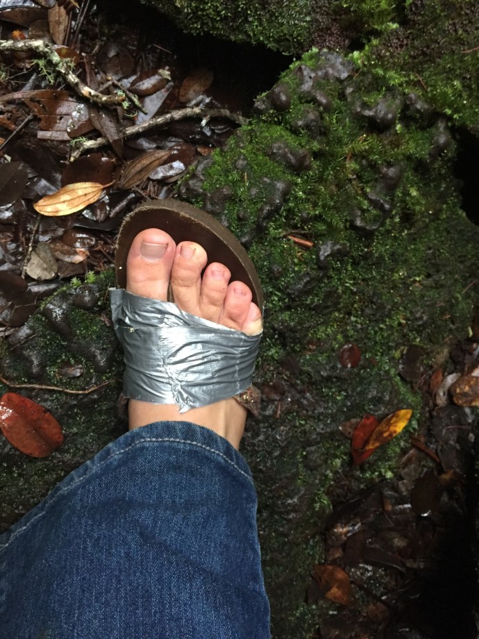 My slippers (flip flops) broke mid hike of the second tube, Chad came to my rescue with a small roll of duct tape from his pack.