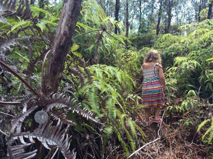 There was a rough non groomed trail back towards our car and we opted to go back via the trail. Eve wasn’t a fan, but we mostly enjoyed our hike through the Lehua rainforest.