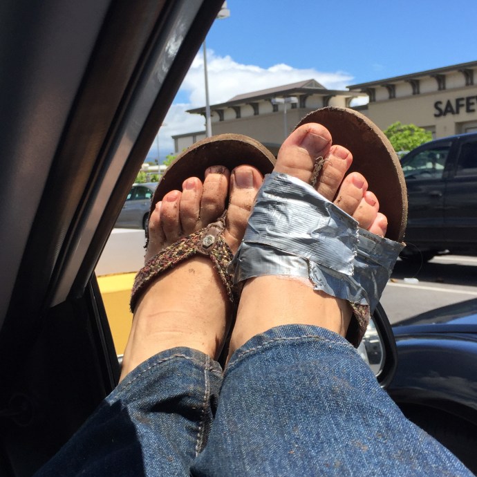 Due to my duct taped shoe, Chad ran into Safeway and got the fixings for our lunch date and then into Walmart for some new slippers.