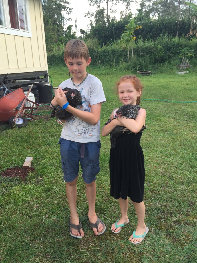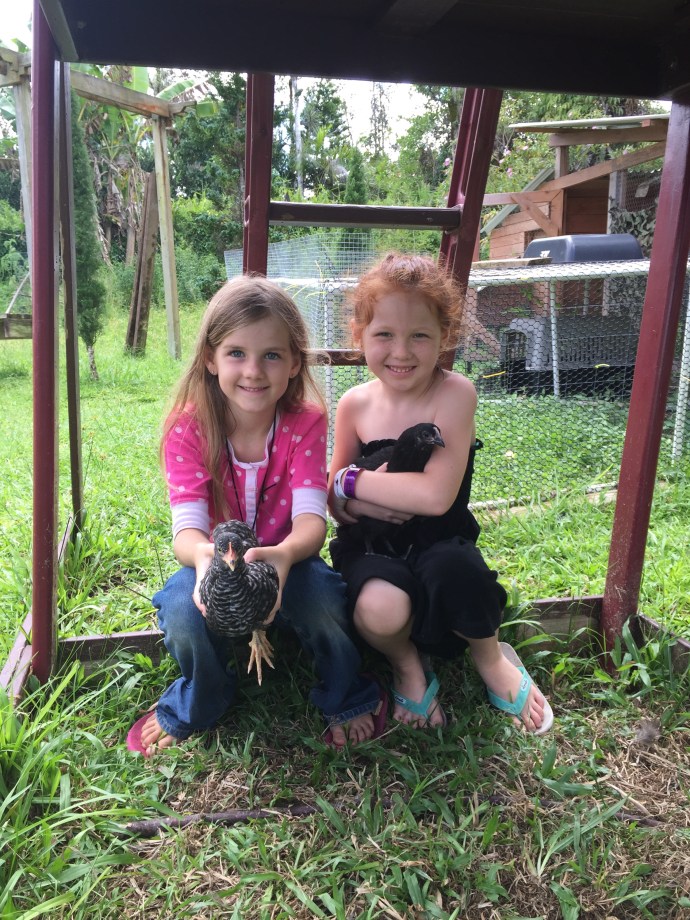 Hannah and Alethia were being chicken mommies loving on any chicken that they caught.