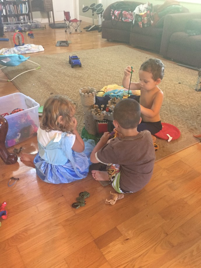 The little ones played well together. I loved how they incorporated their real life problems into their play. Princess Elsa would declare she had to go potty ergently and it sounded like there was quite a commotion getting her to the potty in time.