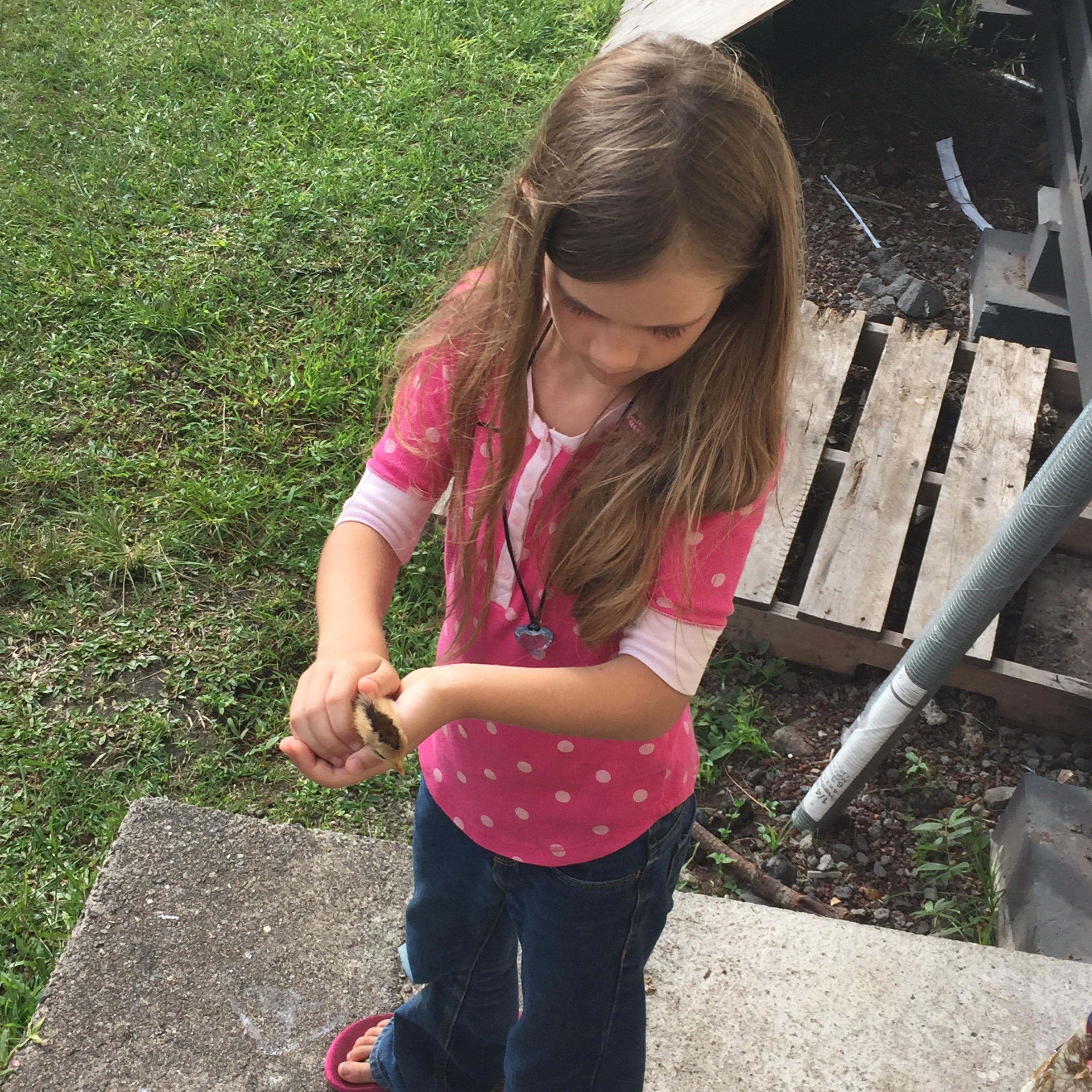 Hannah found a wild chick eventually we got it reunited with its mommy.