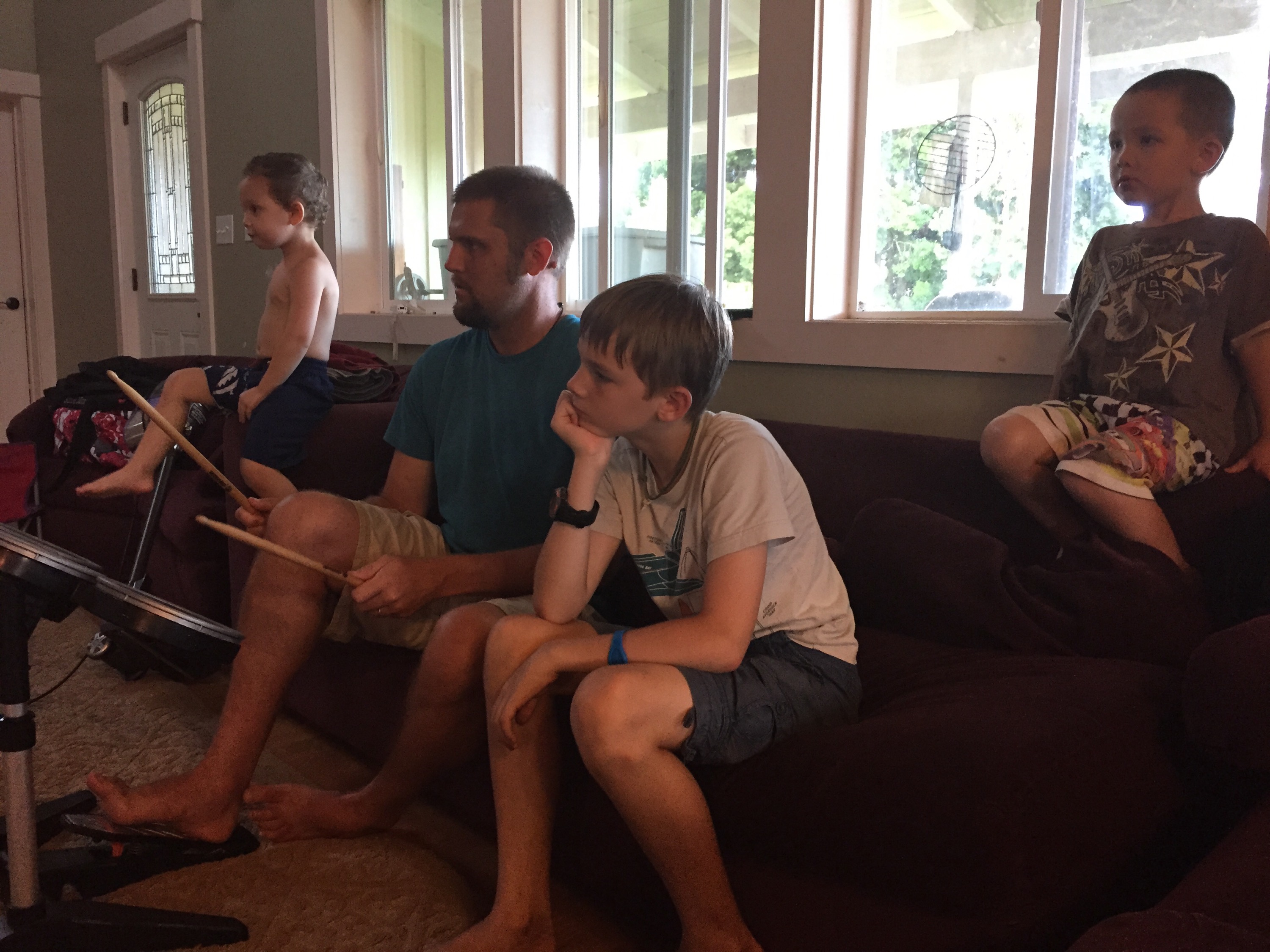 The boys started playing Rock Band. I love to watch them, I don’t mind playing the guitar part, but have never been any good at it. Still it brings back lots of good memories with my sisters and brothers-in-law.