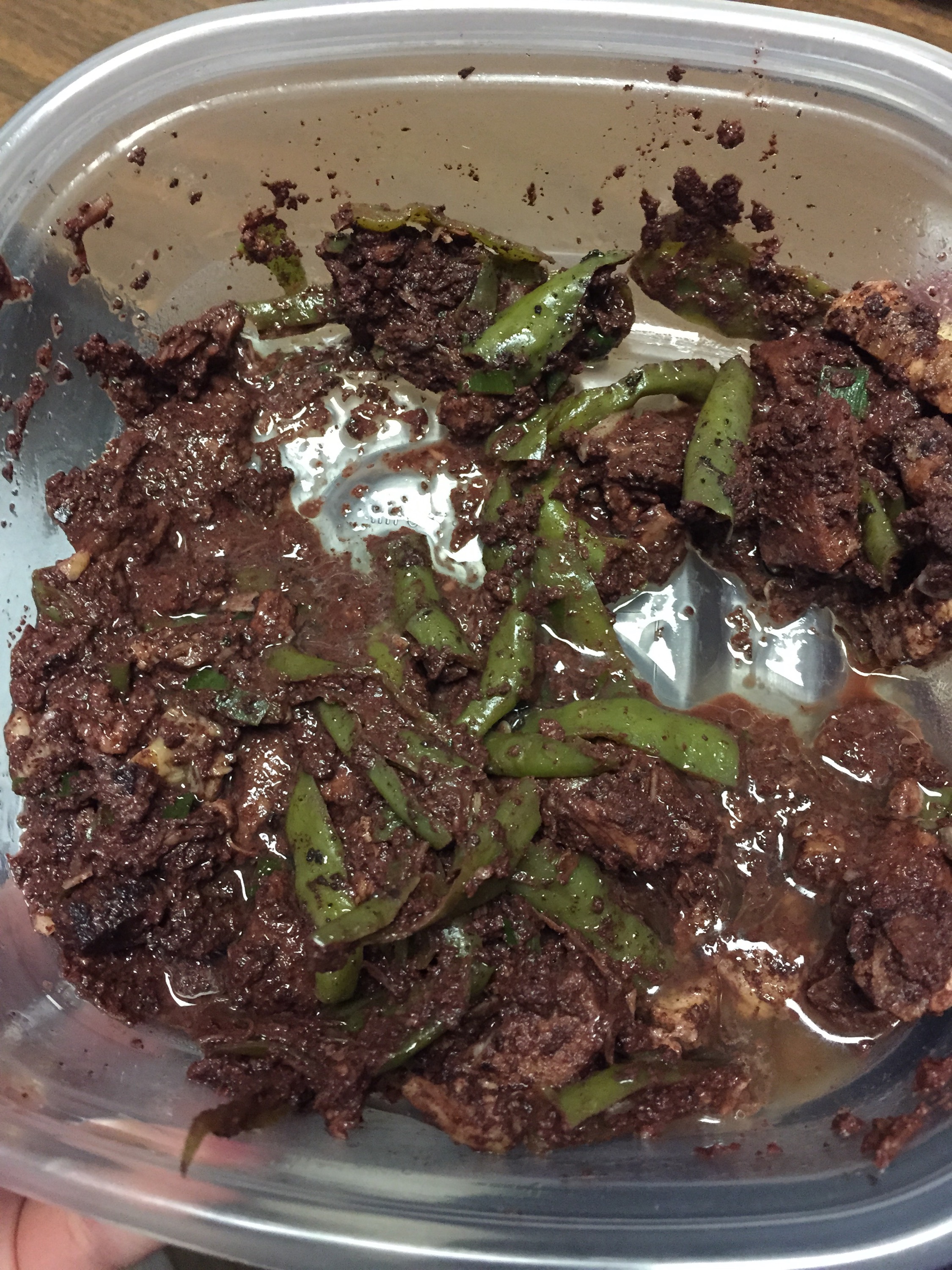It may not look that great but be honest it doesn’t look that bad. Picture it on rice. It was pretty good. My iron levels must be good now. It tasted great. Graininess was the only drawback of the dish.