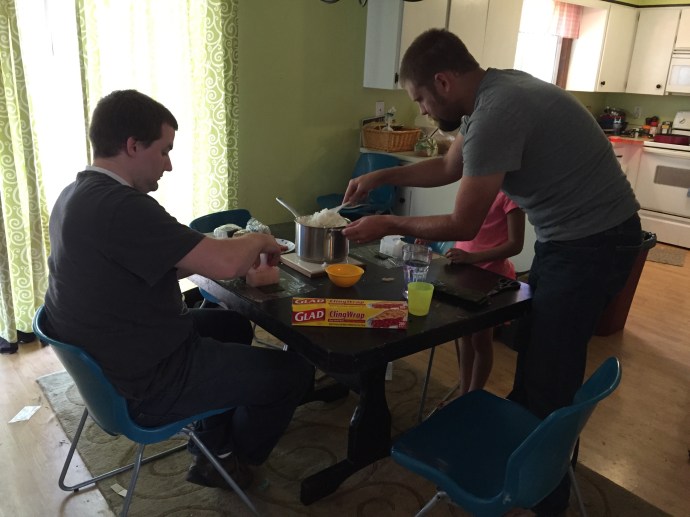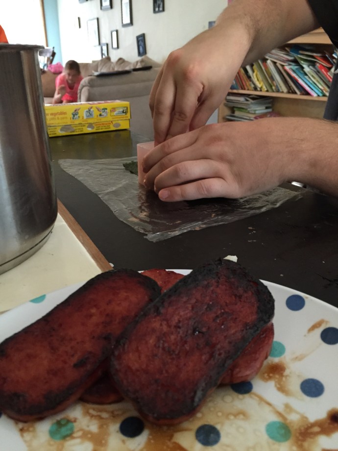 Here are a few pictures from teaching Uncle Jayson how to make musubi this afternoon for lunch.