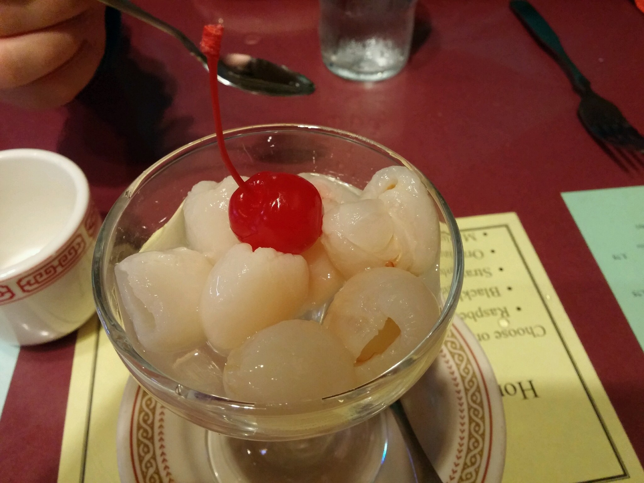 At dinner Chad and I ordered some lychee to split. It was canned lychee but still good.