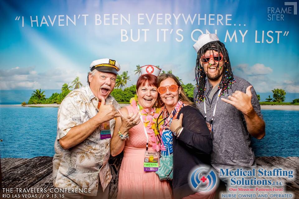 Day two started 45 minutes later and was a little more casual, I don’t remember seeing any grumpy people, the overal feel was positive and energetic. Breakfast and lunch again were delicious (day one the only gluten free lunch option was potato salad, and it was very good. Chad said that the rest of the food was great as well) the coffee was, no joke, way better than Starbucks and I like Starbucks. We arived early to talk to more venders but seriously making a valiant effort there was about ten we never made it to. Medical staffing Solutions LLC had a photo booth right in front. Everine and I took advantage of the opportunity to get a photo together.