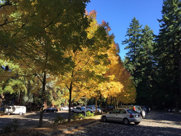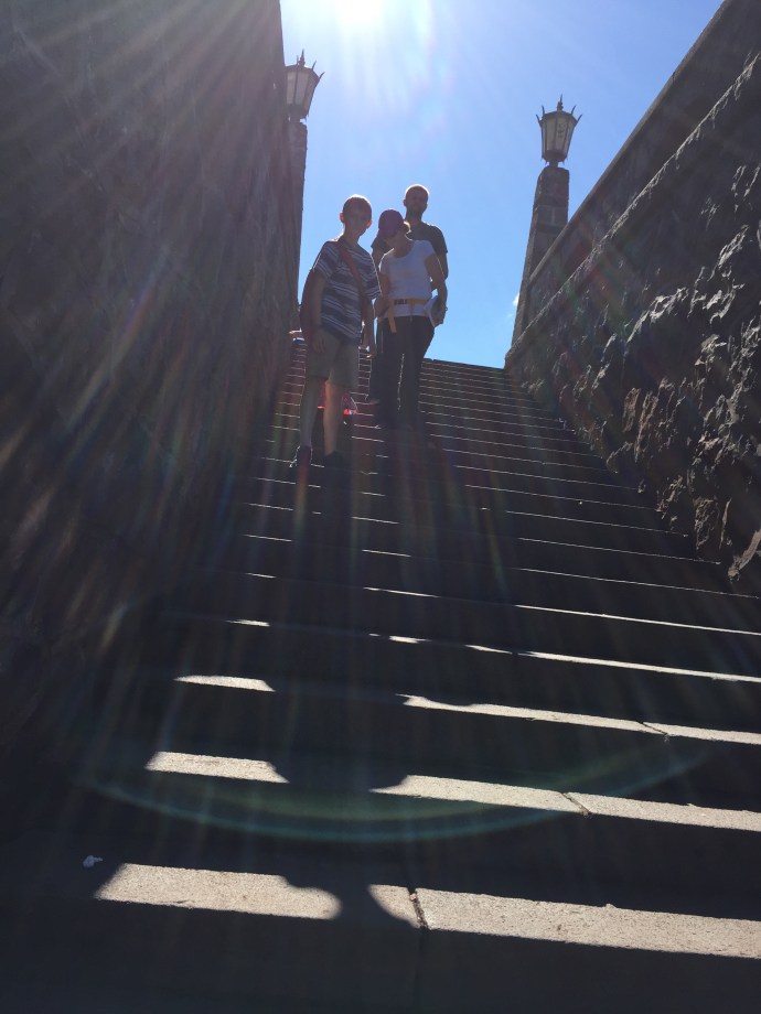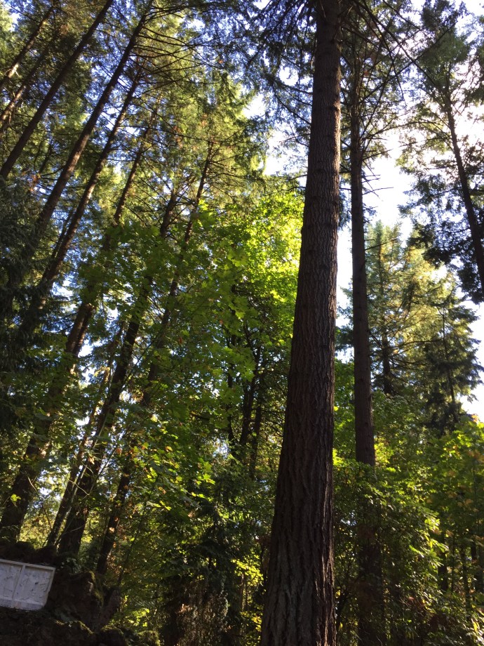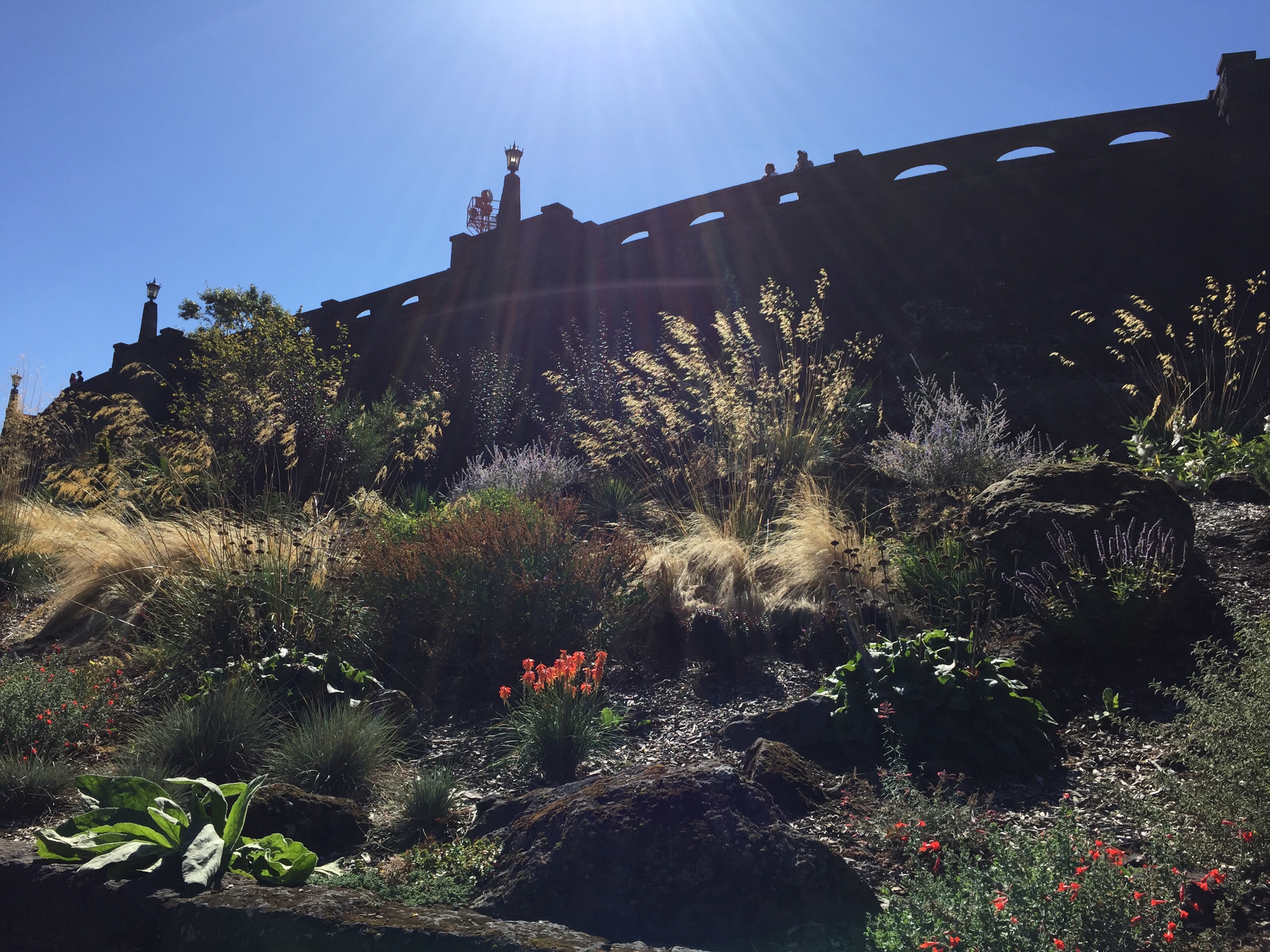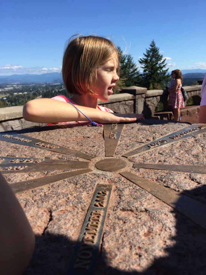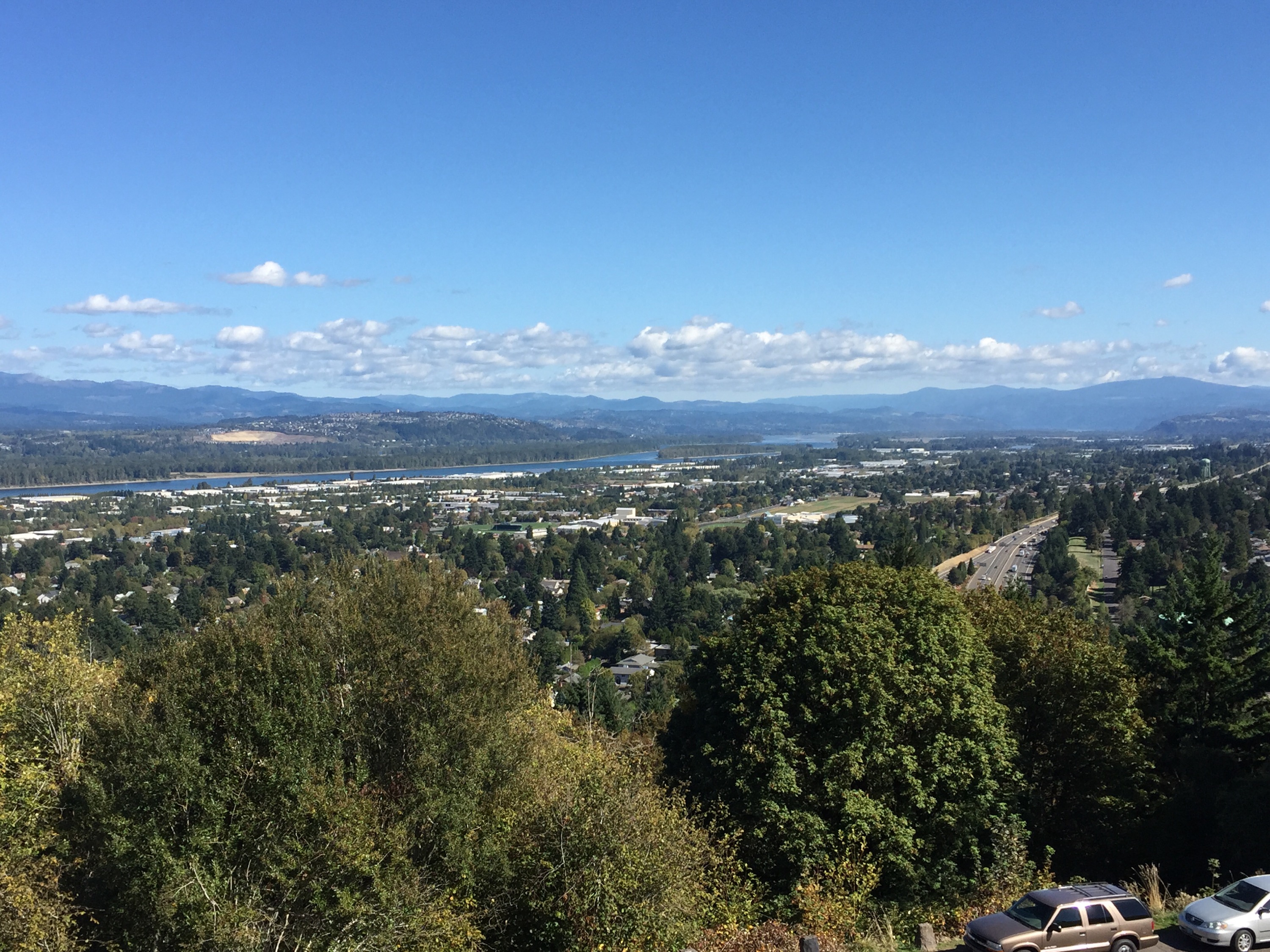 On Saturday we had planned a Portland hiking day with Grandma and Grandpa Owens. Grandpa had one job and would get off around noon or one so Chad started a hammock sewing project and I rotated laundry and checked email while the kids played outside with their friends. Grandpa’s job ended up adding some extr square feet and a bunch of furniture so the decision was made to head out to Rocky Butte with Grandma and Grandpa would meet us at Pieology for dinner. We didn’t end up finding the trail head instead we found ourselves on the top of the very scenic butte. We checked it out while we waited for Grandma. It may have been poor planning on my part, but I didn’t realize there would be no bathroom facilities there when I chugged the liter of water on the way to Portland. So quickly the plan of hiking backwards down the trail then back up turned into a let’s check out the park again then head down and check out the Grotto just below. The view of the whole valley was AMAZING!