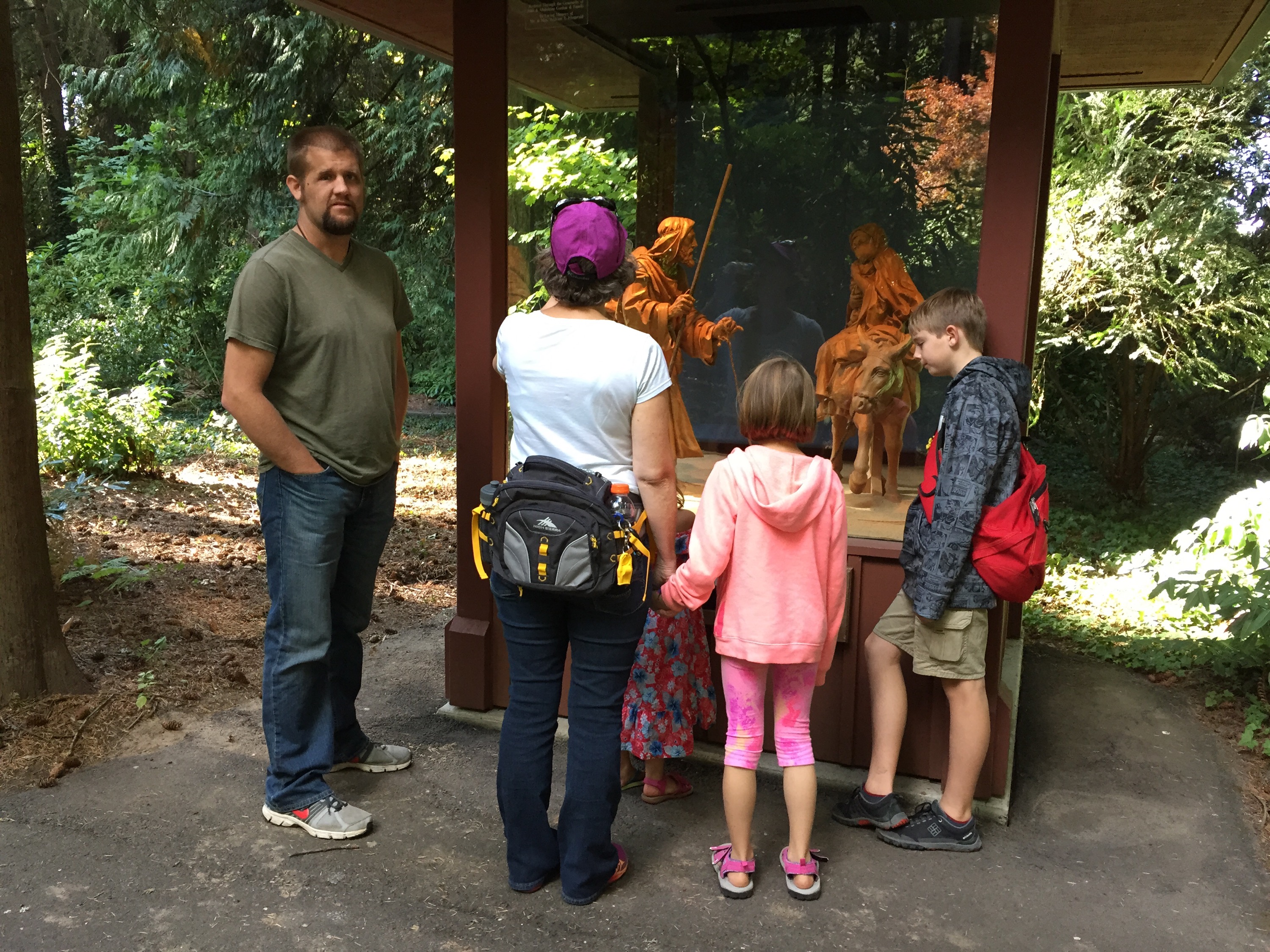 We finished the awe inspiring walk through the upper gardens and around the Grotto grounds just in time to meet grandpa at Pieology for pizza and then a walk through Cabellas. We definitely do not deserve to be this blessed. We are so thankful for the gift of time out with Grandma and Grandpa, and the diverse and beautiful parks and churches in Portland. Sometimes I look around for a shoe to drop. We have no guarantee of tomorrow. It sure is amazing, though, when you take the time to just be in the moment.