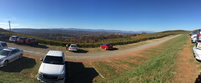 After church we followed the couple who taught our sundayschool class to a Chinese restaurant where we met up with Bryan and Jessie (we sat with I service). We started talking and getting to know eachother as we waited for our lunch to come, and discovered something major that we had in common with them. They met in Hawaii and in February of this year moved back to the mainland from Hilo! That alone gave us so much to talk about. Our Sundayschool teachers have two girls the same ages as Caleb and Eve. Their poor youngest didn’t know what to do with all of Eve’s energy and enthusiasm. After lunch it was decided to check out Carter Mountain Orchard which was just around the corner from lunch, around the corner and up a steep hill. The view was fantastic.