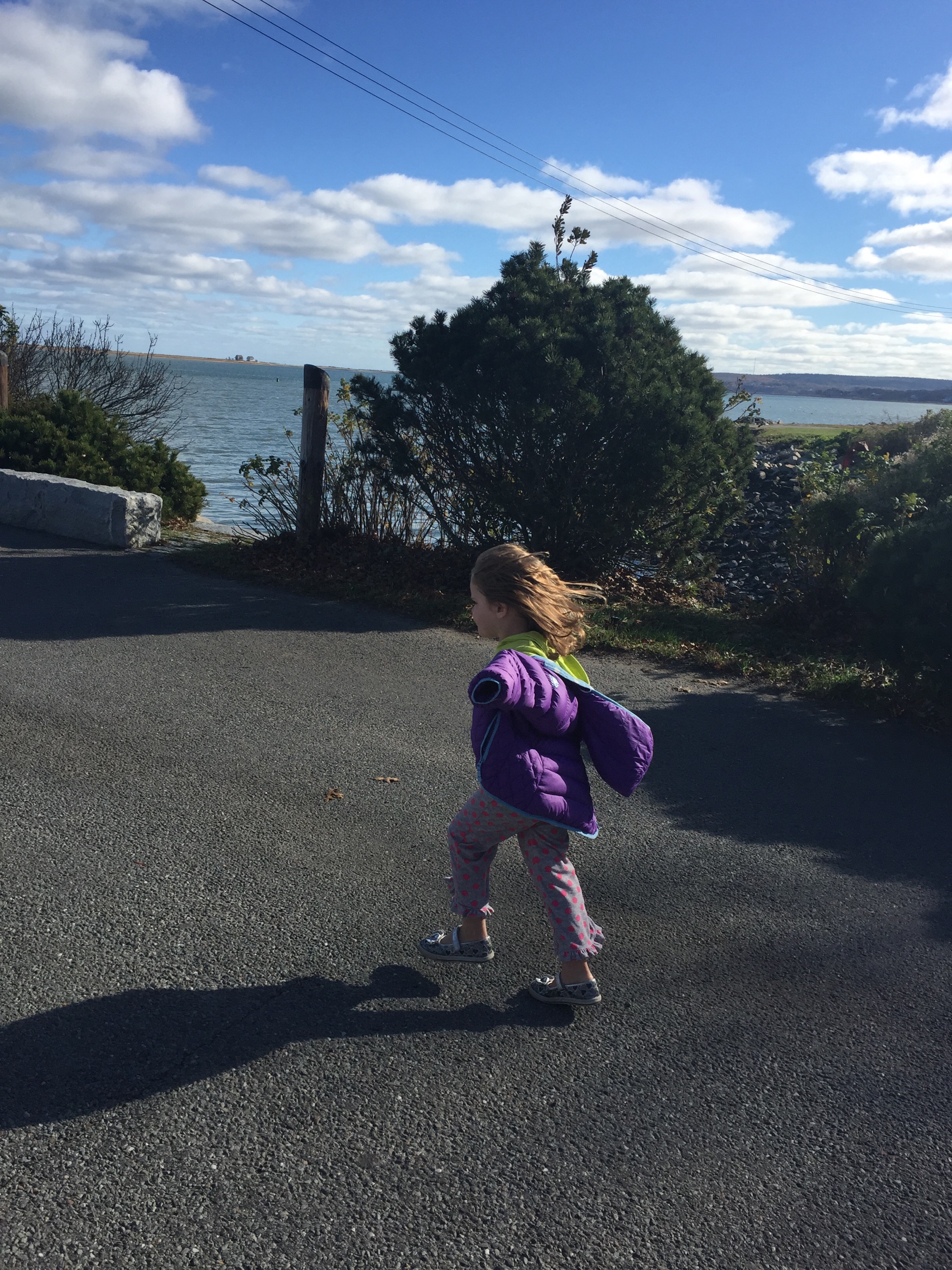 We arived in Chelsea Maine around 3:45pm to visit college friends from our time at Northwest Nazarene University so long ago. We haven’t seen them in 12 years, when their oldest was but a few months old. Pam and Kelby have/are building a farm on their 90 acres of Maine birch forest amazingness. As soon as we were out of the car and had introduced the kids they were gone. The girls ran to the end of the field where there was a large (SUV sized) rock that was more like a fort platform. The boys headed down to the goats and Pam showed me around to see the animals. The pigs and goats were my favorite, but I liked all of it. I was raised on a dairy farm in rural Idaho with a mini everything else farm on the side. We had a pigmy goat named Victoria and a ginormous sow named Bandy who had piglets every year at least once. Ducks, chickens, and sheep were our pets. It was the very best childhood I could ever imagine. I often feel bad that I am unable to give this type of childhood to my own children as I recognize how it has been of such a great benefit to me. It is times like this where I watch them run and play in the fresh brisk air with their sparkling eyes and rosy cheeks freed from the boundaries of the small urban lots, and busy streets where you don’t know your neighbor and fear everyone and everything.