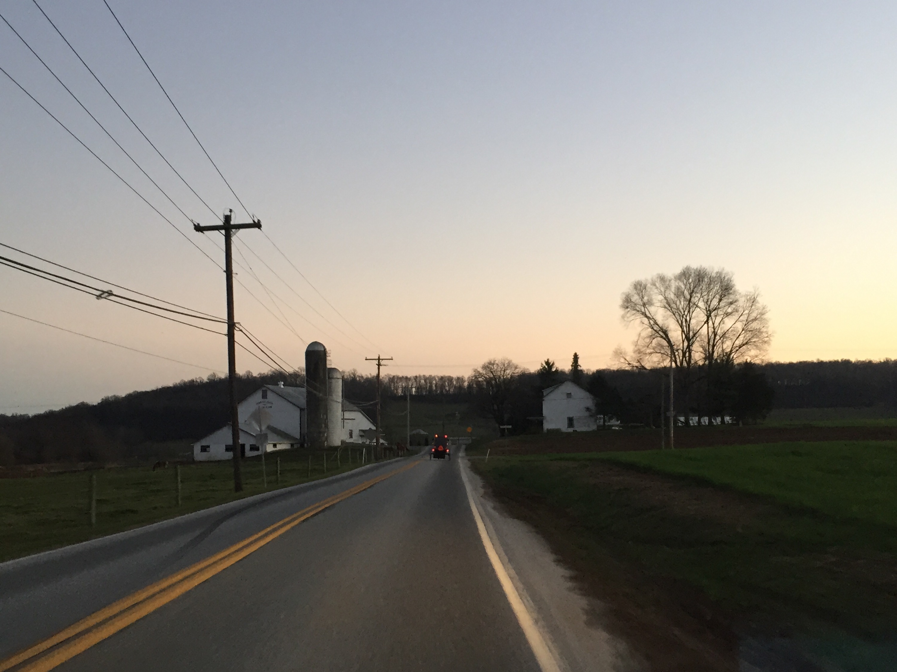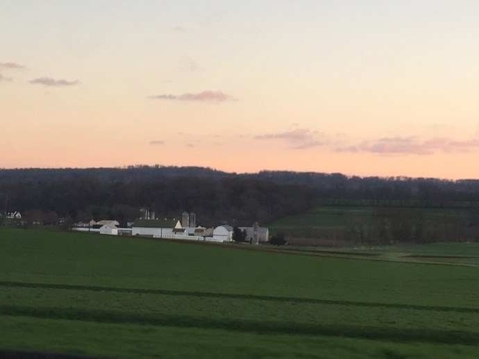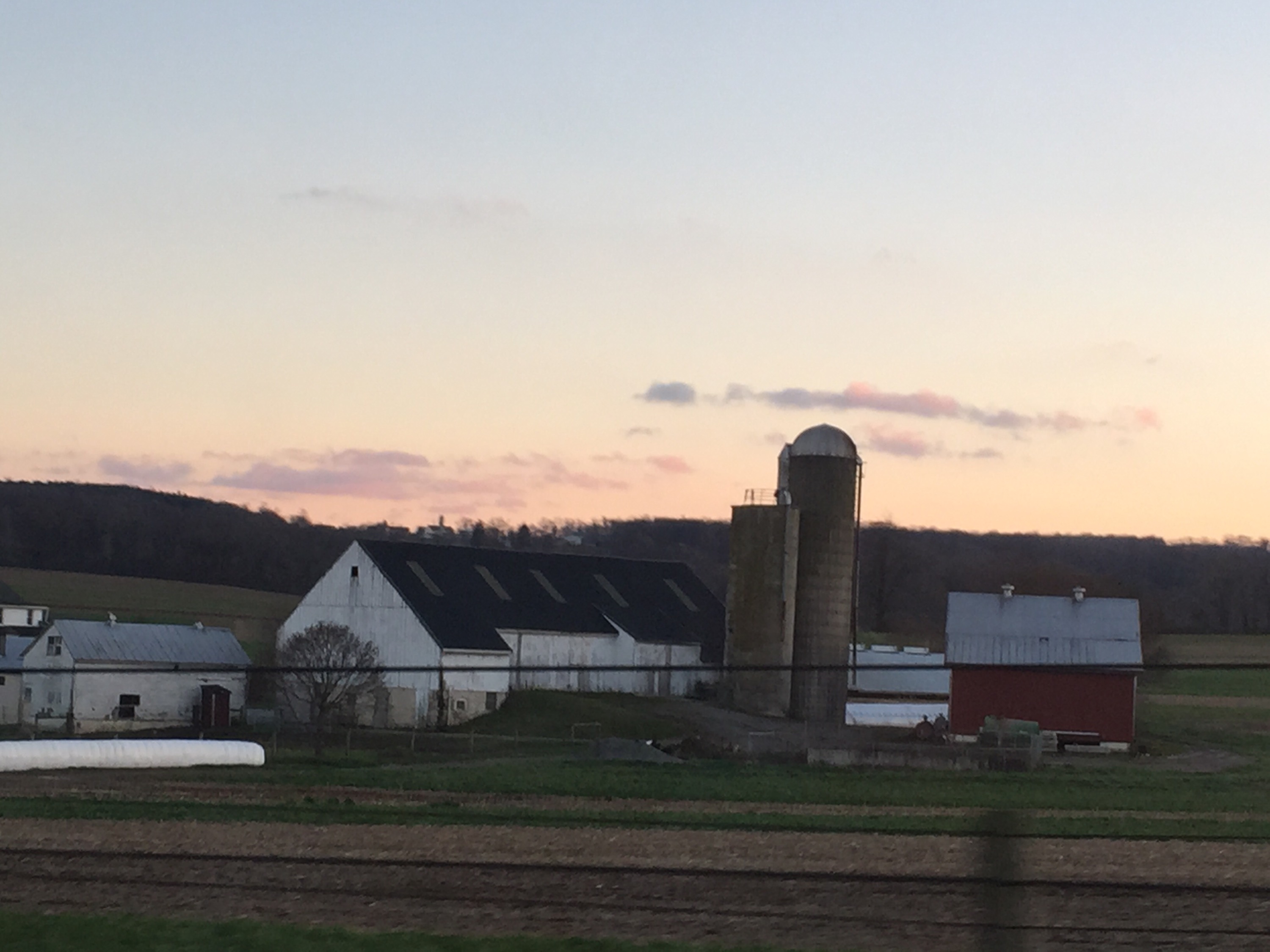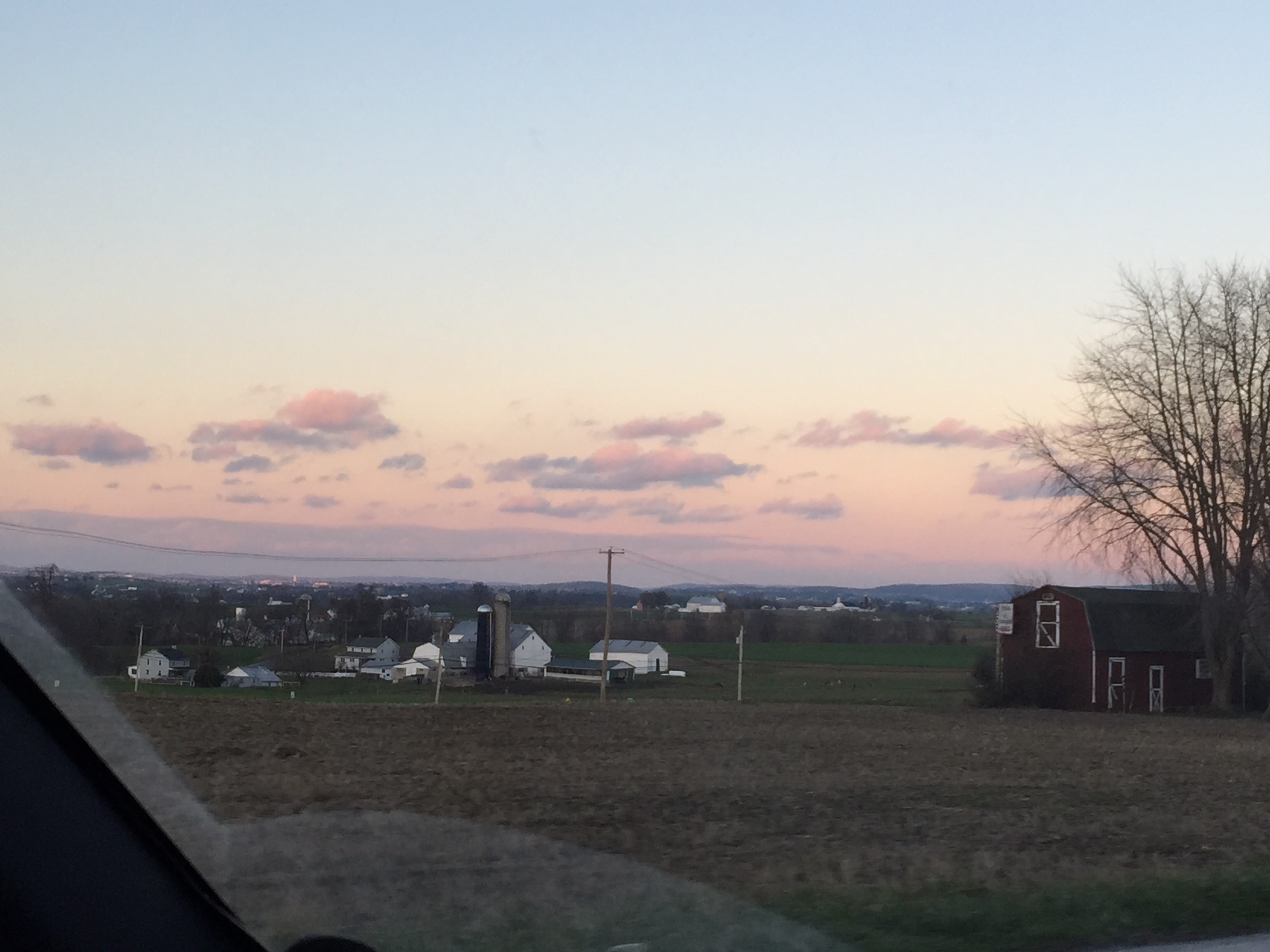 We fit in two extra hours of visiting with Brooke this morning. The mall near her is surprisingly devoid of great coffee places. It’s a good thing the hotel coffee was good and I had filled my thermos before checking out. We said our goodbyes and headed south just before lunch time. We drove down through Lancaster County deciding to enjoy some of the back roads to enjoy the beautiful farms and land as the sun started to set. There is still a dairy girl in my heart.