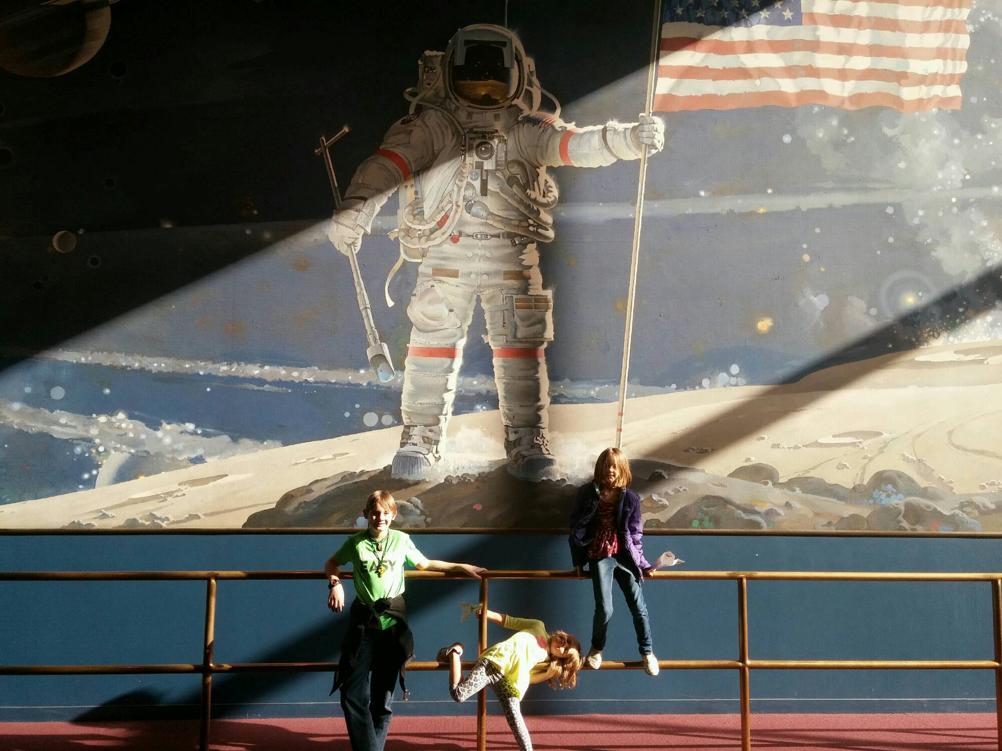 Yesterday after Sarah got home from work we loaded up in the car and took off to the airport. We need to get out to Dulles airport for her to catch a flight to San Diego so she could attend her grandmother’s funeral. After making the trip to D.C. I did not want to waste the day so we headed over to the air and Space museum. The kids were unsure of it but agreed to go with me.