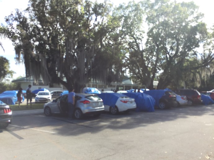 The first park with scenic walks took us off gaurd when we pulled into the parking lot to discover all the cars covered in blue tarps. What was going on? We soon discovered the birds that make this part of the park their home have a thing for the soft rubber on cars and will peck at your car and destroy the rubber unless you use one of the provided tarps to protect your car.