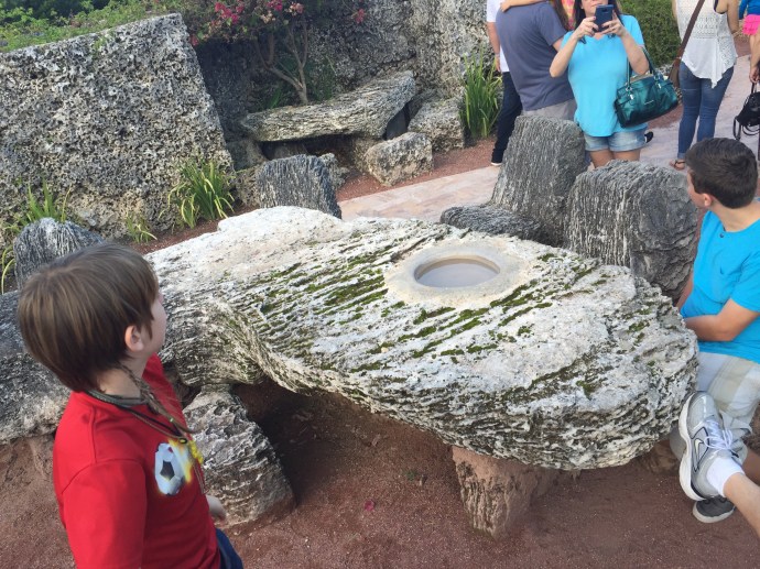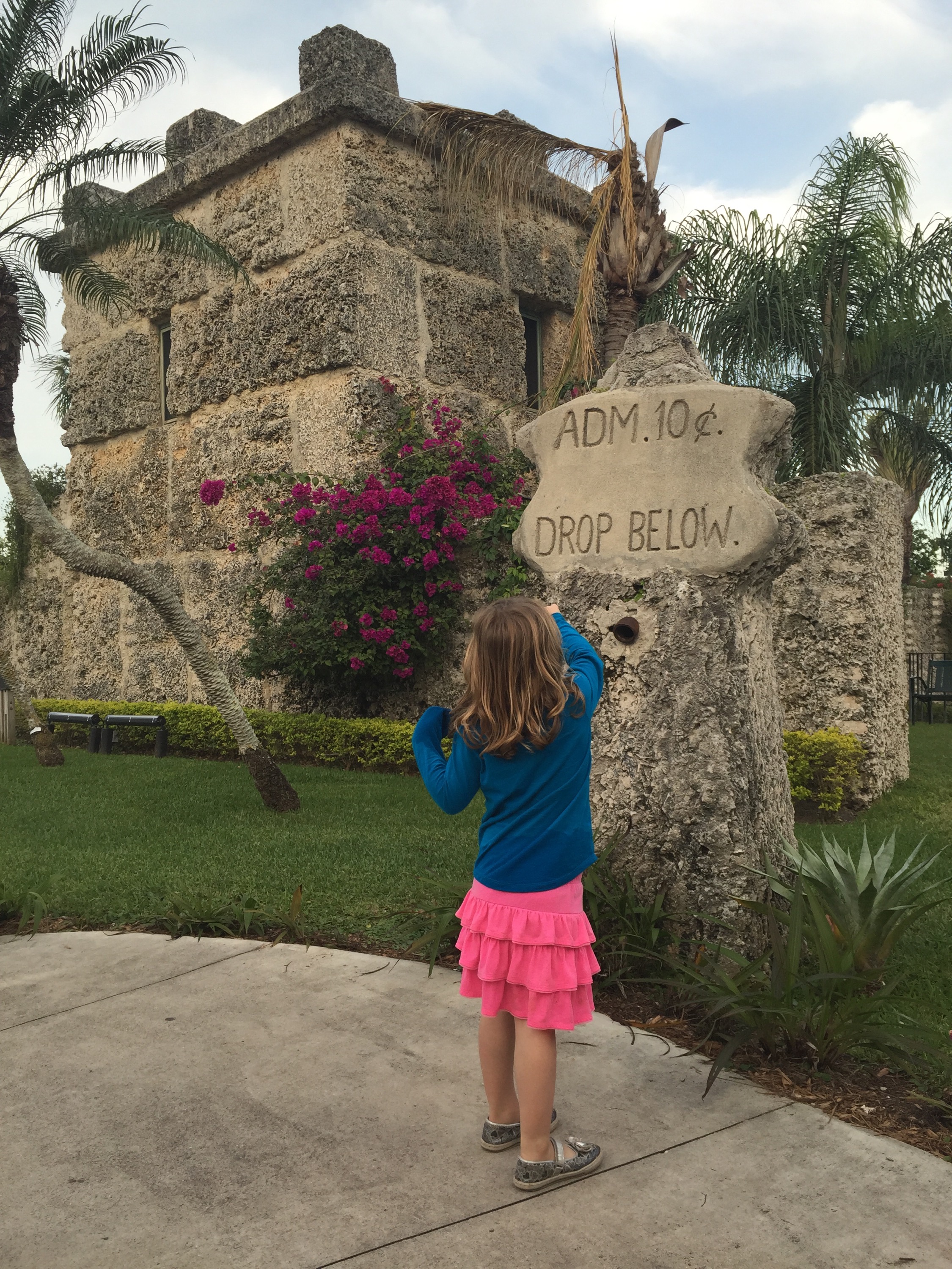 The Everglades National Park was nothing like we expected it to be. We weren’t surprised that it was beautiful, but we had expected the proverbial swamp. We learned that instead it is a 50 mile wide river basin that’s shallow depth and slow moving water allow for grass and other plants to grow up to the surface of the water so that it looks like grasslands the areas that are slightly higher in elevation make little mangrove tree “islands” and cypress trees cover the ground that is slightly higher than that. The plants filter the water making it surprisingly clear. Animals big and small can move easily through the water. As the water moves toward the gulf it becomes brackish and hosts different animals. There are some 200 spiecies of birds, 50 reptile spiecies and many different land and marine mammals that call the everglades their home. Soooooo cool! On the way out of the park we had noted that the Coral Castle was a mere 13 miles away. It is a historic and engineering wonder that Chad had been talking about visiting ever since we graduated from college in 2004. It didn’t look like too much from the pictures online. We were very pleasantly surprised.