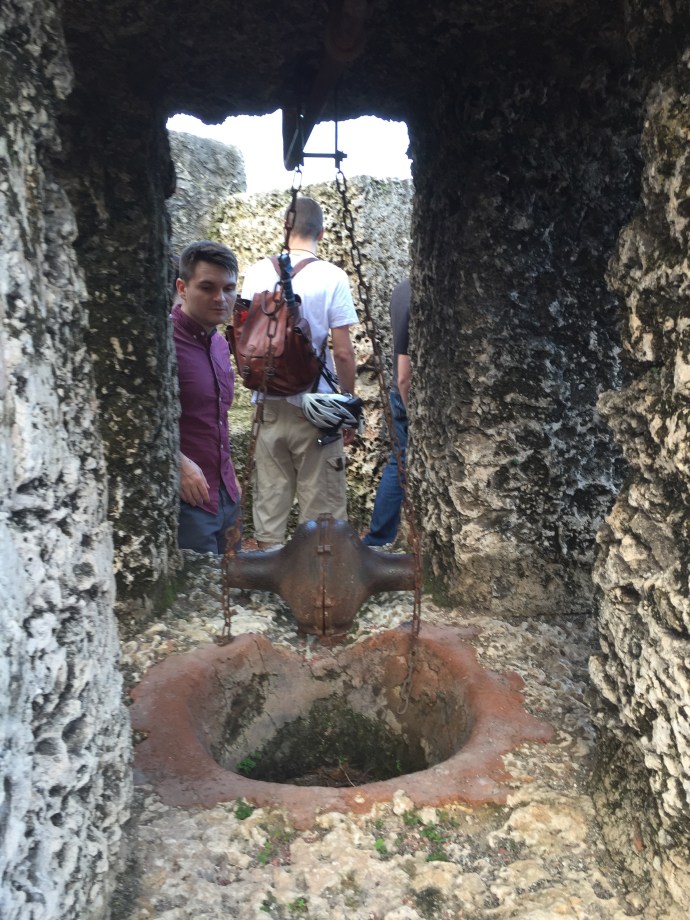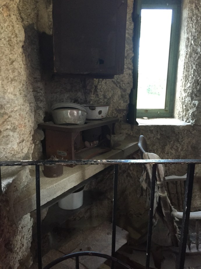 Above is a well in the courtyard and below is his refrigerator. Down in the insulated ground water Ed would store his parish able food in water tight glass jars. By the looks of it I had guessed it was going to be a bath.