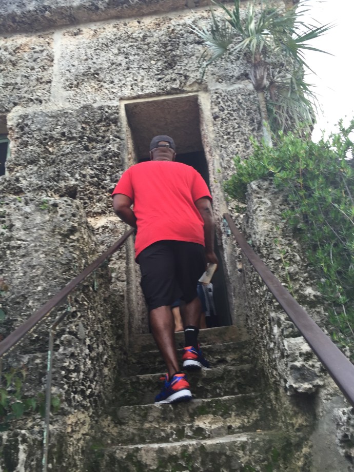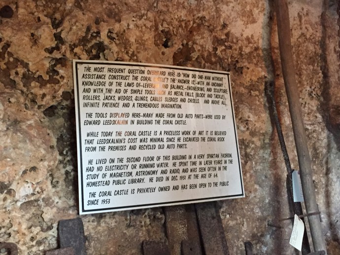 10 cents was the price Ed, the builder of Coral Castle charged for a tour of his home. Below is a life size cut out of him. At 5’0″ tall and a whopping 100lbs we can not attribute his stone castle to be built by his Amazonian physique which makes the castle even more of an engineering marvel.