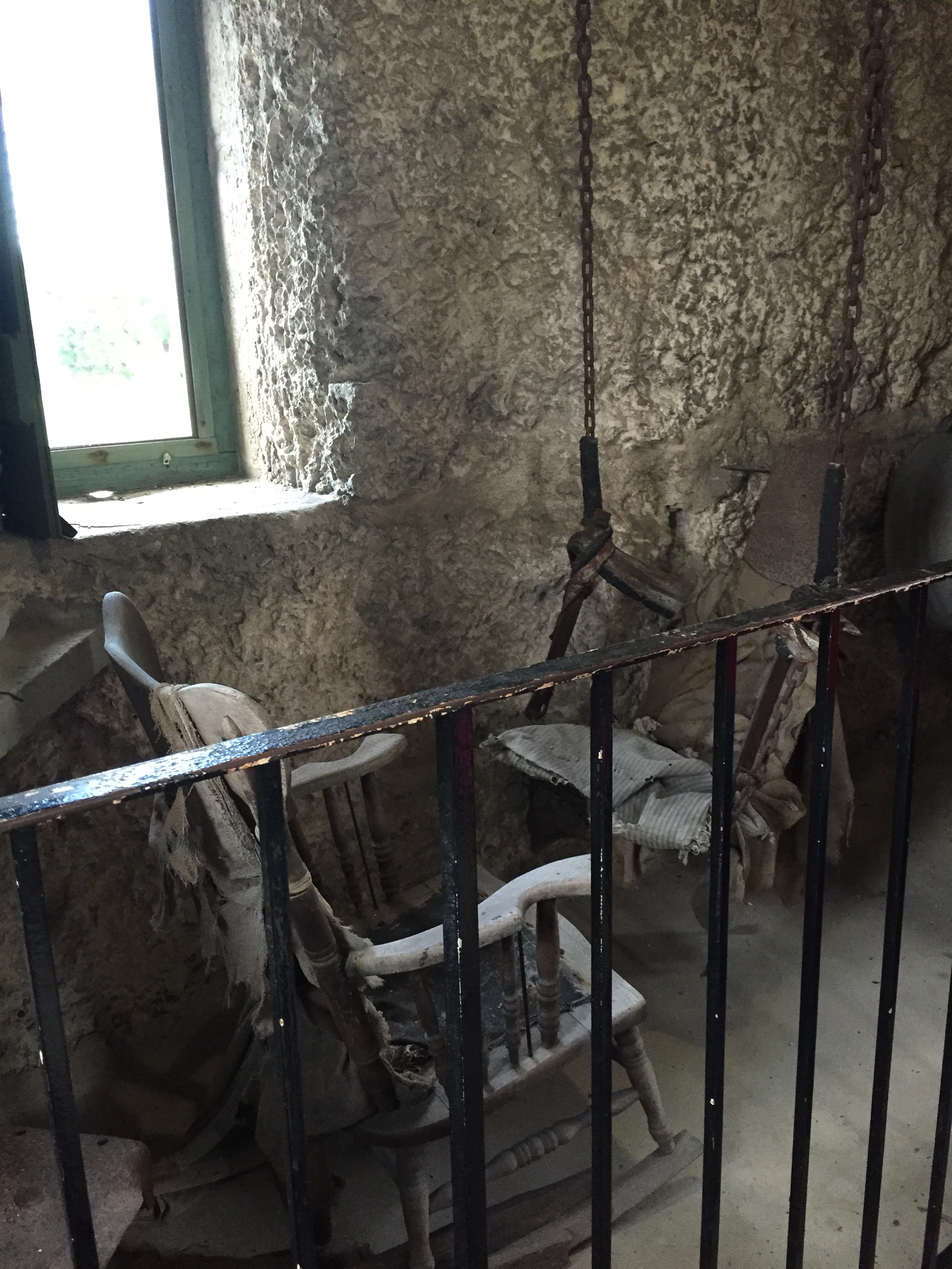 Above is a sunning table. Supposedly Ed was from the Pacific Northwest and had been diagnosed with Tuberculosis he was told he needed to move to a place where he could get lots of sunshine and fresh air to get better. They think it is possible that he was misdiagnosed but there was no sign of Tuberculosis in his lungs when he died. Below is a look across the courtyard the building in the corner is on the first floor a tool shed and the second story a small room so if the elements required it he had shelter.
