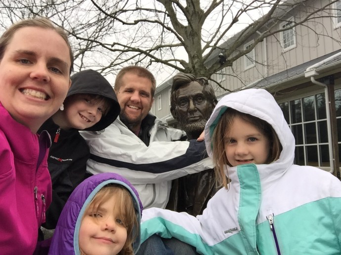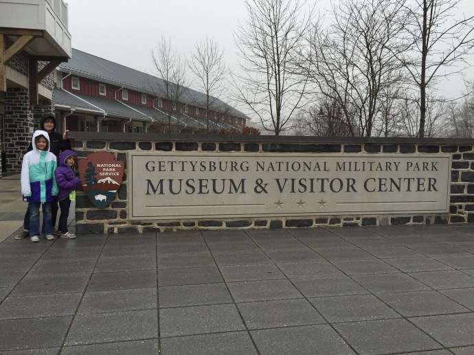 After so little sleep the day before I didn’t expect that I would be up for doing anything on Friday. Surprisingly I had a little energy left after working all night. We weren’t sure what we would try to accomplish. Our list of things we would like to see doesn’t seem to have shrunken down any with the things that have already been crossed off the list. As we are getting closer to being done here we are reprioritizing and Gettysburg and visiting friends and aquantences within driving distance are at the top of the list. Gettysburg was close enough to be a day trip drive and a childhood friend of mine named Ann-Marie lived within an hour of there. We had talked about getting together some time earlier and she had said that since Lancaster county and Gettysburg are close to her house we could meet up at one of those places. I messaged her to make sure they were available and we made plans to meet up after noon in Gettysburg. We packed the kids and headed that way, arriving just a few minutes before our friends. We needed a bathroom break and time to stamp our passport book. Caleb smooshed a penny, Eve flirted with the older gentleman at the counter who gave each of the kids Gettysburg trading cards and Chad picked out patches.