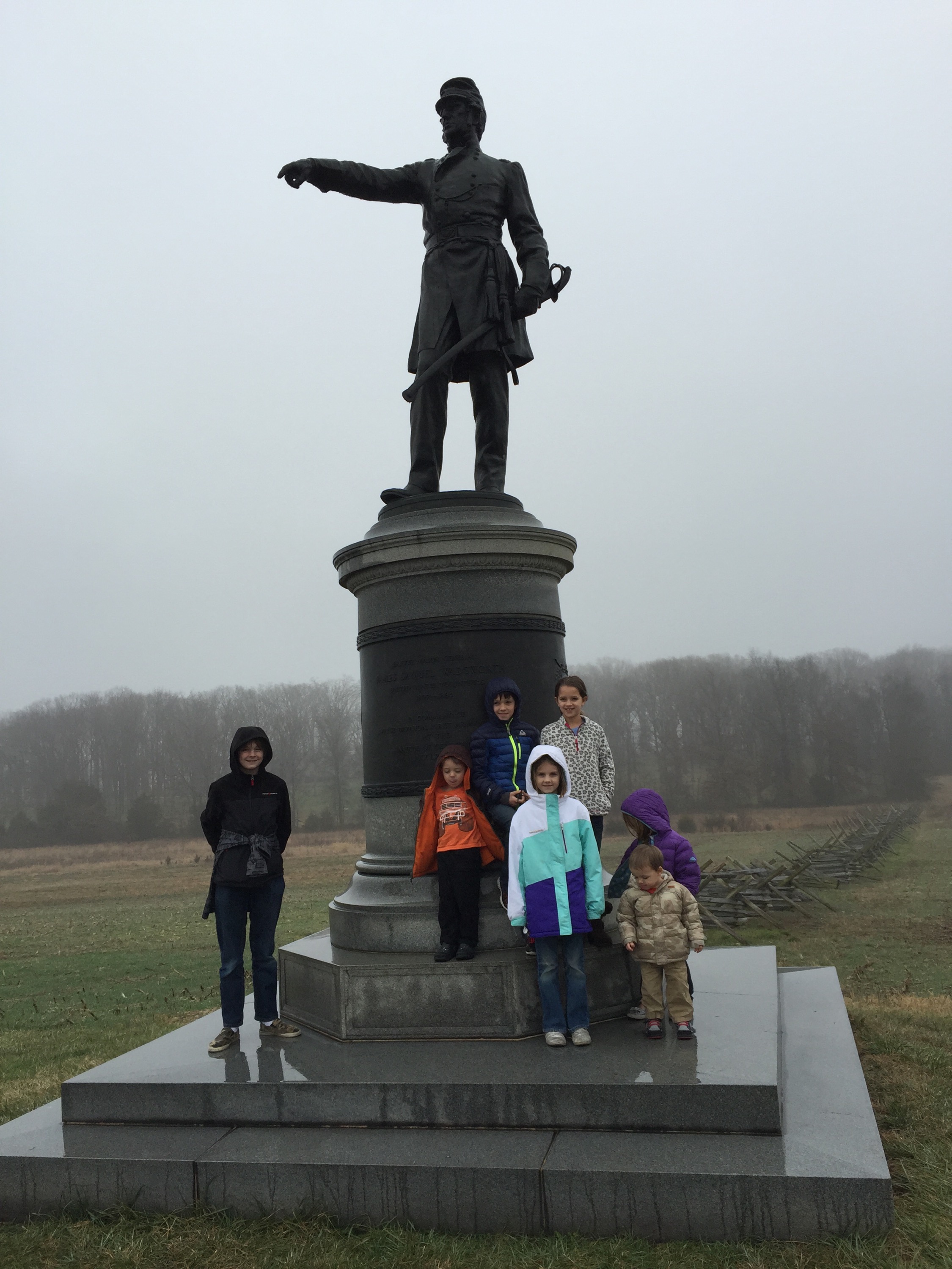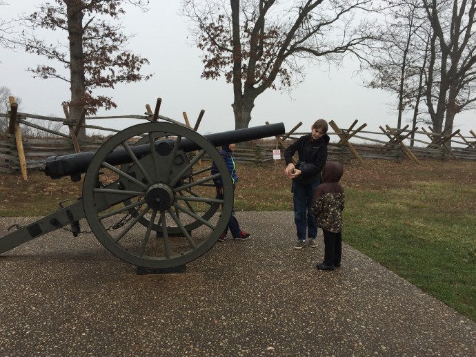 We introduced the kids to each other and they all, except Eve, pretended to be shy for about two minutes. We decided on a plan to do the driving tour through the historic battlefield. Ann-Marie led the way for the first 4 stops then we switched places as they had been to Gettysburg before and didn’t know what we were most interested in seeing. That way we could slow down when we wanted to and we still would all stay together. There were so many monuments and cannons. The kids were adorable and with each stop they warmed up to each other more and more.