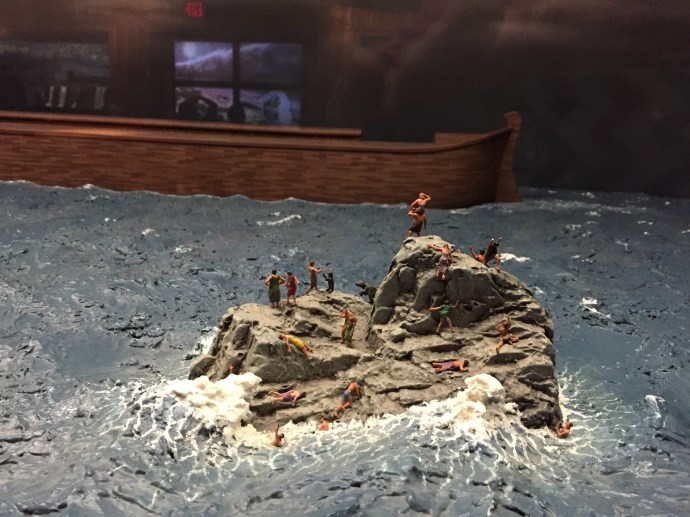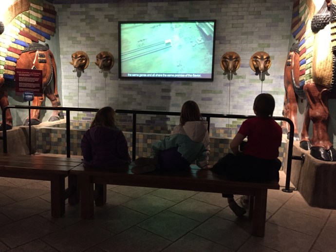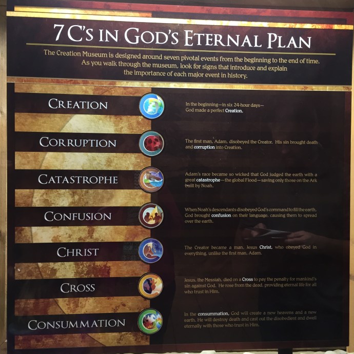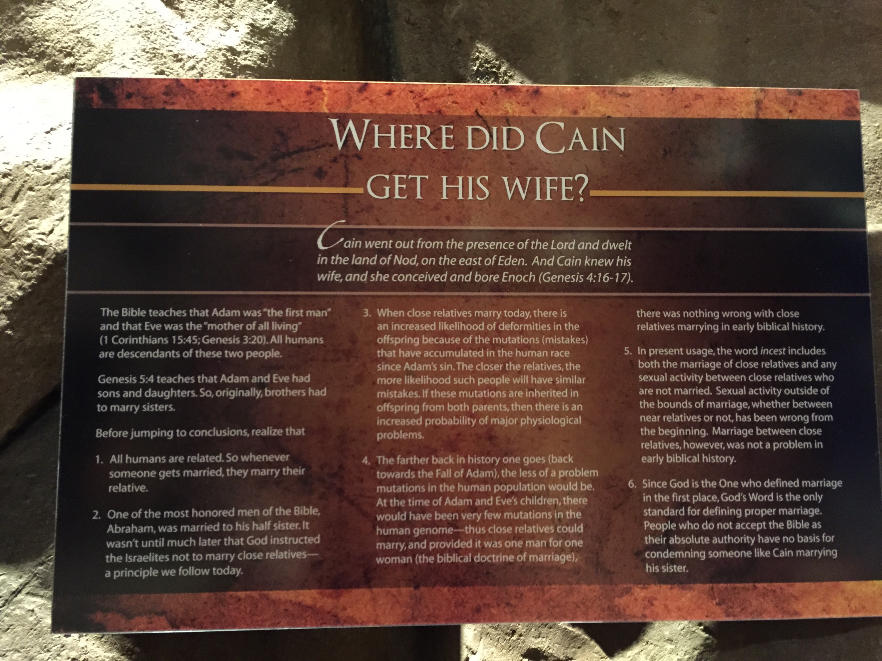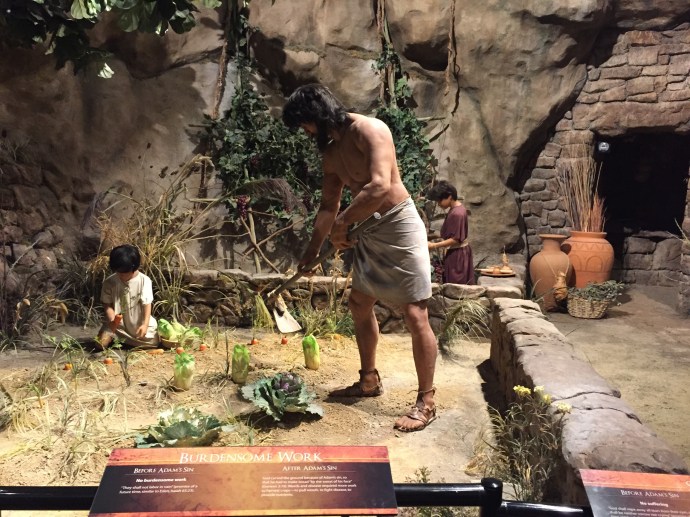 As we drove from our hotel to the museum I couldn’t help but feel like we were nearing the end of a several year pilgrimage. Wanting to visit the creation museum after taking little Caleb and baby Hannah to listen to Ken Ham speak in Beaverton. Man’s attempt to explain the existence of our world and universe with out a divine being had made for some interesting theorys but with creating so many more questions than answers. Just because you can make it sound good doesn’t make it true. Now we have visited a lot of museums and national parks and of course they are all required to take the millions of years theory as their stance. It was refreshing to visit a museum that is consistent with the biblical account of creation. The main two hour exhibit takes about two hours to walk through. It took us longer and we may go back through it today. There is so much reading that I found myself not taking many pictures.