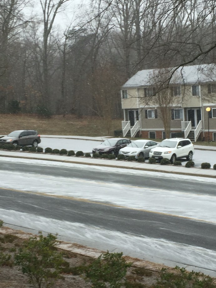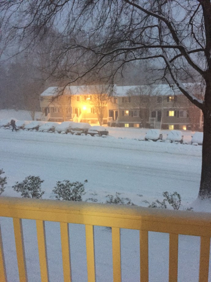 At that point I felt all dressed up with no where to go. My bag was all packed. I had showered and was all dressed and ready. So I started cleaning the house. It was a little weird to be at “home” (our apartment) as I had not yet spent s whole day at our apartment. I was always either at work or gathering everything to leave for our next adventure. Needless to say our space was in much need of some focused cleaning. Around 10:30am the snow started.