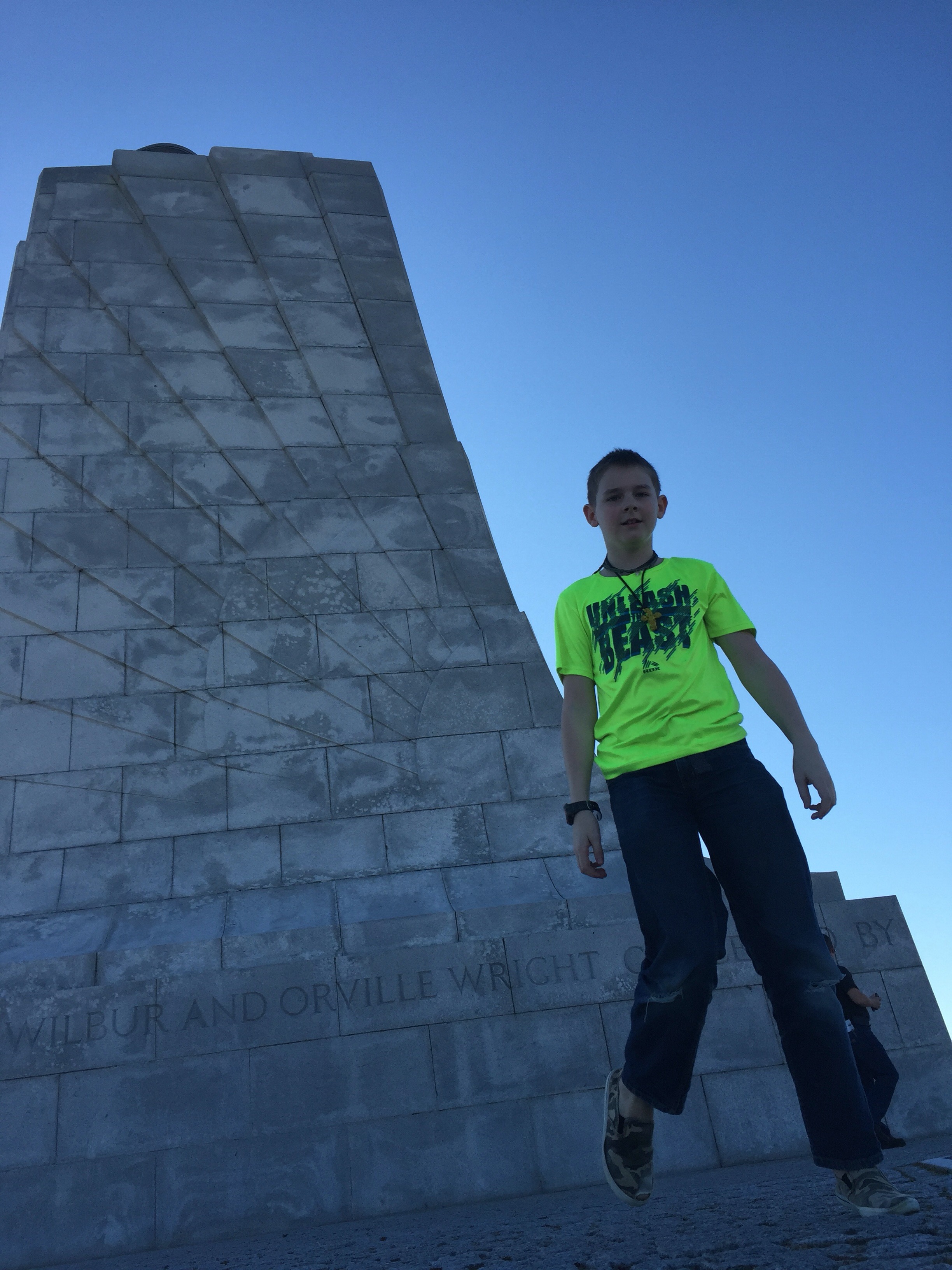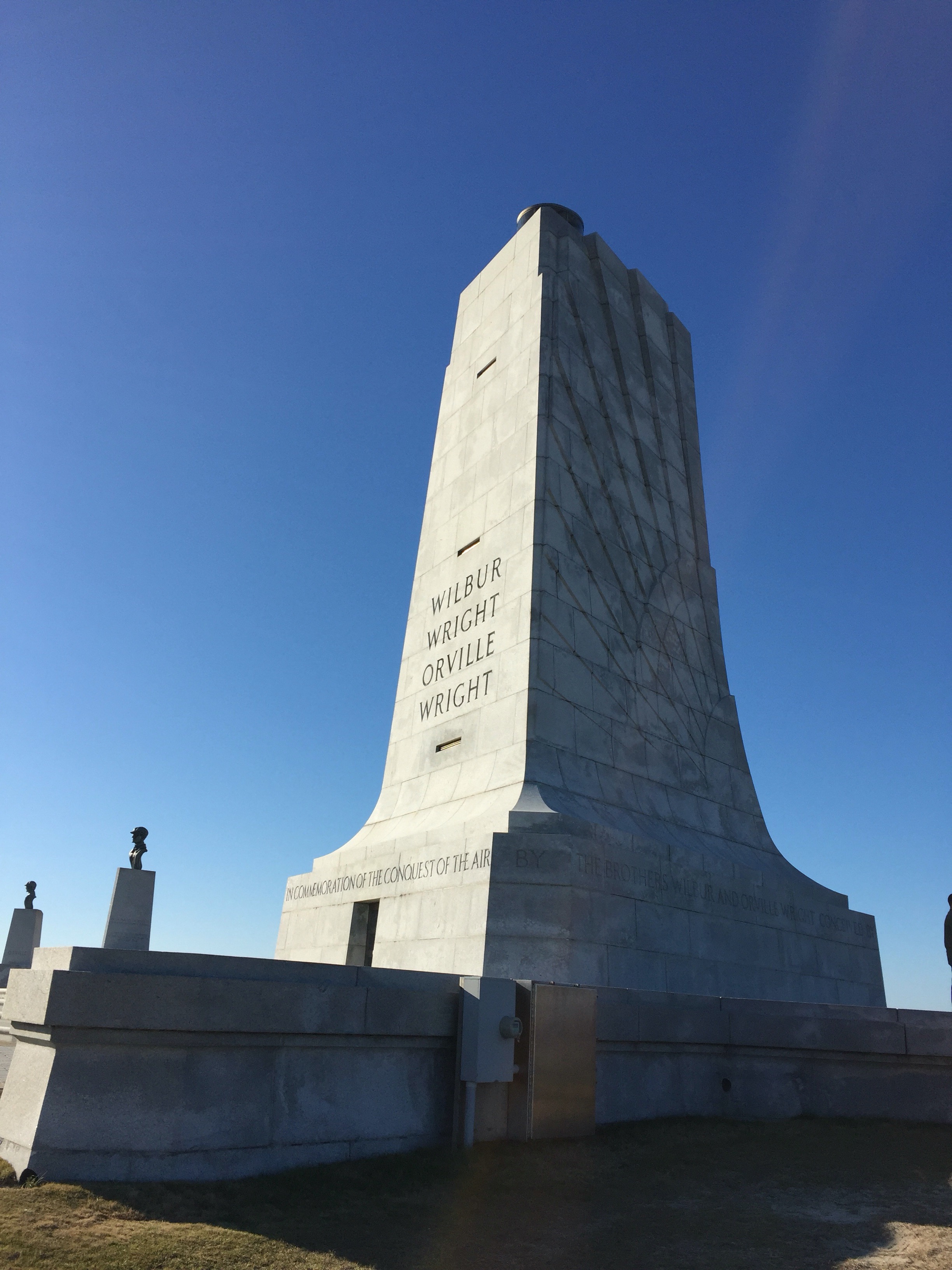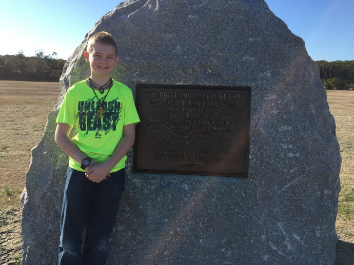 The Outerbanks is the place to go for vacation if you live in Virginia or North Carolina it is like the Keys in a way, a line of islands that are just off the coast extending south parallel to the coast. There are six light houses (I believe) and several national and historical parks. We felt it an appropriate way to spend our last non work day at this assignment. We wanted to say goodbye to the Atlantic Ocean before turning back towards the pacific. We did not set an alarm which would have been a good idea, so we got out of the house kind of late. The Outerbanks is a 4.5 hour drive from Charlottesville. It was around 2:00pm before we made it and the Wright Brothers National Memorial at Kitty Hawk was our first stop.