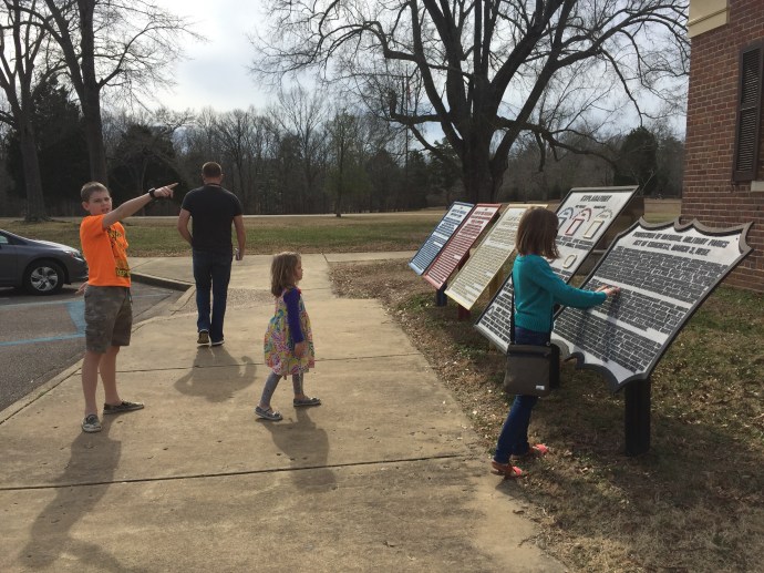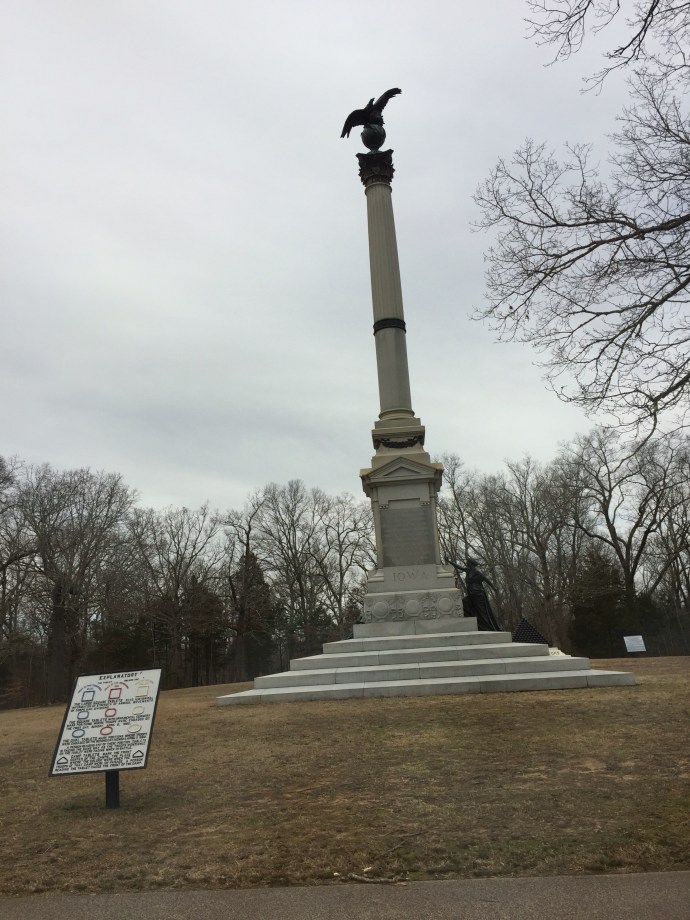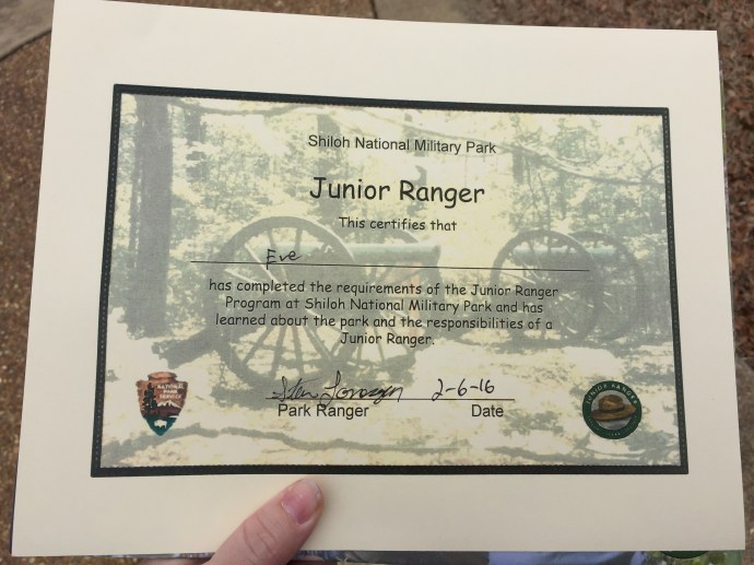 Leaving Nashville yesterday morning we tuned the I heart radio app to the Grand Ole’ Opry channel as a way of enjoying our location and scenery better. We hadn’t decided if we were going to visit Shiloh National Battlefield or not since it was an hour out of our way and it was a longer day of driving that we had planned. When we got to the sign we decided to go ahead and go for it. It had been recommended by a co-homeschooler who was from Tennessee and we wanted to make at least one stop in Tennessee that would pay tribute to it’s history and uniqueness. Shiloh is a pretty big park and the GPS instead of taking us to the visitors center directed is to the middle of the park. Their had been no signs for the visitor’s center so we followed the GPS until we discovered that we were following the driving tour and with no pamphlet of information to explain each station. We changed the GPS and set it for the visitor’s center to which was at this point six miles away. Hannah and Eve decided to do the JR ranger program so we spent about an hour helping them complete their workbooks in the museum as then bought patches at the library.