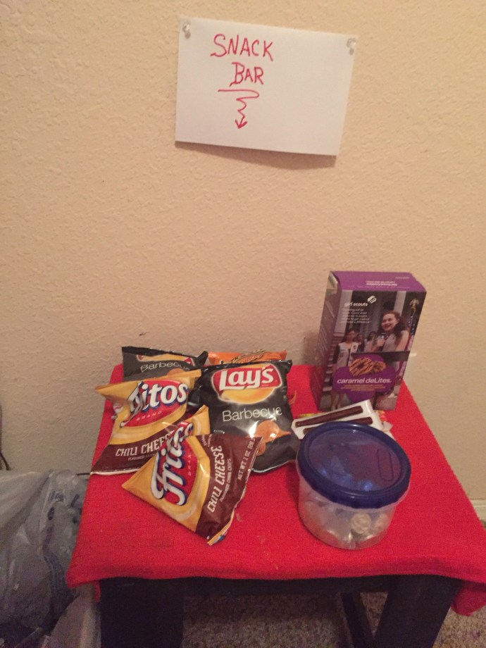 As we drove across Texas we updated them with our location and ETA you could tell in the response that James was nurvous he wanted everything perfect from having the snacks on hand that the kids would like, to what we would eat for dinner and the sleeping arrangements. I told him to stop stressing or I would through walnuts over the book shelf at him which is something my sisters and I resorted to to get him out of bed the first Christmas he lived with us. We found his place no problem with the help of GPS. We spent all of dinner time until about 10:30pm reminiscing a lot of funny stories from those to years with a lot of laughter a few not so funny memories mixed in. It was funny to hear an (at the time) outsider’s interpretation of our family and a lot of the things that were not out of the ordinary for us were very fascinating to them. He remembers us shutting off the hot water when he was showering (the guy took the longest hot showers ever 😋), we all ganged up on him and tried to give him a swirly and broke the toilet seat (we were really just going to get him there and not really out his head in the water I promise and yeah we went through a few toilet seats for this reason), hiding all the flavors of twin pops except the purple ones which he didn’t like, taking the bowl of ice cream he dished up as he put the container back in the freezer, he would dish up another and the next person would take that one until there was no one left that wanted ice cream. The list goes on and on and on. We all slept well and comfortable, there was a sweet little snack bar in each of the rooms as well as bottled water…I do not have the hostess gene I do wish I did but I don’t think like this.
