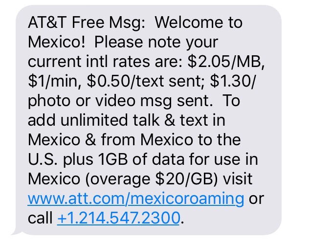 I didn’t think too much about cellular service when we chose our driving routes. As we neared El Paso yesterday the little connection/service indicator in the upper left corner of my iPhone that usually says LTE, 4G, or AT&T all of the sudden said Movistar. What is Movistar? I am handicaped when looking up things on Chad’s phone and I couldn’t use mine so we hot spotted off of his phone which didn’t say Movistar so I could look it up on google. It is an internet/wifi server for Mexico. It was about that time when I recieved this text.