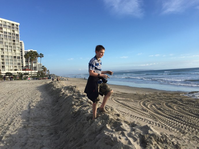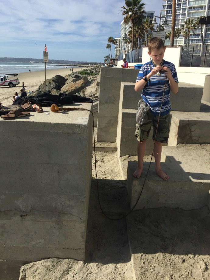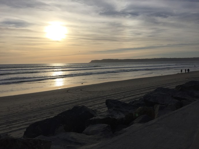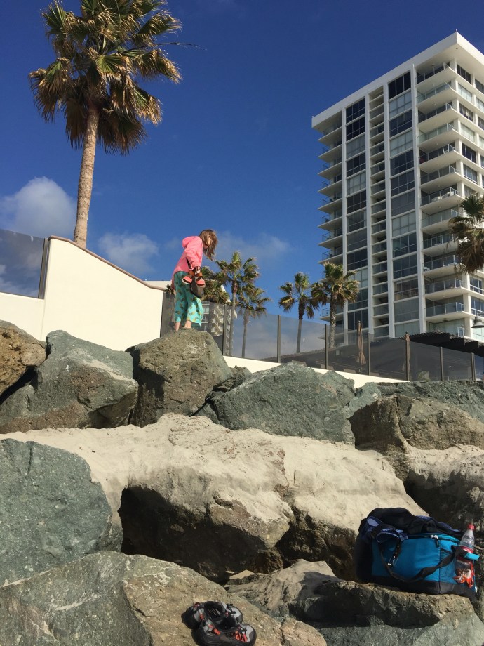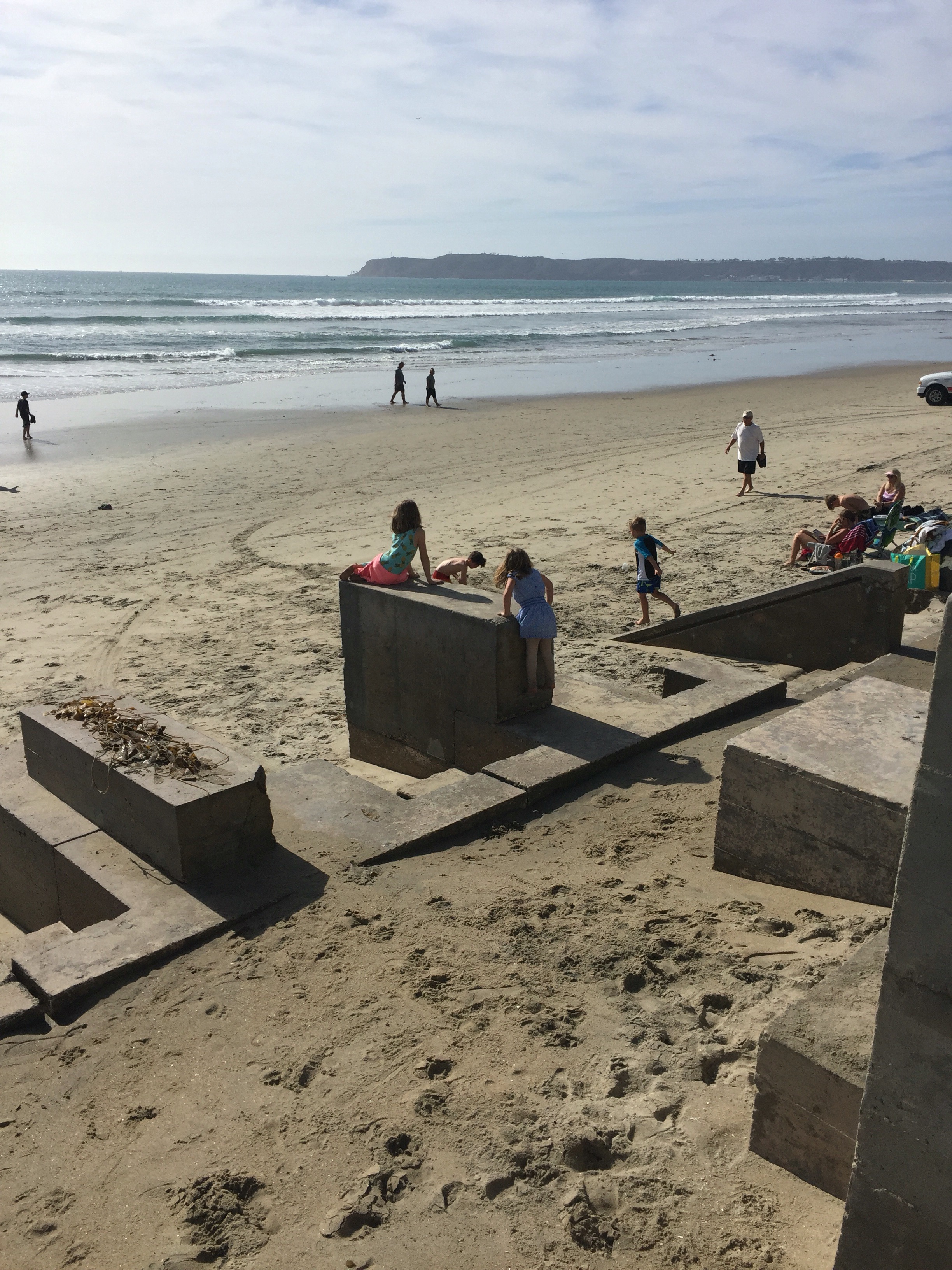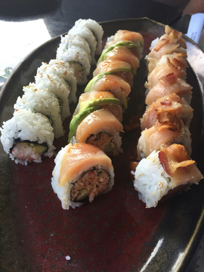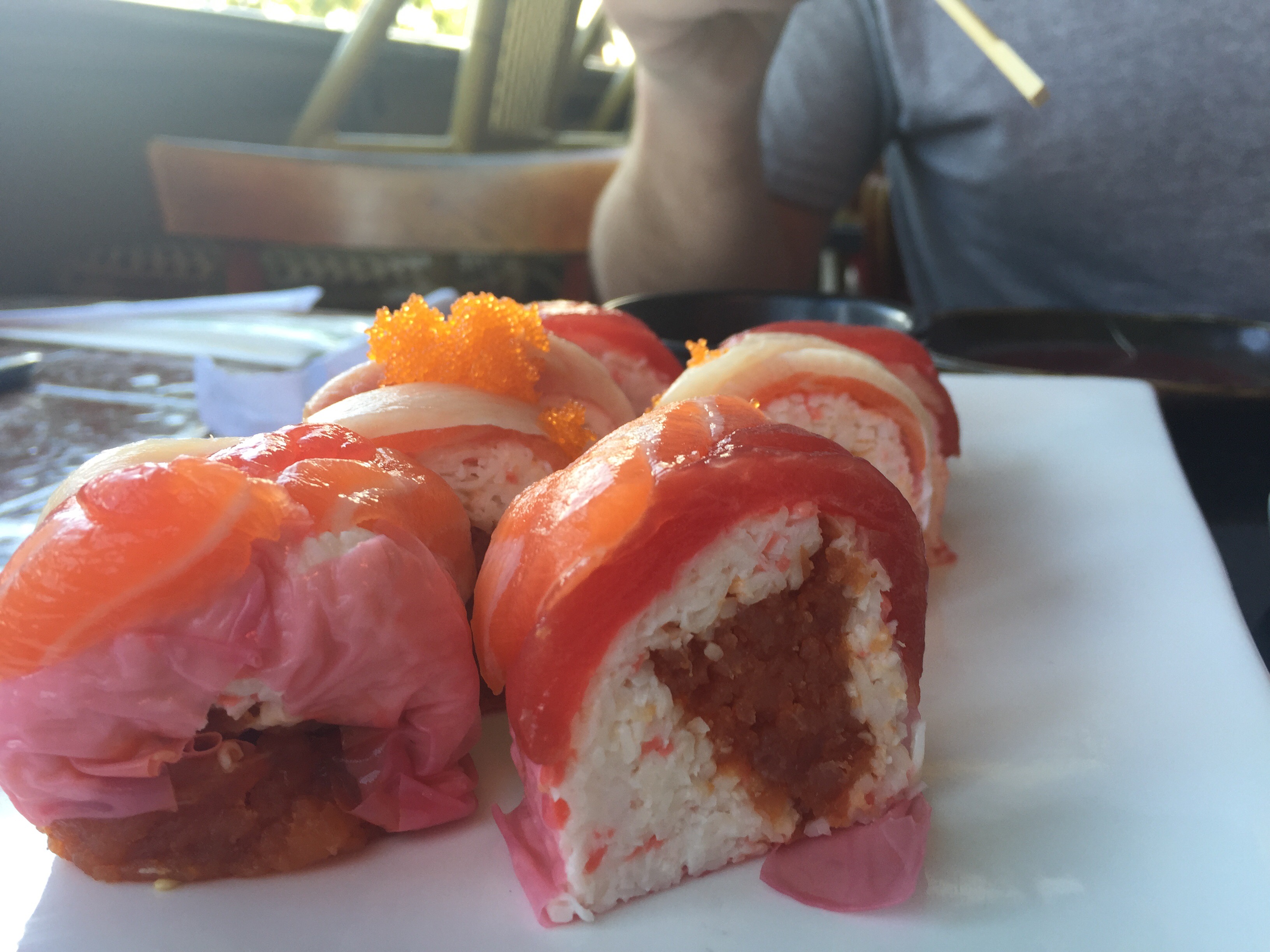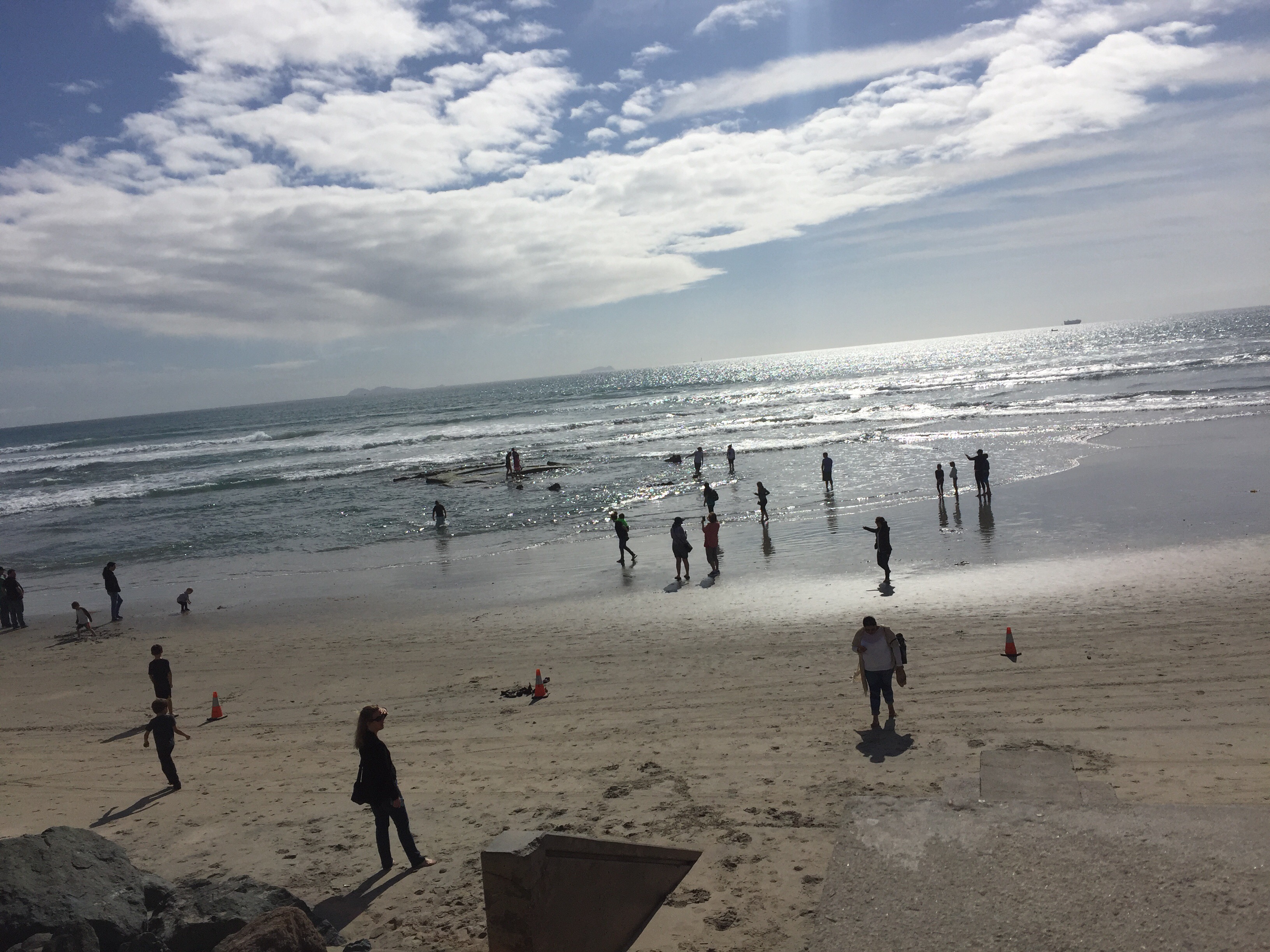 After our walk we thought we might run to the store as there was a few things we needed to get. We all piled into the car…shopping wasn’t really the kind of outing we wanted to do…visiting Coronado Beach was. I had heard several seeks ago about the ship wreck remains uncovered by the recent El Niño storms on the beach of Coronado island. We decided to take the slow scenic route through Carlsbad avoiding I-5. It was lunchtime and we were in the process of making dinner plans with our travel nurse friends who just happened to be in San Diego today as well. Chad parked the car and we walked up the sidewalk to descover the place he had chosen was a sushi place. The first two weeks at an assignment we have to pay everything out of savings. There is no paycheck and generally a lot of cost involved. Traveling across the country, setting up housing, hotels and food. We are lucky here to be staying with family (a first for us.) but still it was a long trip across the country and with the mission trip to Honduras the week before we have had half log out normal income this last month. Chad and I both had some cash we had saved up. Chad bought lunch out of his cash and I bought dinner out of my cash it worked out pretty well. Chad picked out a few kind that looked good and we all shared. It was the perfect amount.
